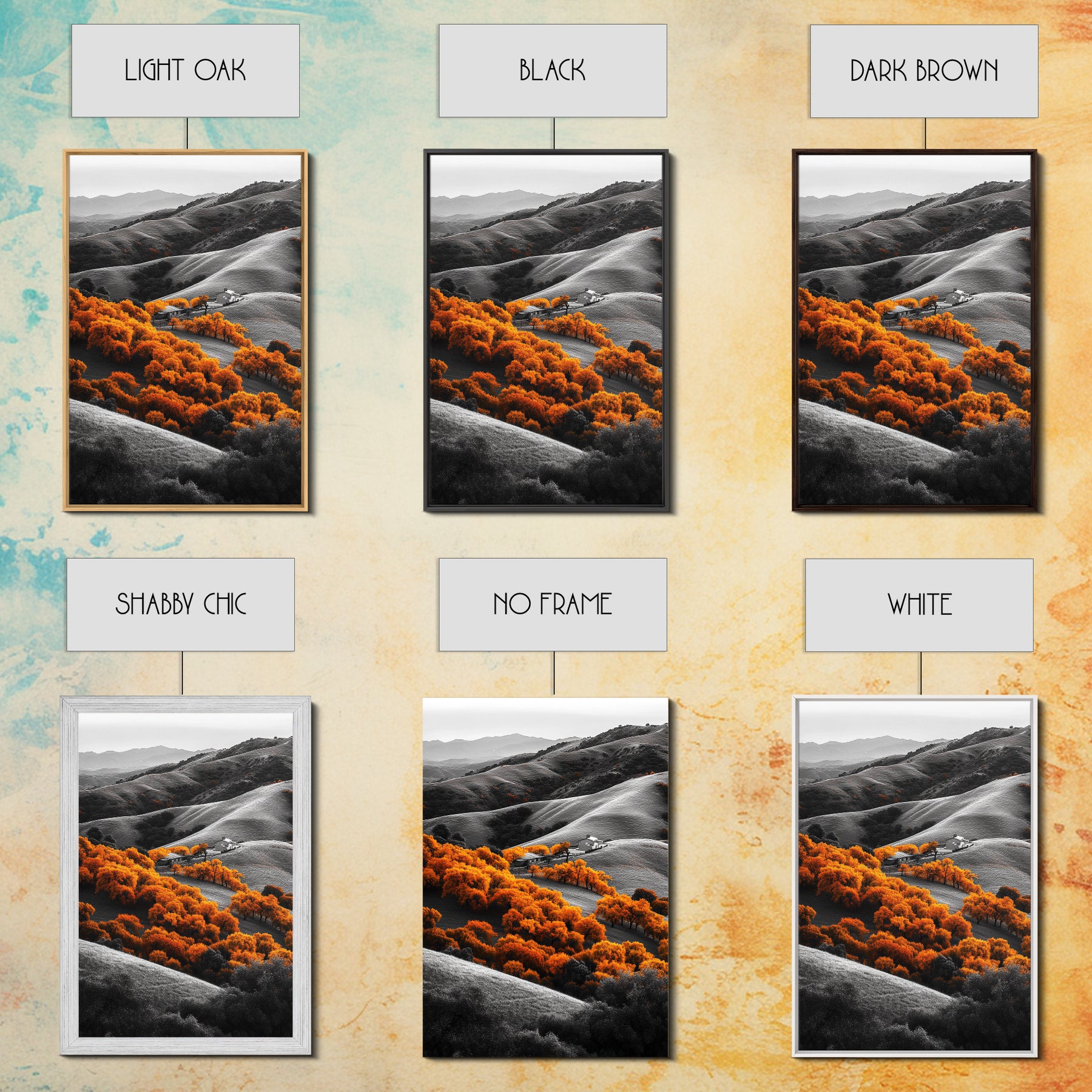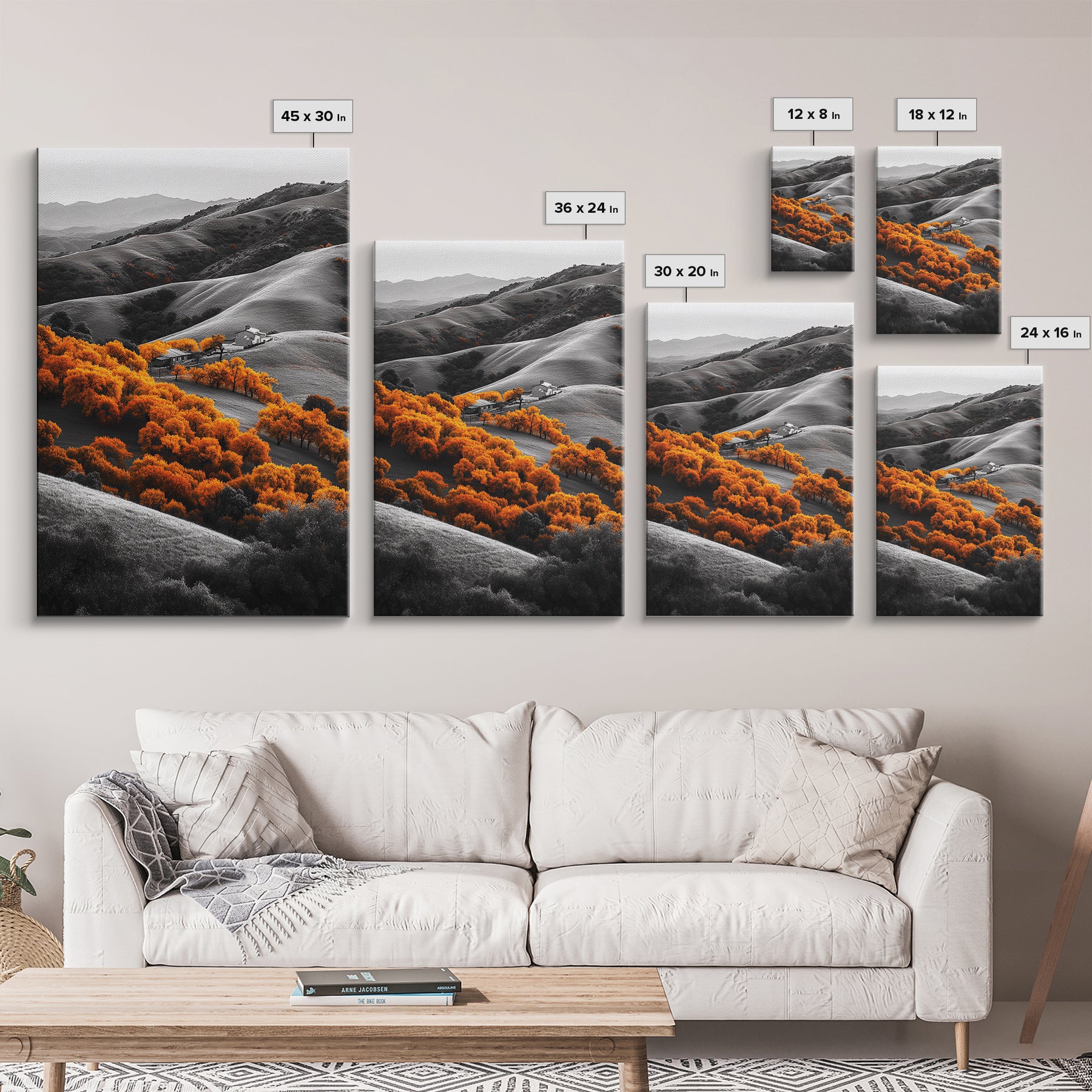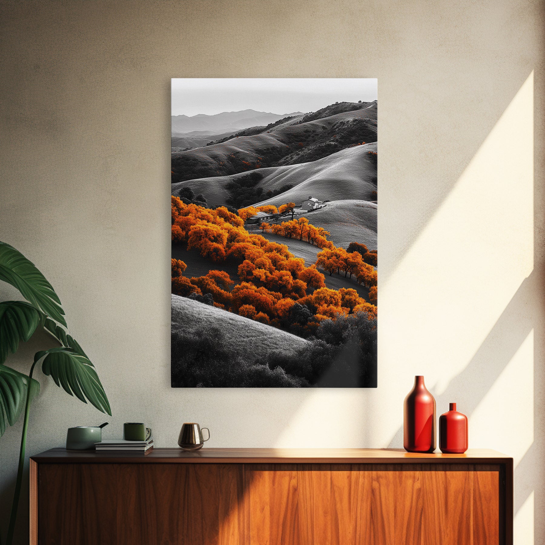 Autumn Hills, Vibrant Trees, Countryside View, Framed Canvas Print, Fall Landscape Art, Farmhouse Decor, Cozy Living Room Accent