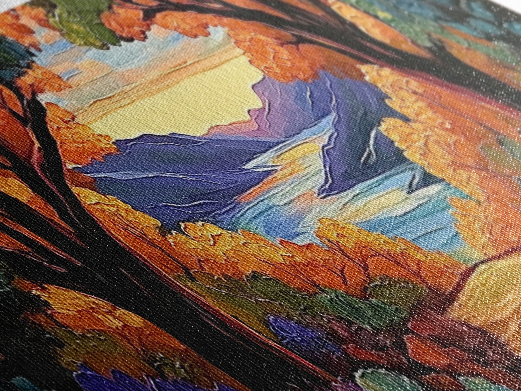 Most of our canvases are made in the USA, with the exception of canvases ordered with the light oak unstained frames, and any large canvases (24x48, 30x60, 16x48 and 20x60) ordered WITH a frame. These are temporarily made in and shipped from Europe, while we try to find a more consistent supplier in the USA.