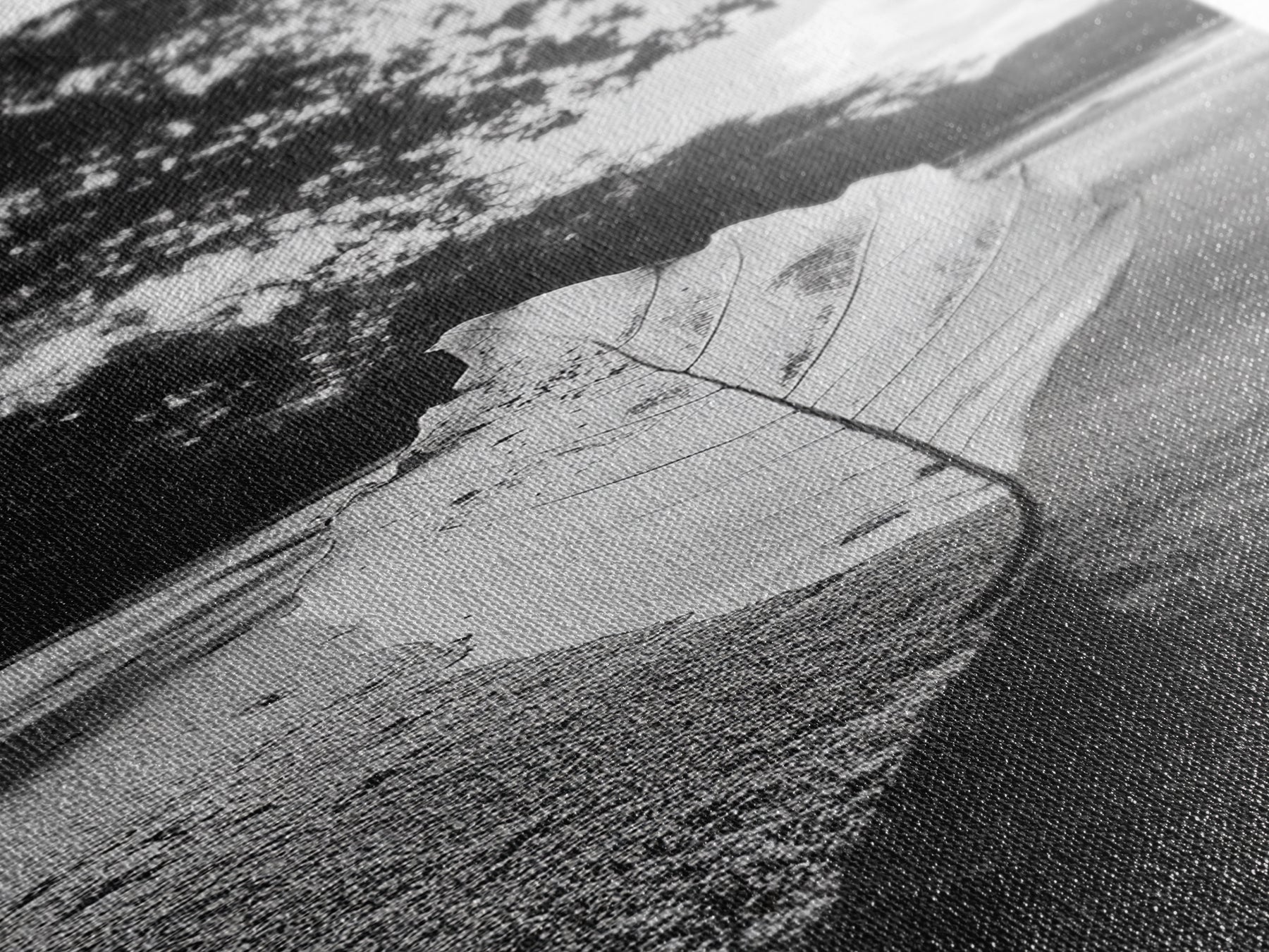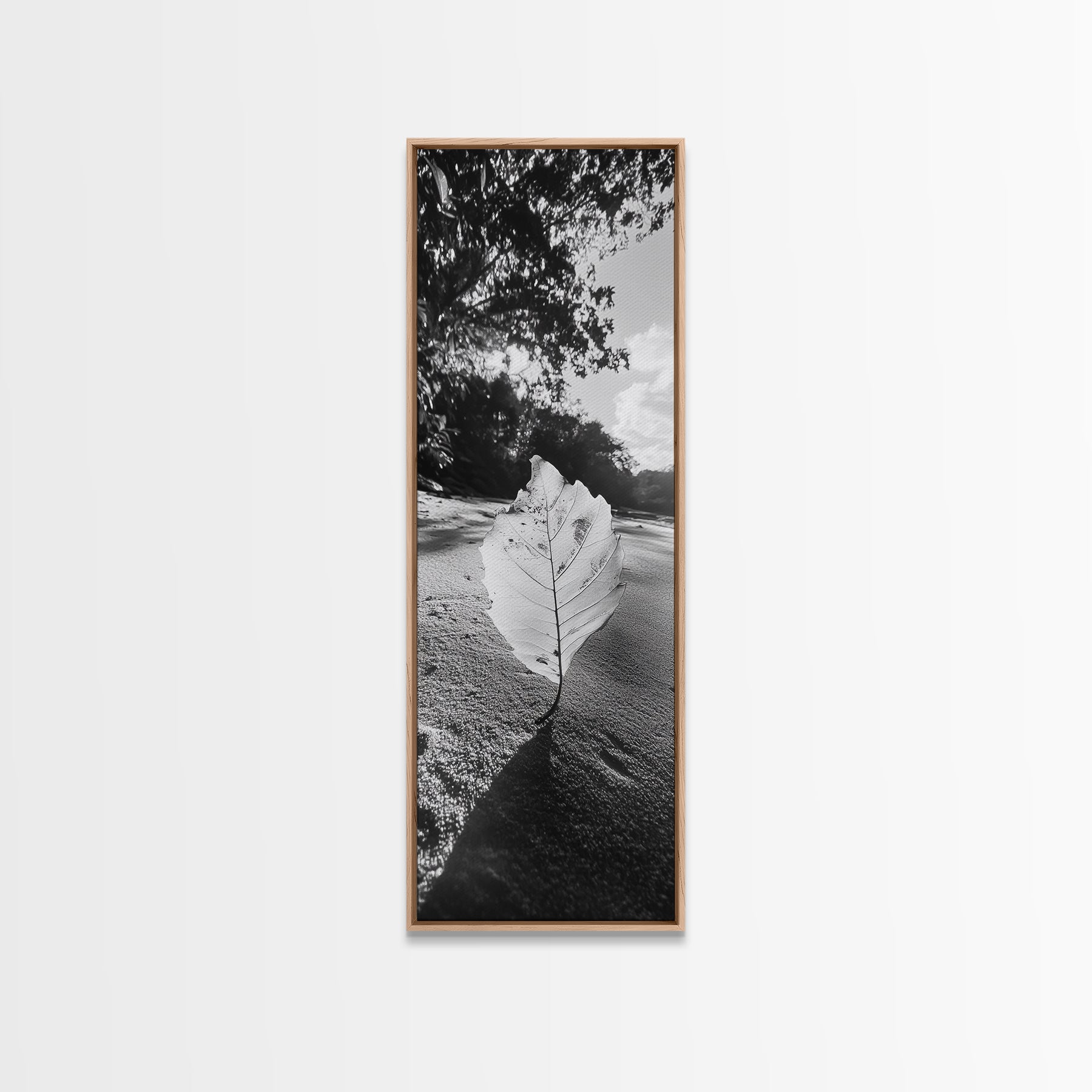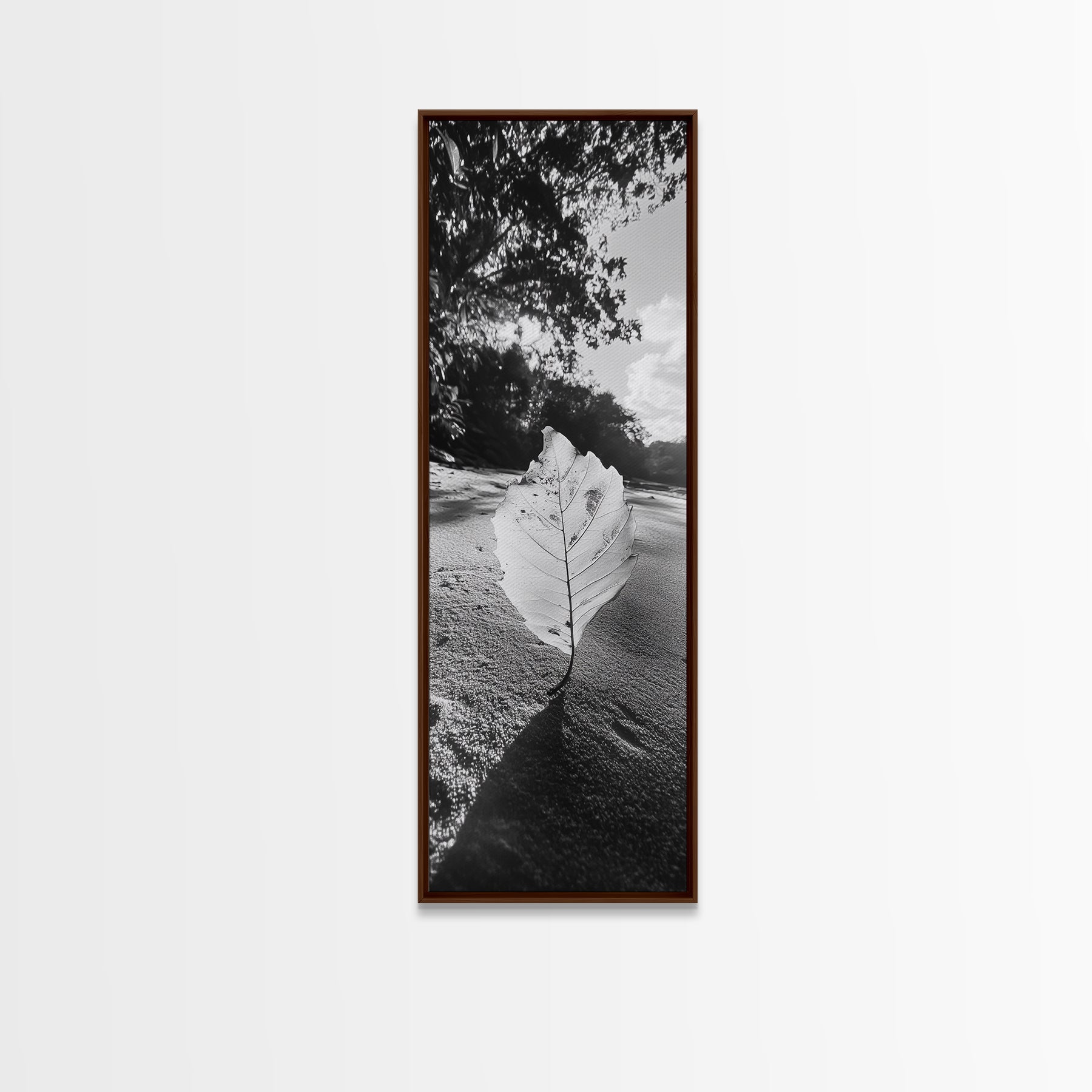 Autumn Leaf Beach, Fall Nature Scene, Minimal Wall Decor, Framed Canvas Print, Seasonal Bedroom Art, Black and White Photography