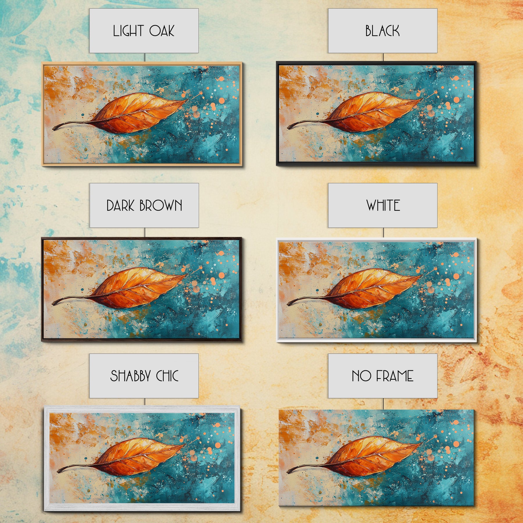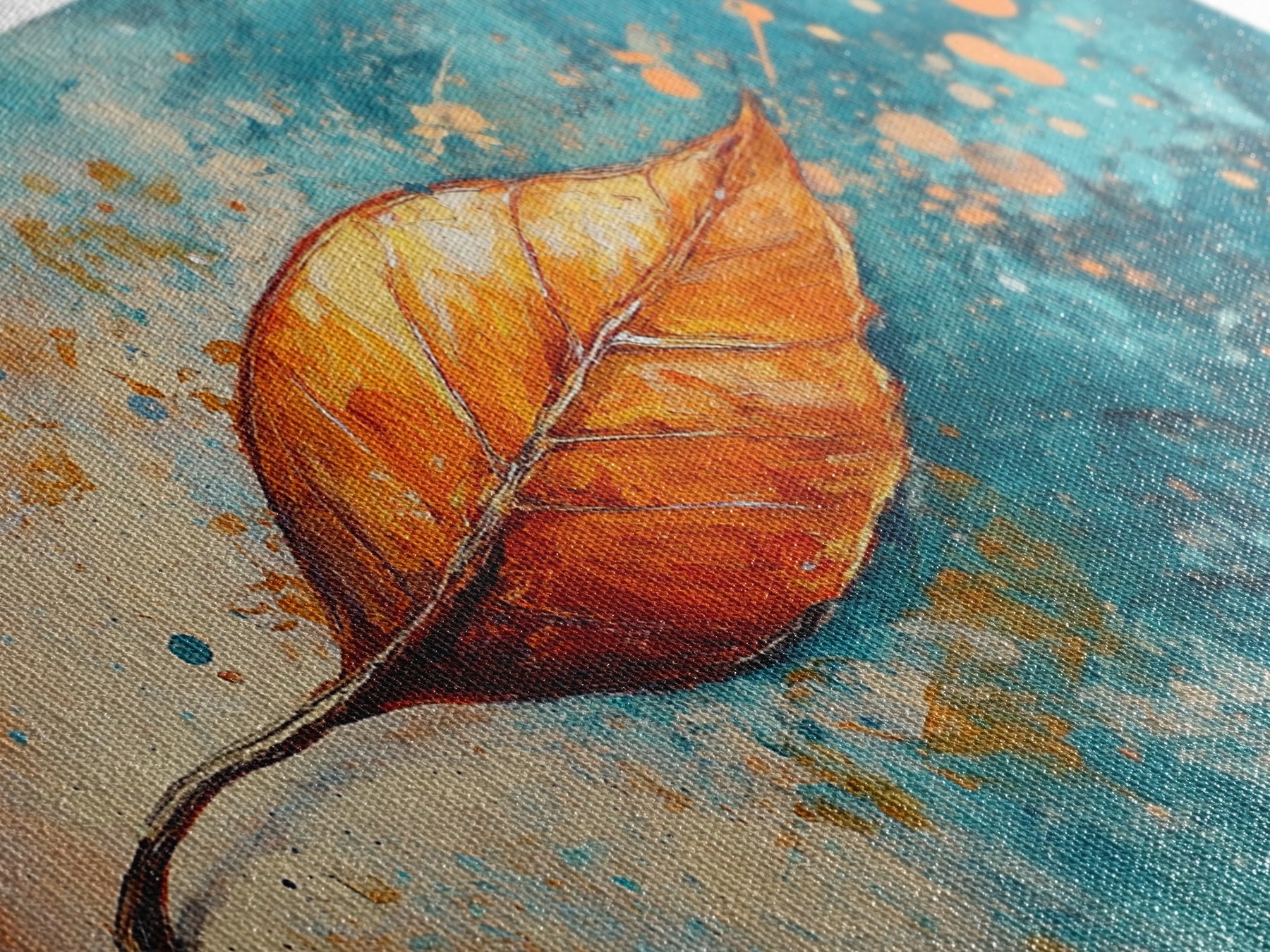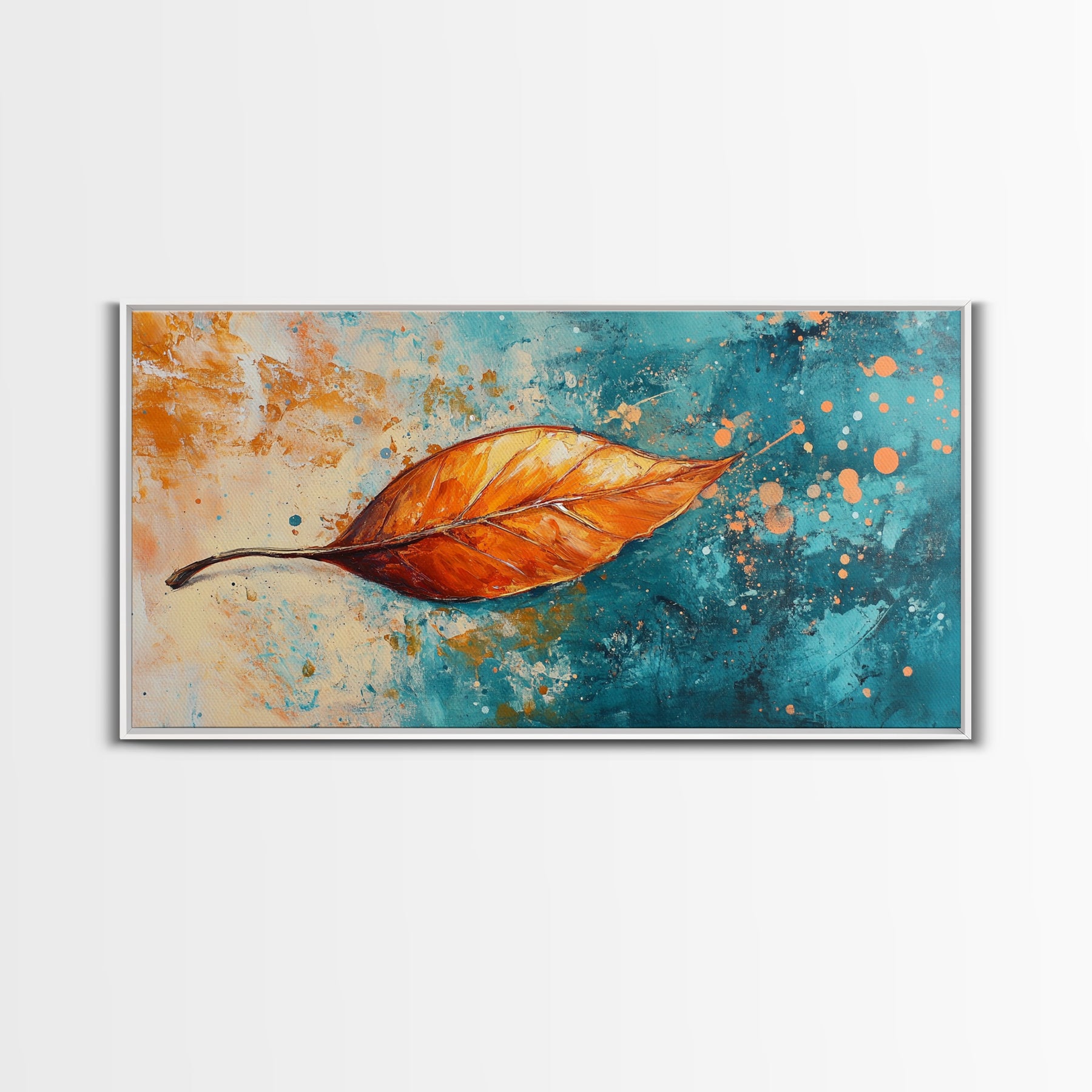 Autumn Leaf, fall painting, teal wall art, botanical prints, moody art, textured painting, gift idea for her, Canvas Print