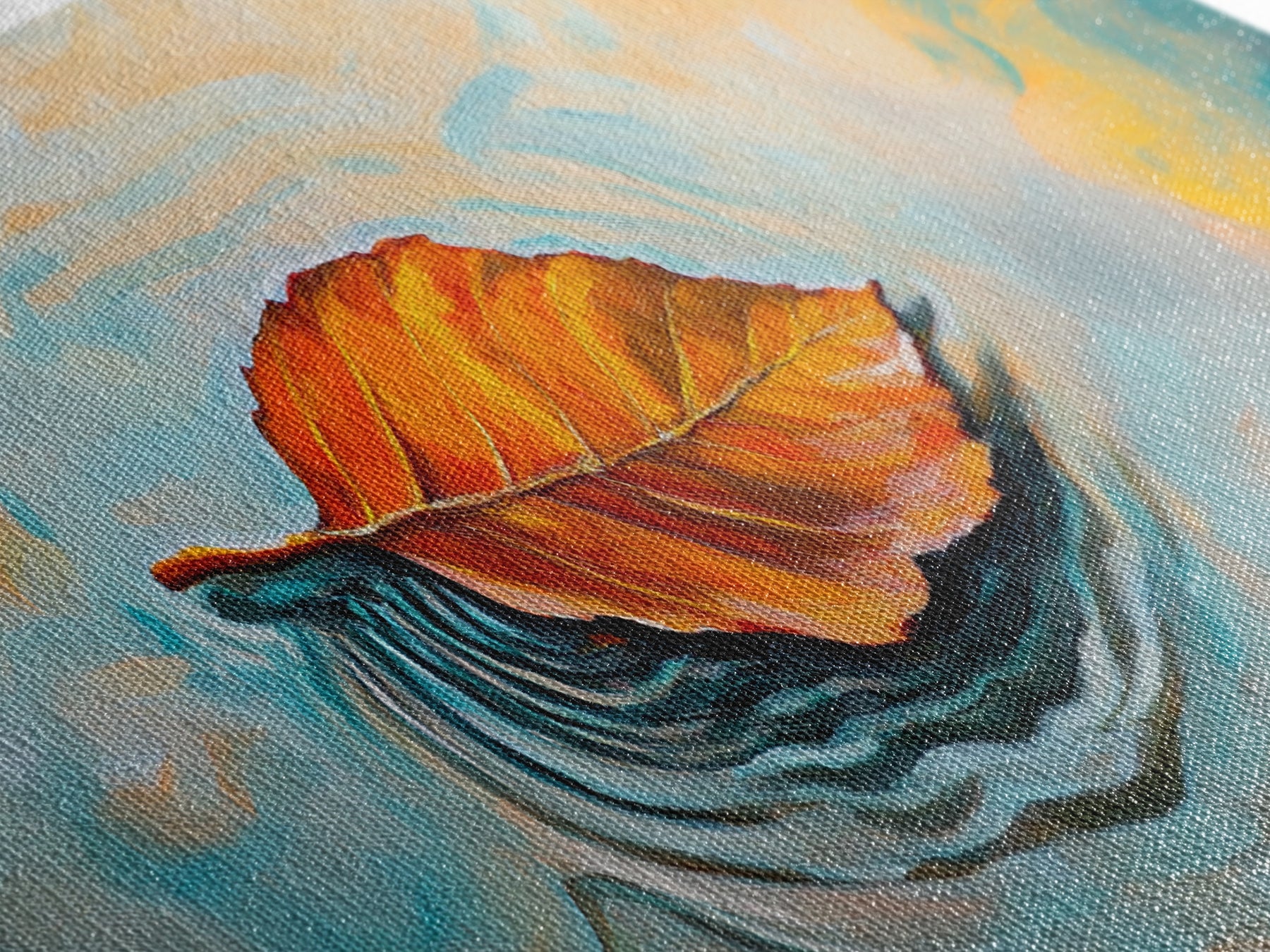 Autumn Leaf Water Ripples Canvas Print Fall Wall Art Nature Inspired Artwork Boho Home Decor Framed Minimalist Modern Print