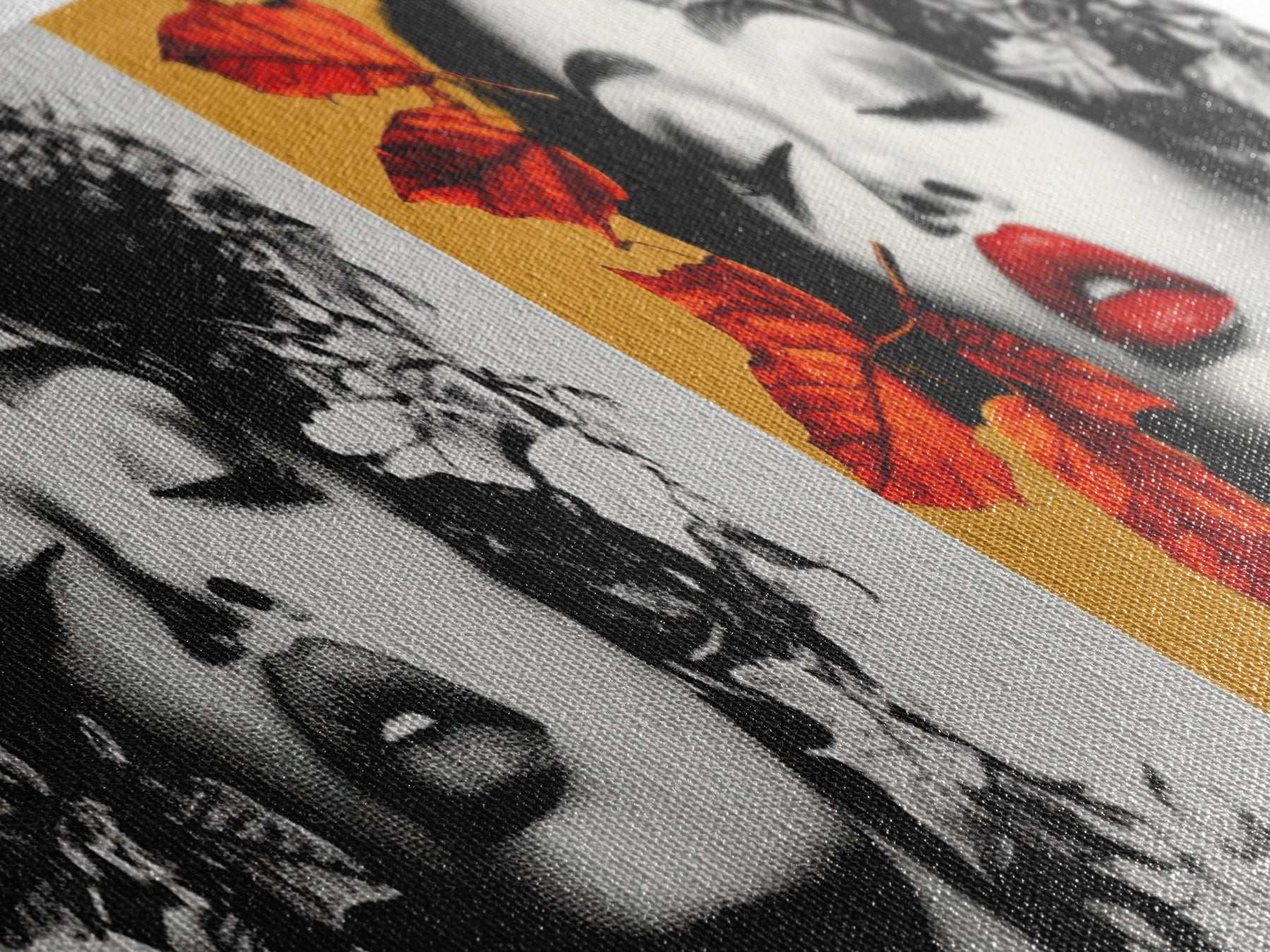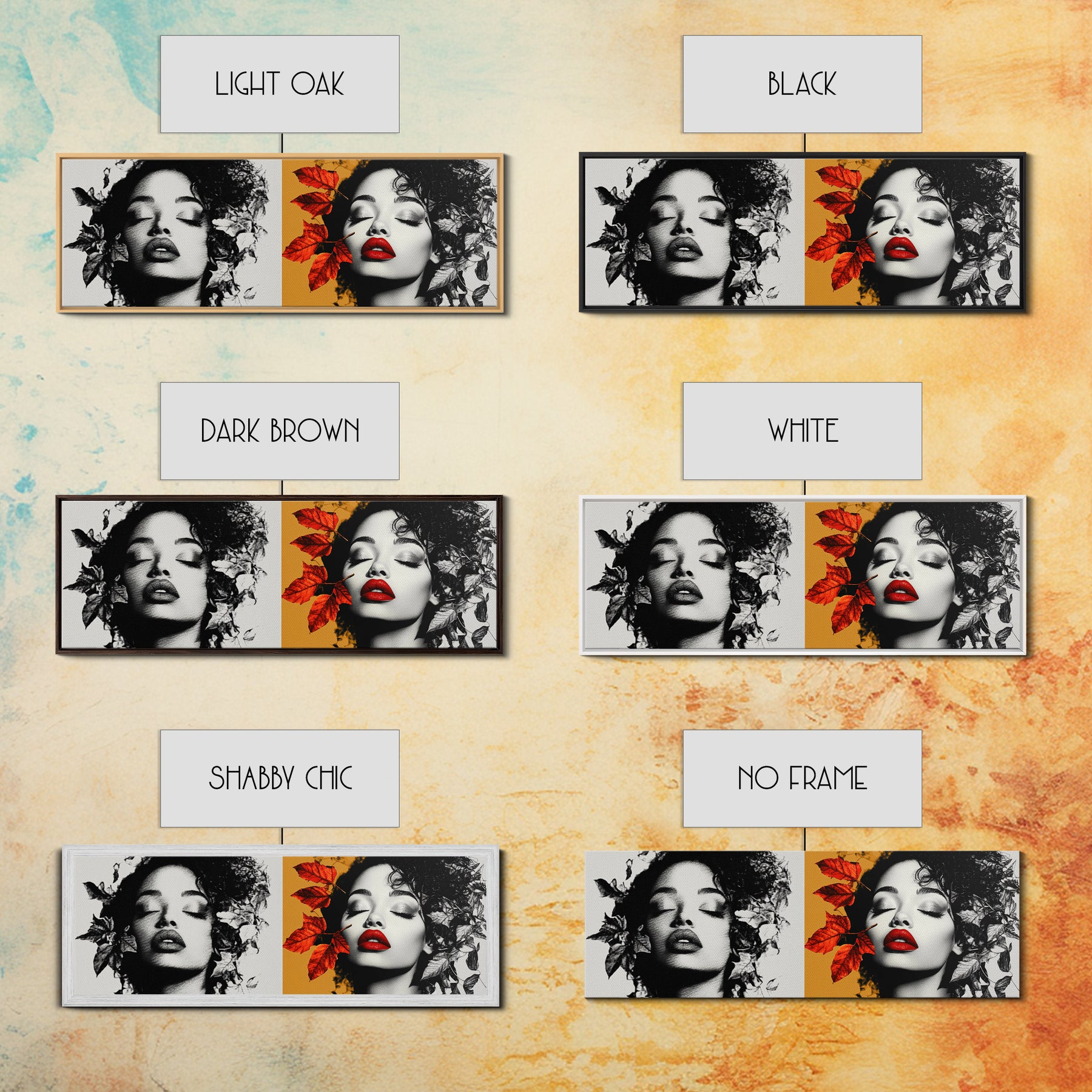 Autumn Leaves, Bold Lips Portrait, Fashion Face Art, Framed Canvas Print, Fall Wall Decor, Modern Bedroom Art, Boho Glam Aesthetic