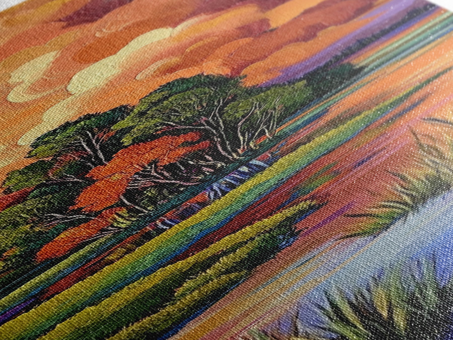 Most of our canvases are made in the USA, with the exception of canvases ordered with the light oak unstained frames, and any large canvases (24x48, 30x60, 16x48 and 20x60) ordered WITH a frame. These are temporarily made in and shipped from Europe, while we try to find a more consistent supplier in the USA.