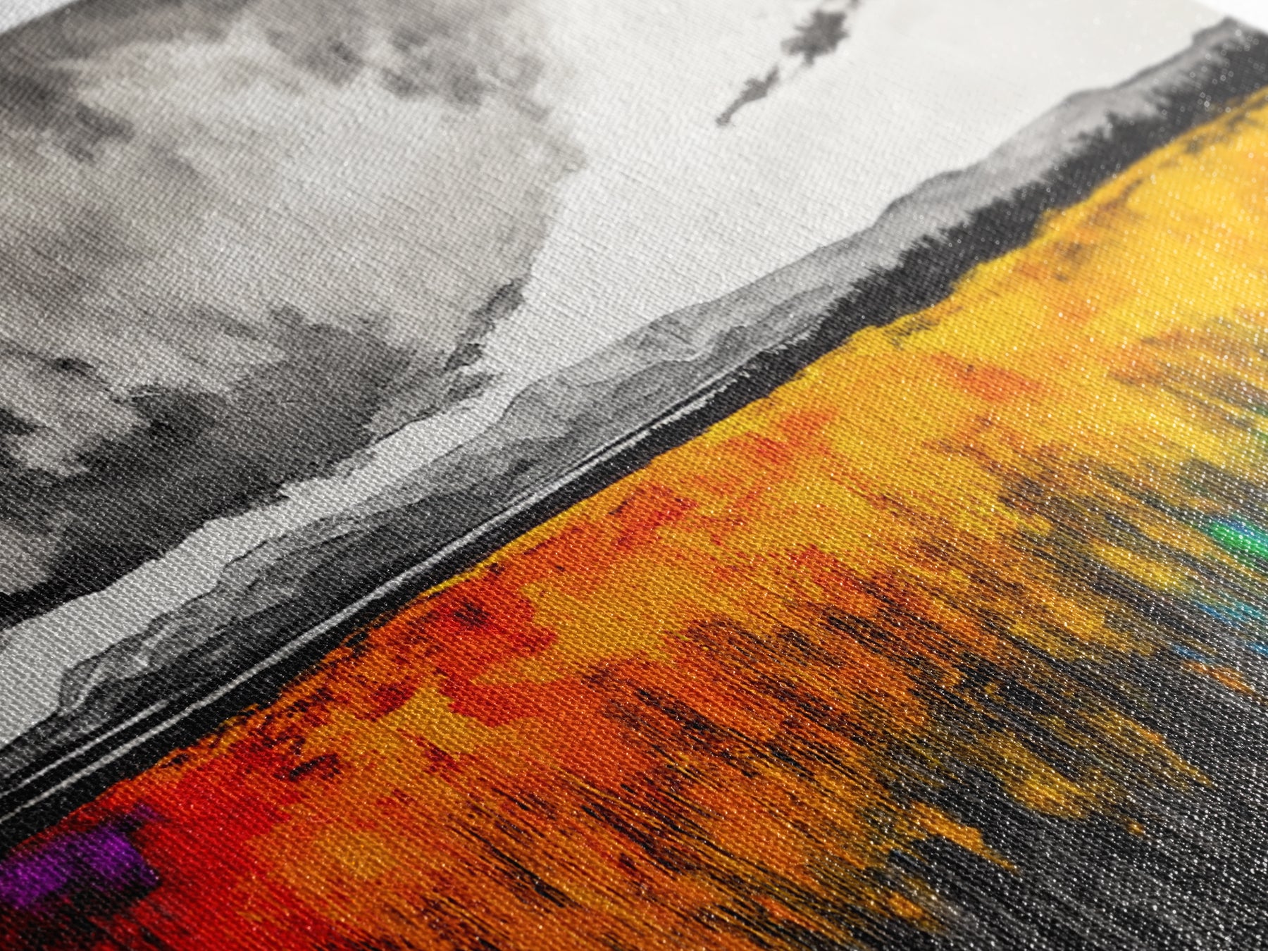 Most of our canvases are made in the USA, with the exception of canvases ordered with the light oak unstained frames, and any large canvases (24x48, 30x60, 16x48 and 20x60) ordered WITH a frame. These are temporarily made in and shipped from Europe, while we try to find a more consistent supplier in the USA.