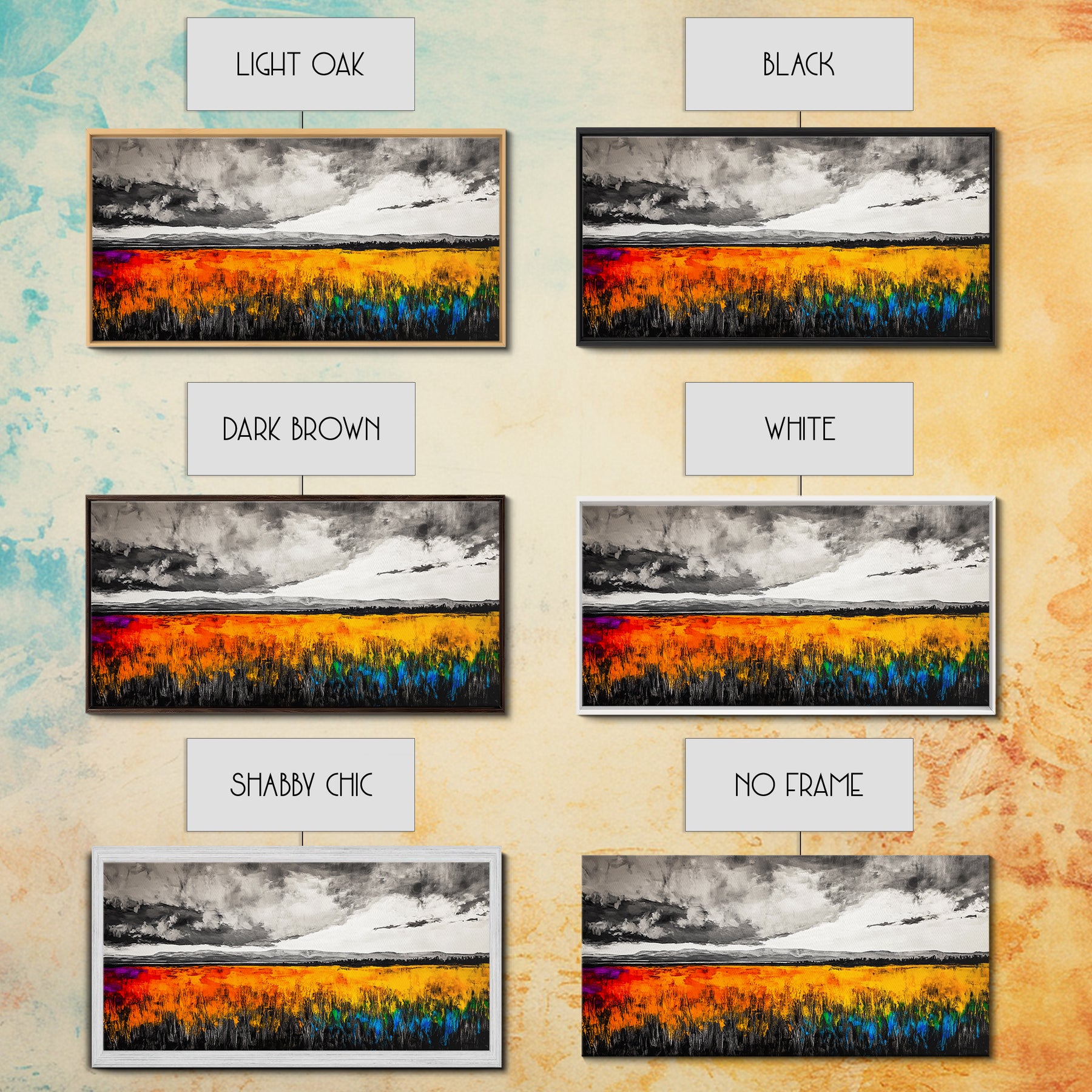 *Optional frames add a total of 1.5 inches to each dimension, for example a 10x20 canvas with a frame will be 11.5 by 21.5 inches total. All framed canvas are 1.5" total depth.
