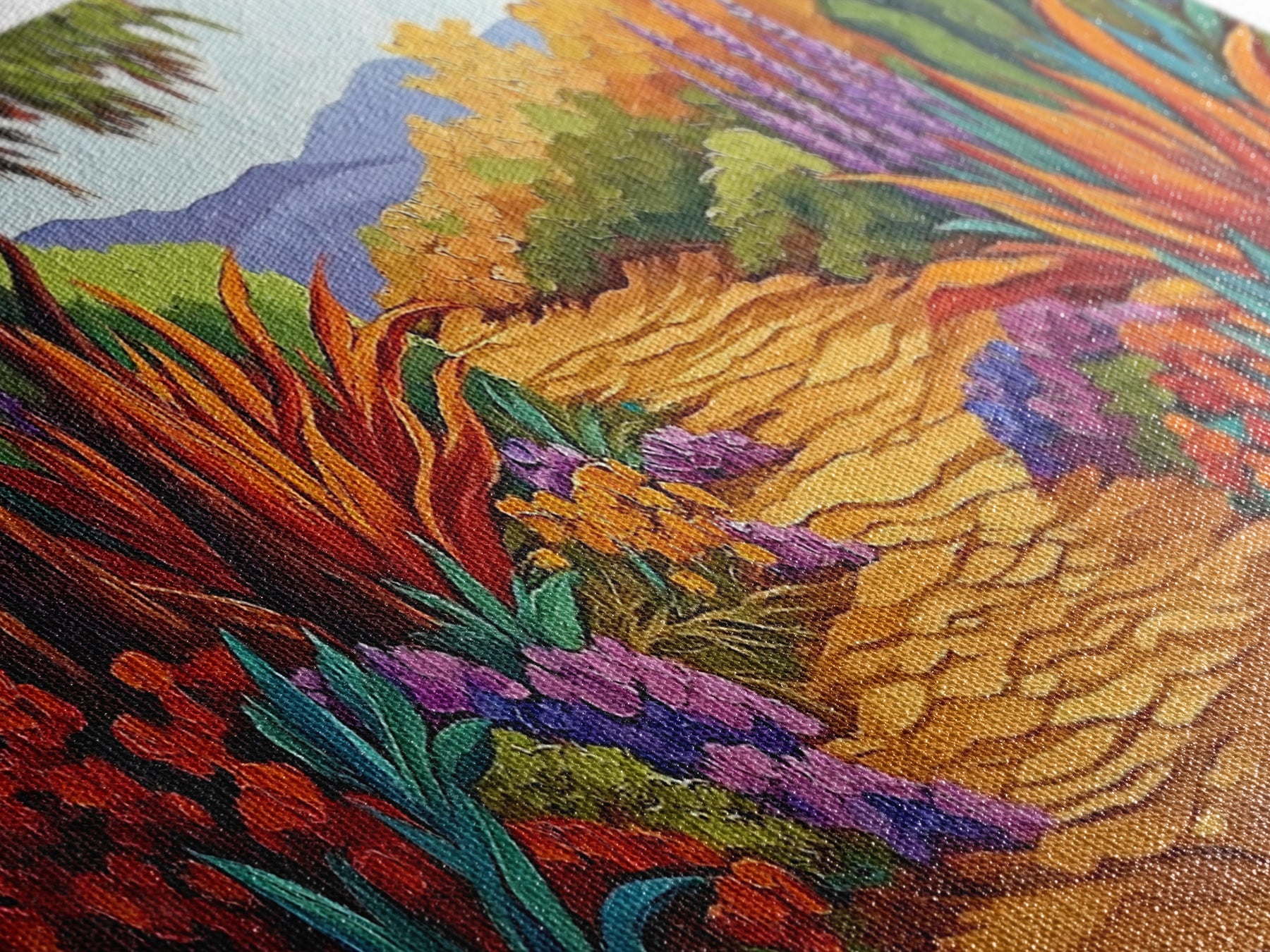 Most of our canvases are made in the USA, with the exception of canvases ordered with the light oak unstained frames, and any large canvases (24x48, 30x60, 16x48 and 20x60) ordered WITH a frame. These are temporarily made in and shipped from Europe, while we try to find a more consistent supplier in the USA.