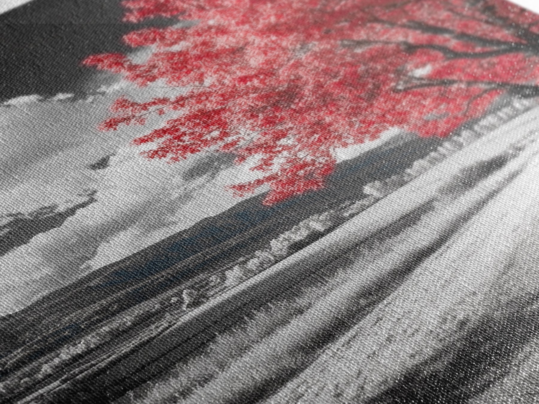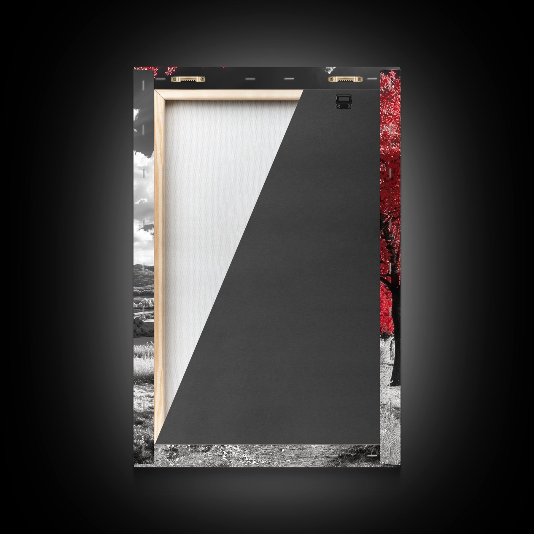 Autumn Red Tree, Scenic Road, Countryside Field, Framed Canvas Print, Fall Wall Art, Rustic Home Decor, Nature Photography, Office Accent