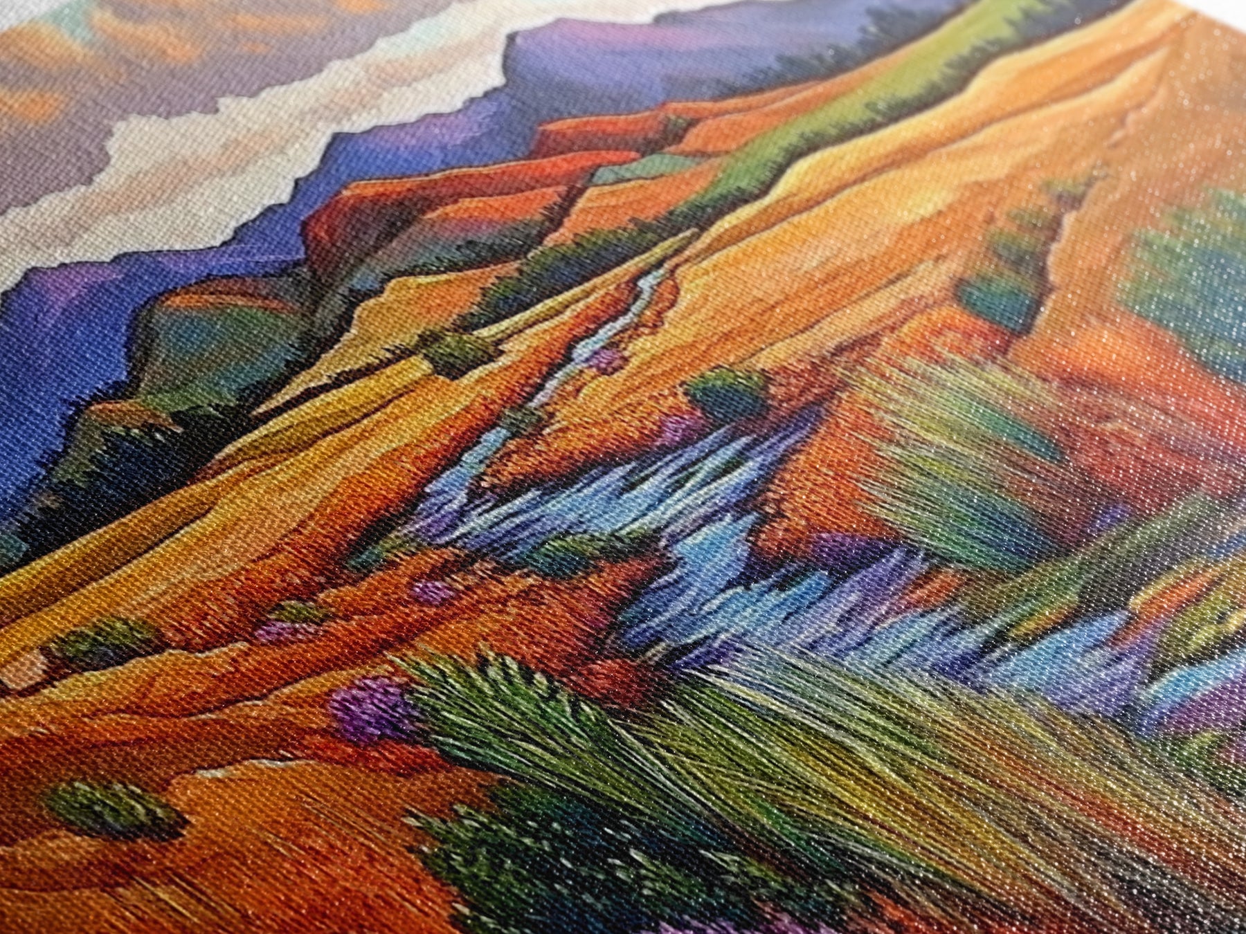 Most of our canvases are made in the USA, with the exception of canvases ordered with the light oak unstained frames, and any large canvases (24x48, 30x60, 16x48 and 20x60) ordered WITH a frame. These are temporarily made in and shipped from Europe, while we try to find a more consistent supplier in the USA.
