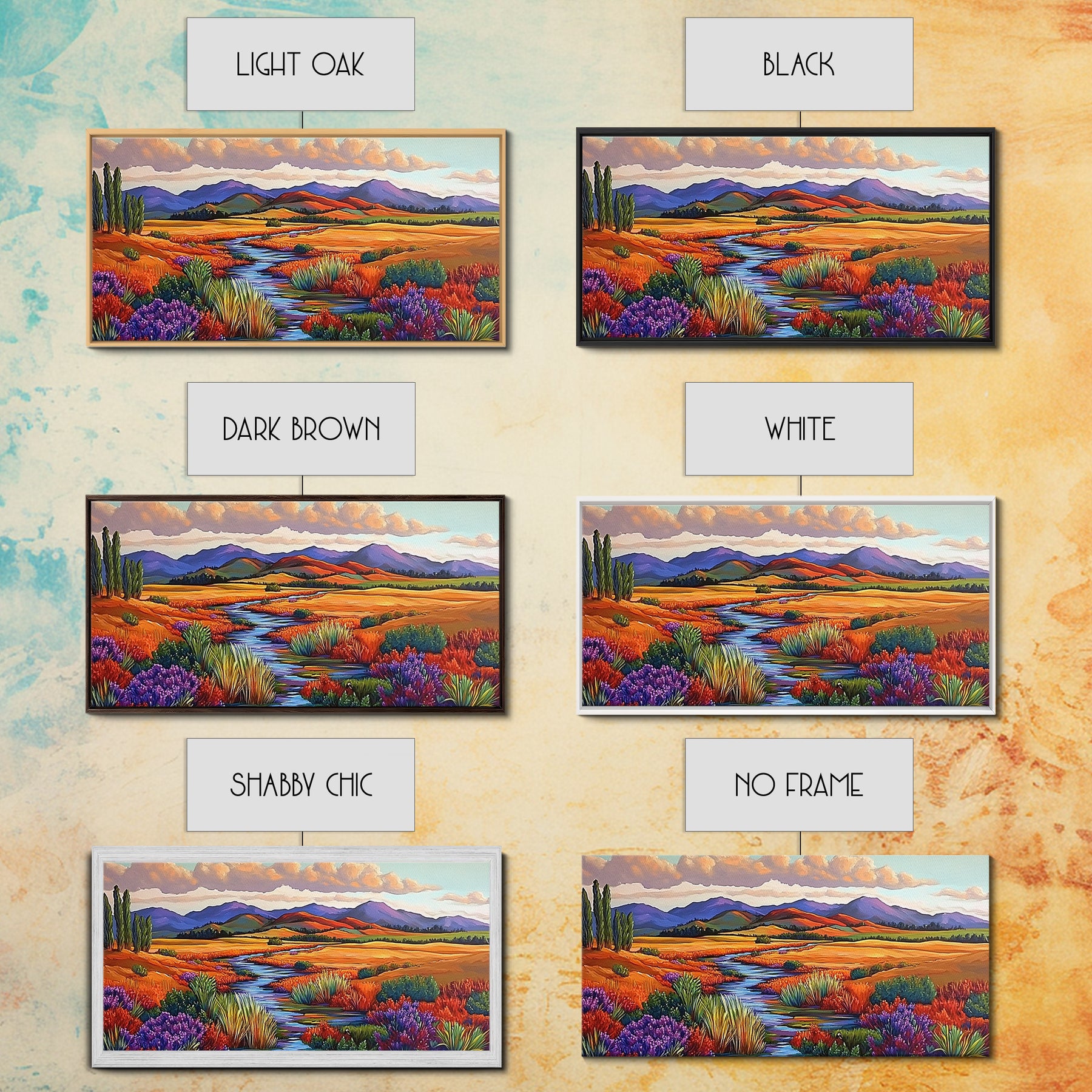 *Optional frames add a total of 1.5 inches to each dimension, for example a 10x20 canvas with a frame will be 11.5 by 21.5 inches total. All framed canvas are 1.5" total depth.