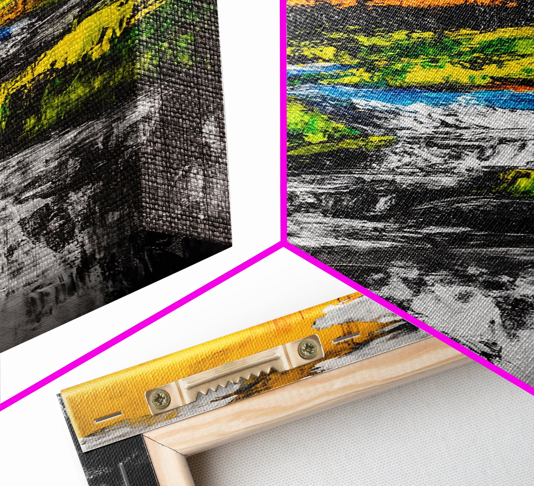 Hello and thank you for taking the time to view our modern high quality giclée artwork! We offer both posters and stretched canvas prints. Our posters are printed on Ultra Matte 60 lb / 230 GSM high quality photo paper, with a thickness of 10 mil. Our canvases are printed on museum grade 350 GSM canvas material with ECO friendly archival grade ink, then hand stretched and stapled over premium, FSC certified and shrink resistant frames. Designed and built to last a lifetime.
