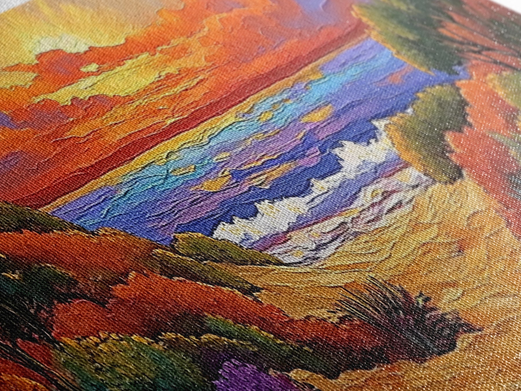 Most of our canvases are made in the USA, with the exception of canvases ordered with the light oak unstained frames, and any large canvases (24x48, 30x60, 16x48 and 20x60) ordered WITH a frame. These are temporarily made in and shipped from Europe, while we try to find a more consistent supplier in the USA.