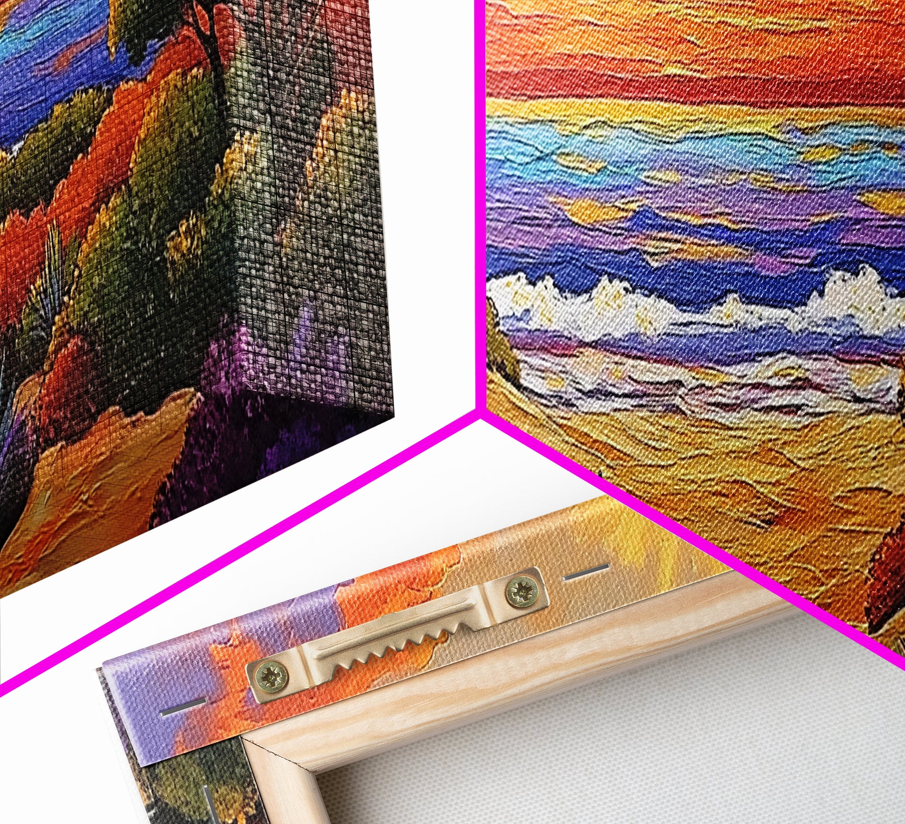 *Optional frames add a total of 1.5 inches to each dimension, for example a 10x20 canvas with a frame will be 11.5 by 21.5 inches total. All framed canvas are 1.5" total depth.