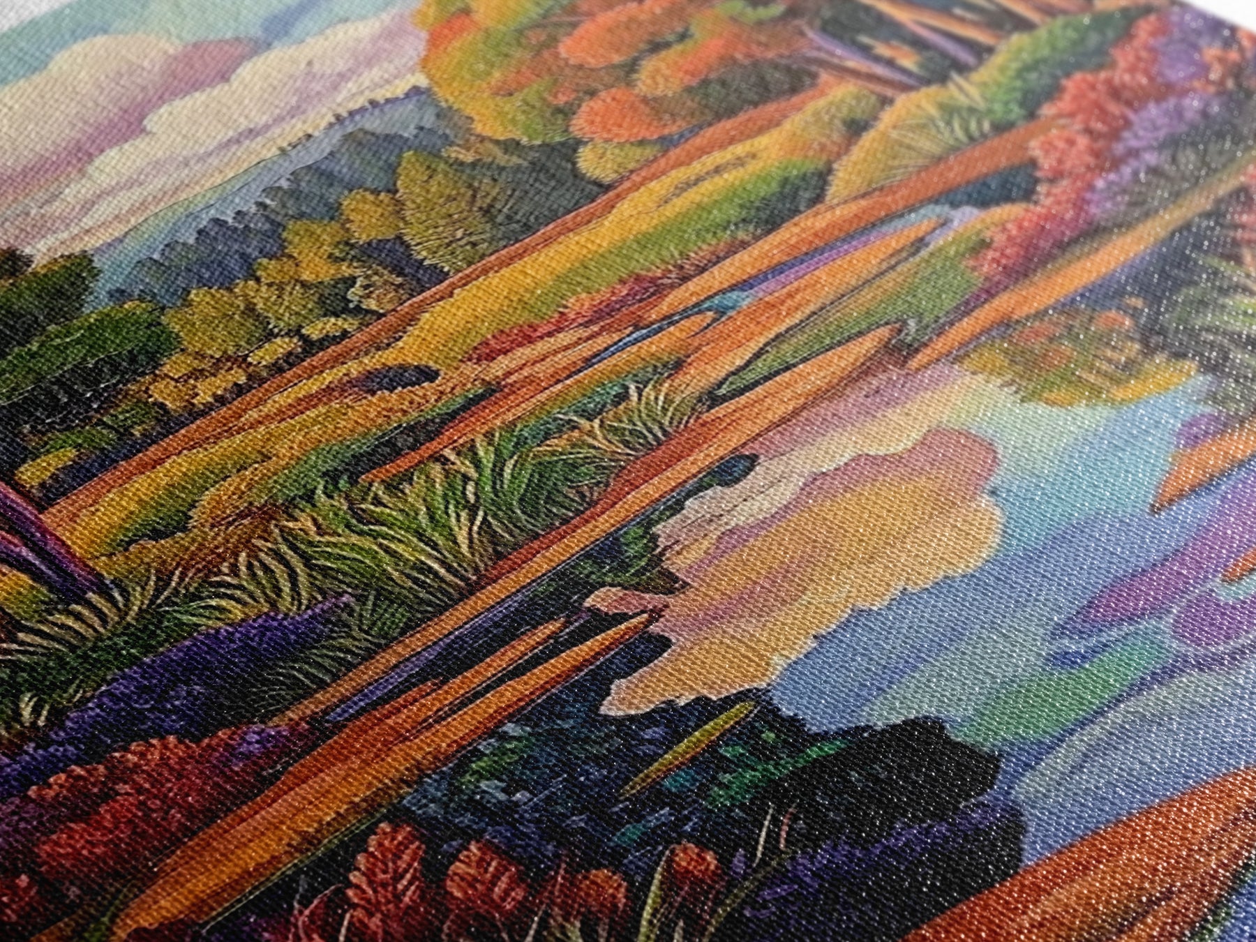 Most of our canvases are made in the USA, with the exception of canvases ordered with the light oak unstained frames, and any large canvases (24x48, 30x60, 16x48 and 20x60) ordered WITH a frame. These are temporarily made in and shipped from Europe, while we try to find a more consistent supplier in the USA.