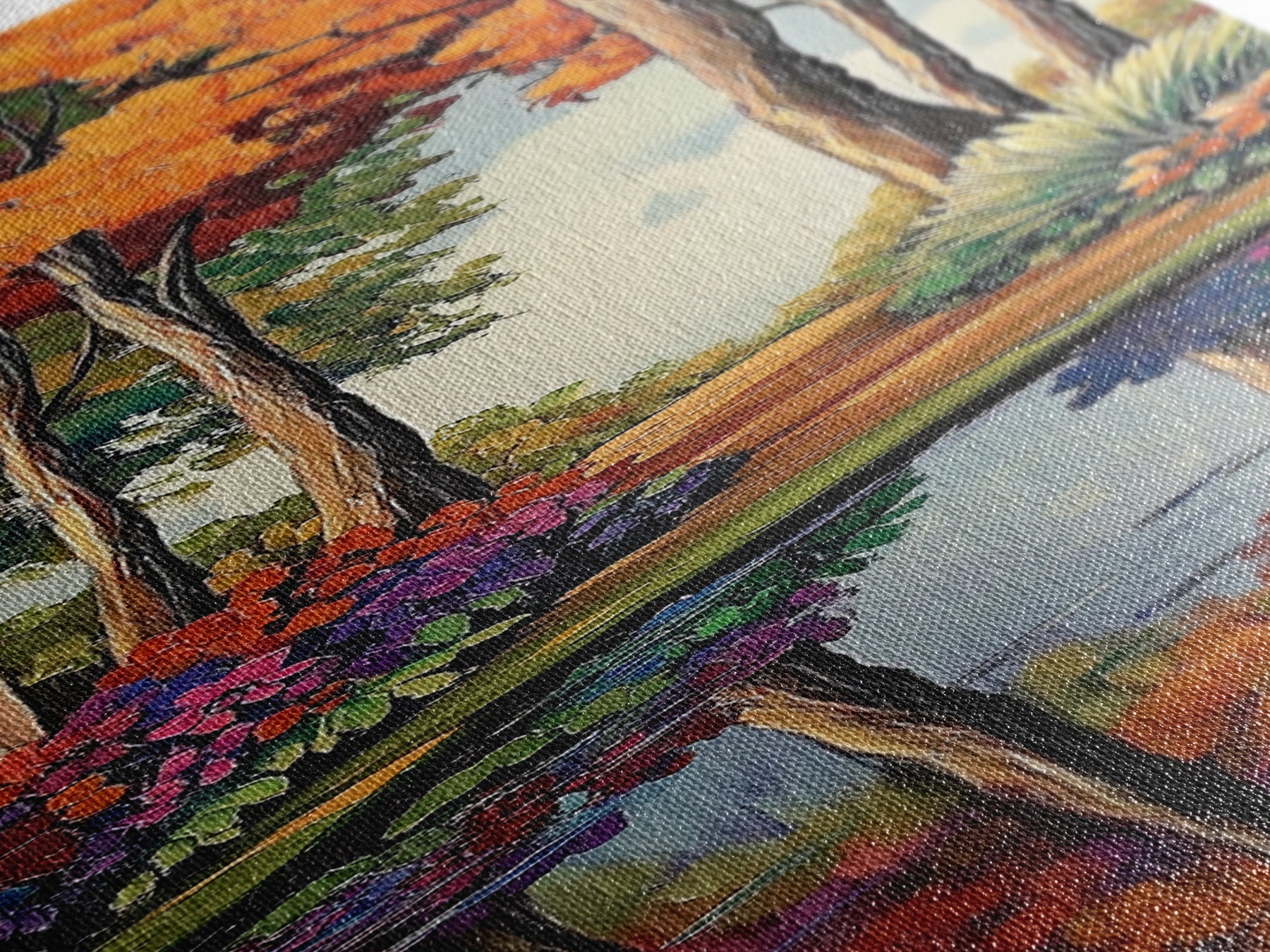 Most of our canvases are made in the USA, with the exception of canvases ordered with the light oak unstained frames, and any large canvases (24x48, 30x60, 16x48 and 20x60) ordered WITH a frame. These are temporarily made in and shipped from Europe, while we try to find a more consistent supplier in the USA.