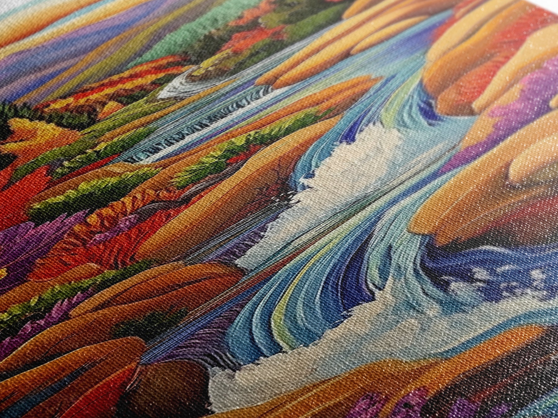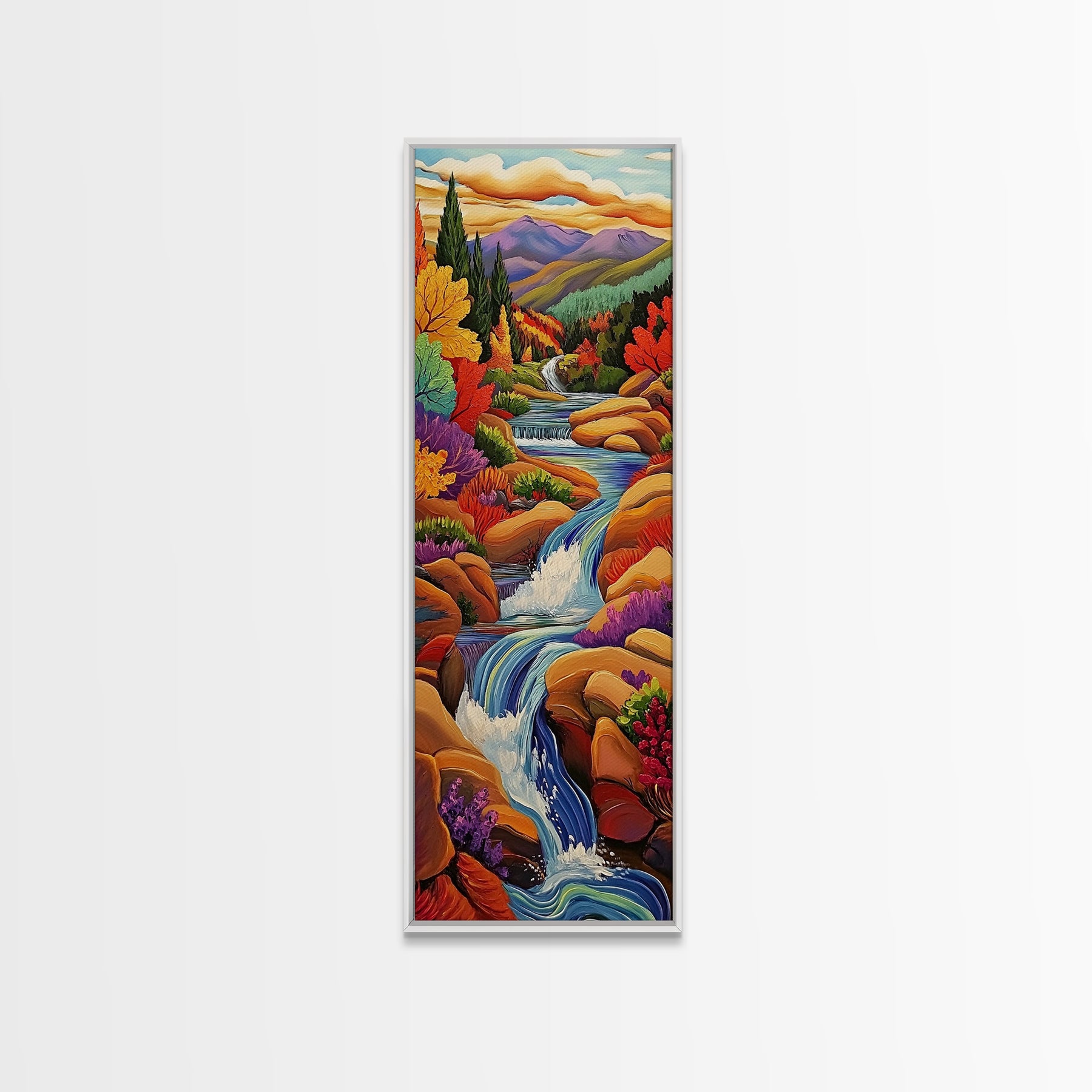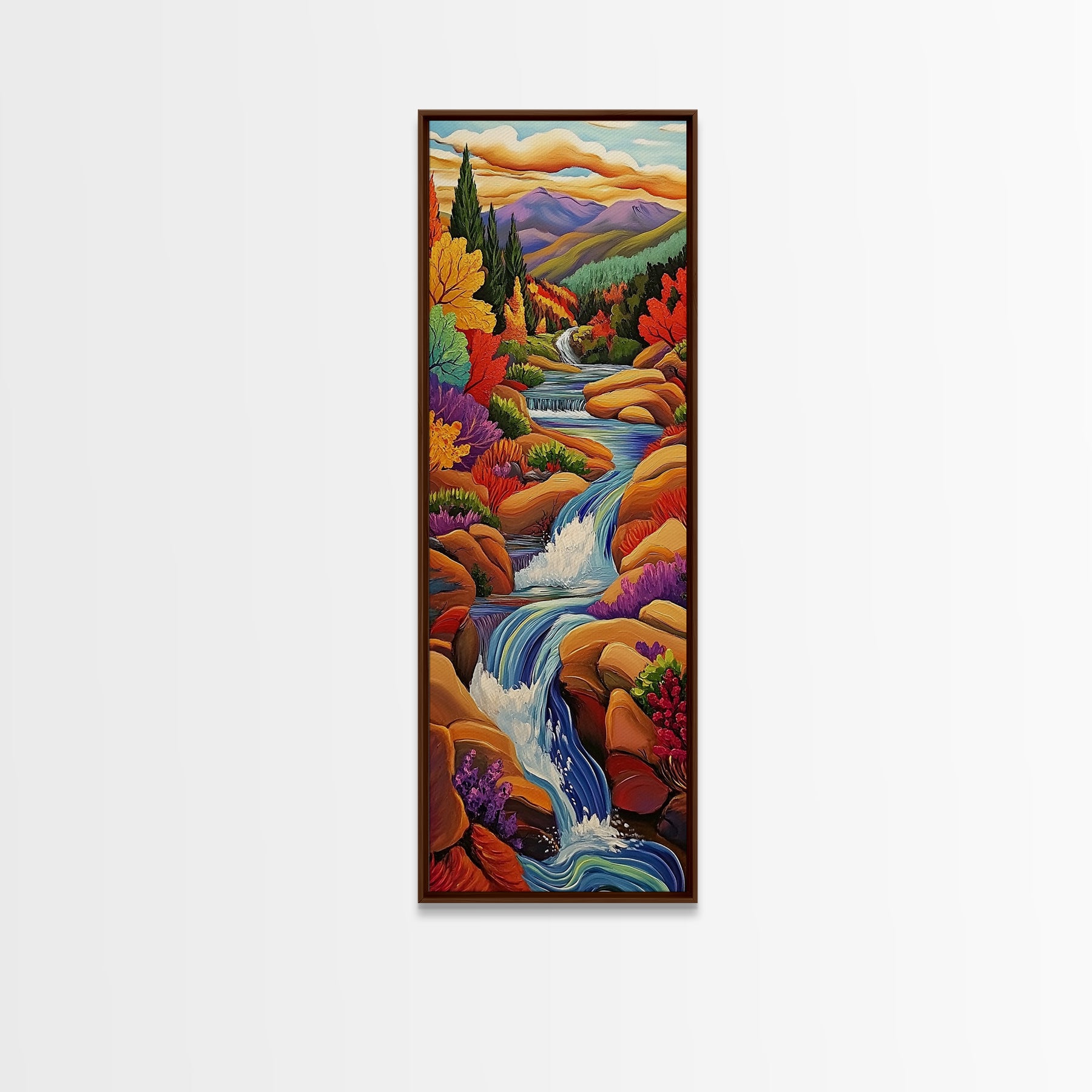 Autumn Waterfall, Mountain, River — Canvas Print of fall mountain river scene, great for Rustic Cabin Decor or Autumn Living Room Wall Art