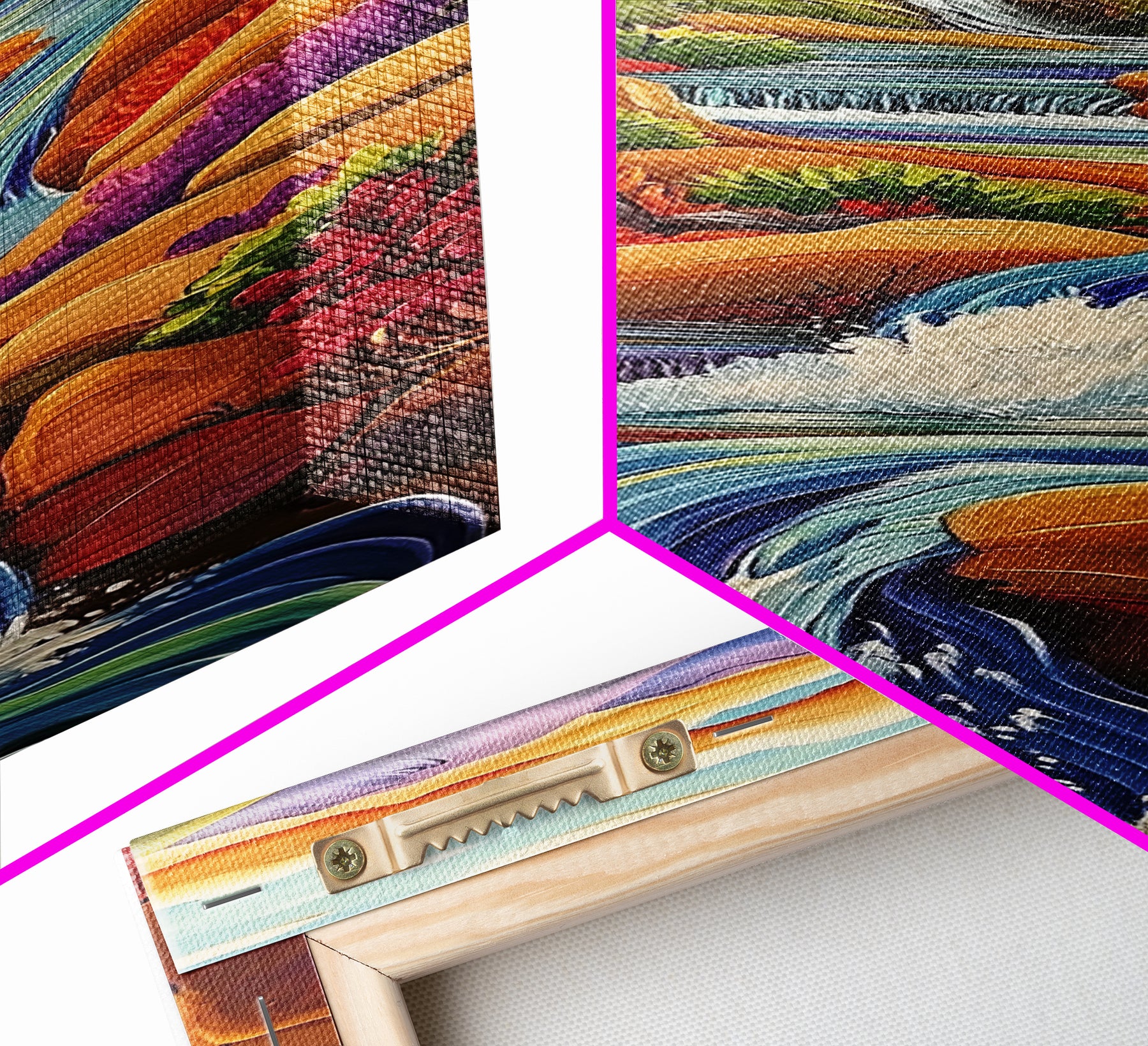 *Optional frames add a total of 1.5 inches to each dimension, for example a 10x20 canvas with a frame will be 11.5 by 21.5 inches total. All framed canvas are 1.5" total depth.
