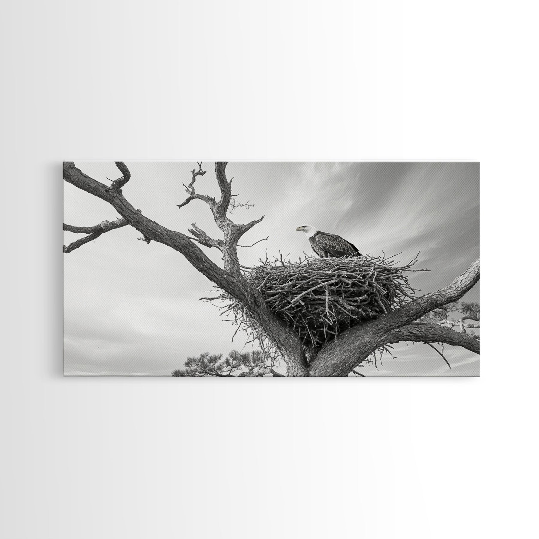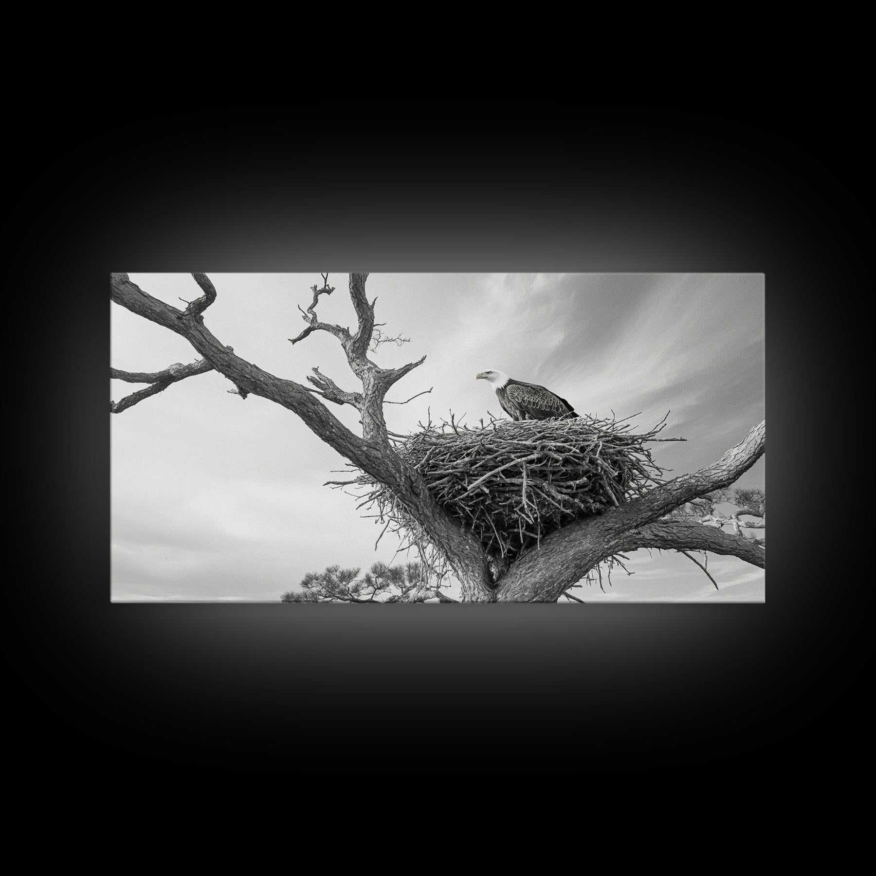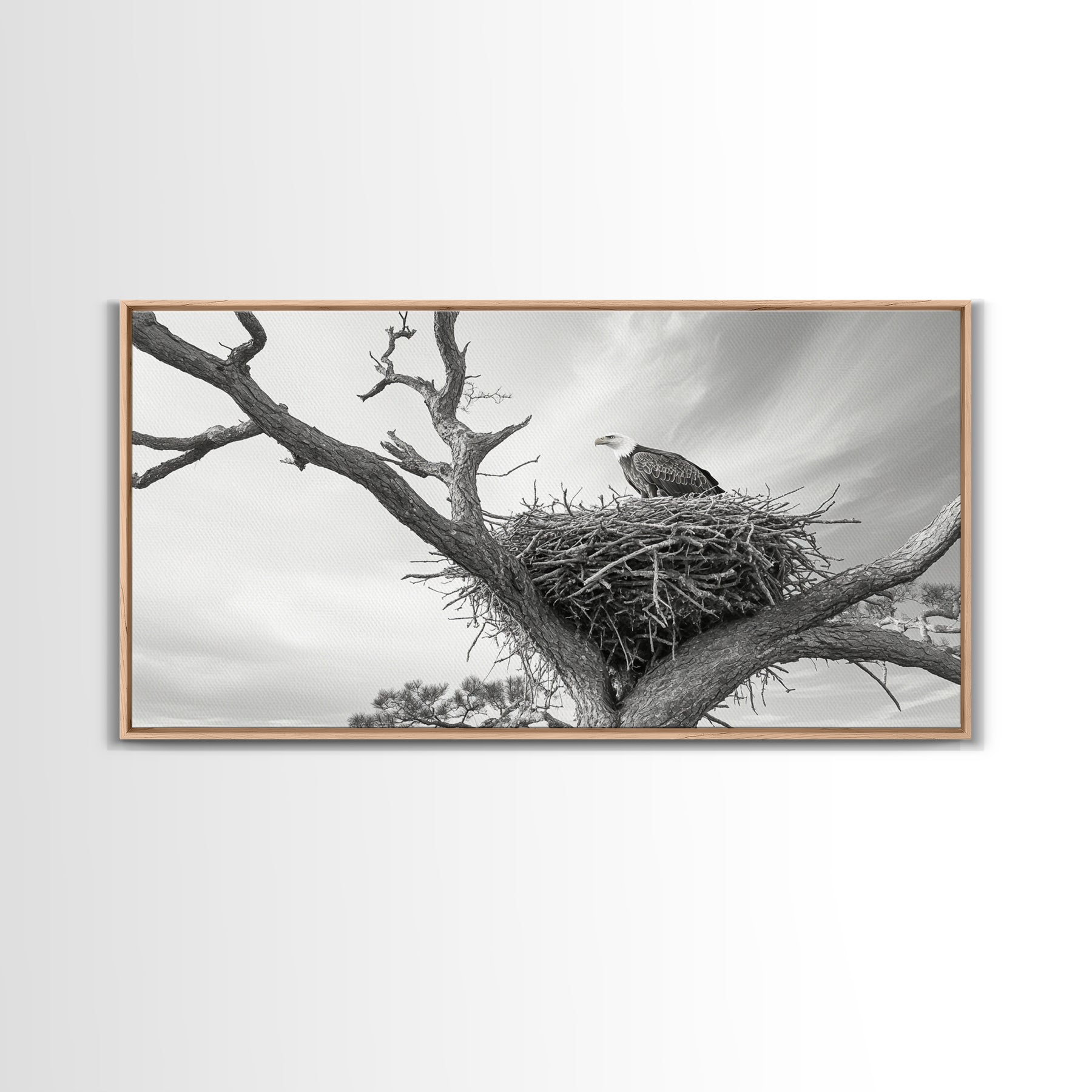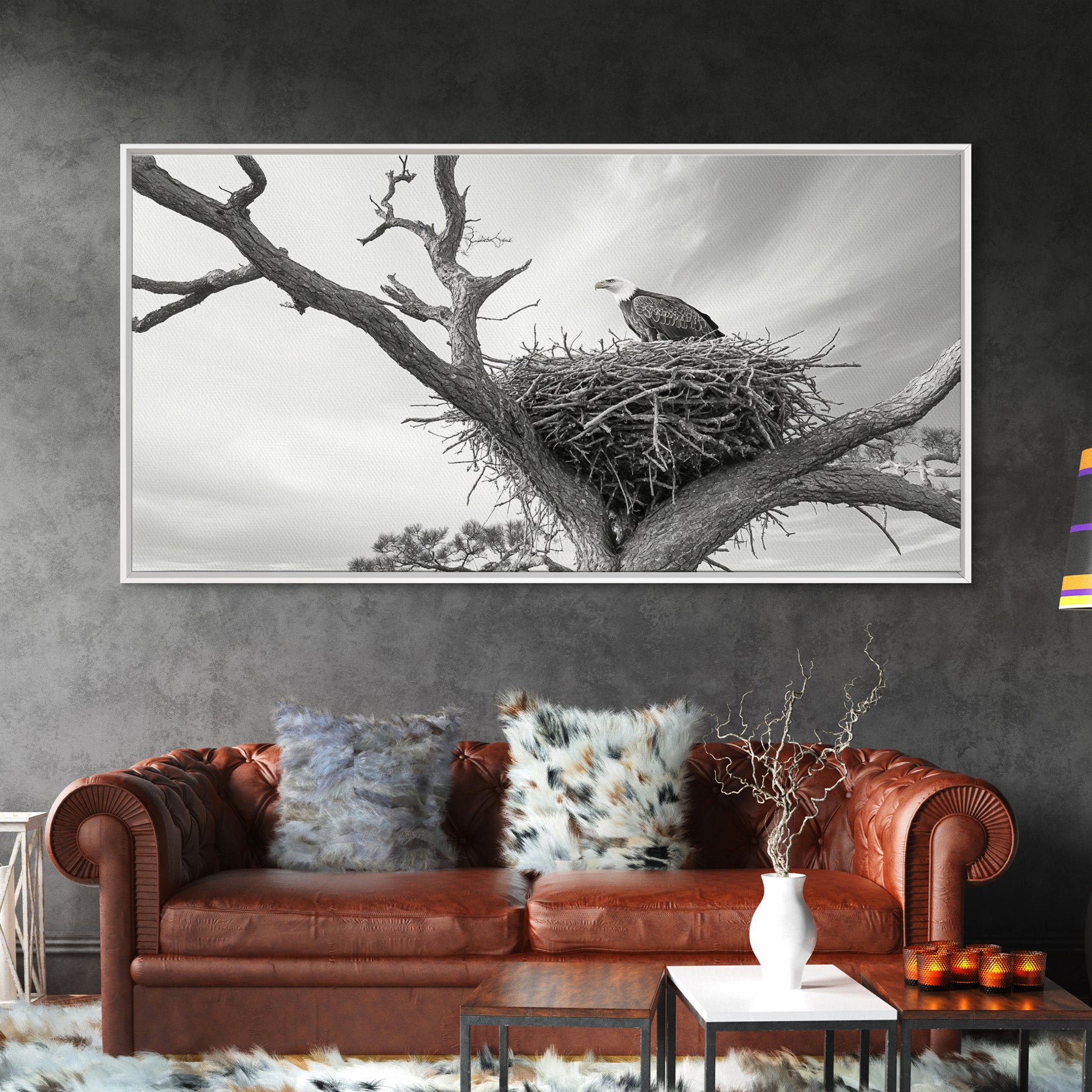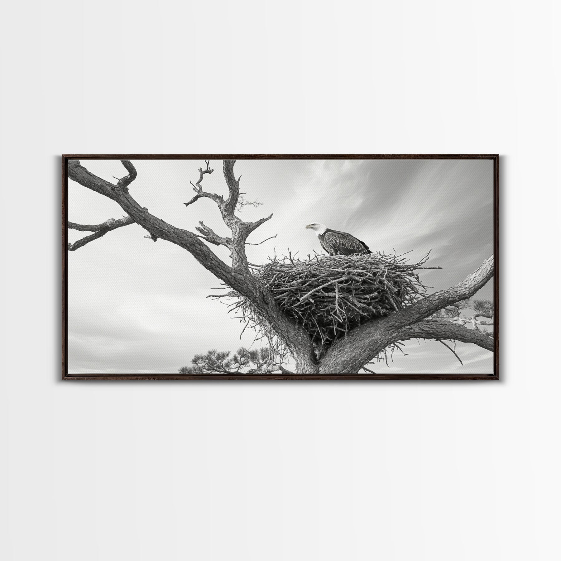 Bald Eagle Nest, Wildlife Nature Art, Rustic Cabin Decor, Framed Canvas Print, Patriotic Office Wall Art, Woodland Photography