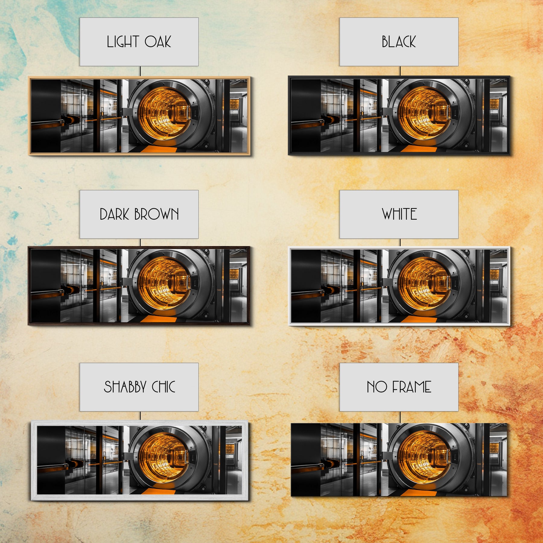 Bank Vault, Futuristic Glow, Industrial Design, Gold Tones, Framed Canvas Print, Office Wall Art, Cyberpunk Decor, Grunge Decor