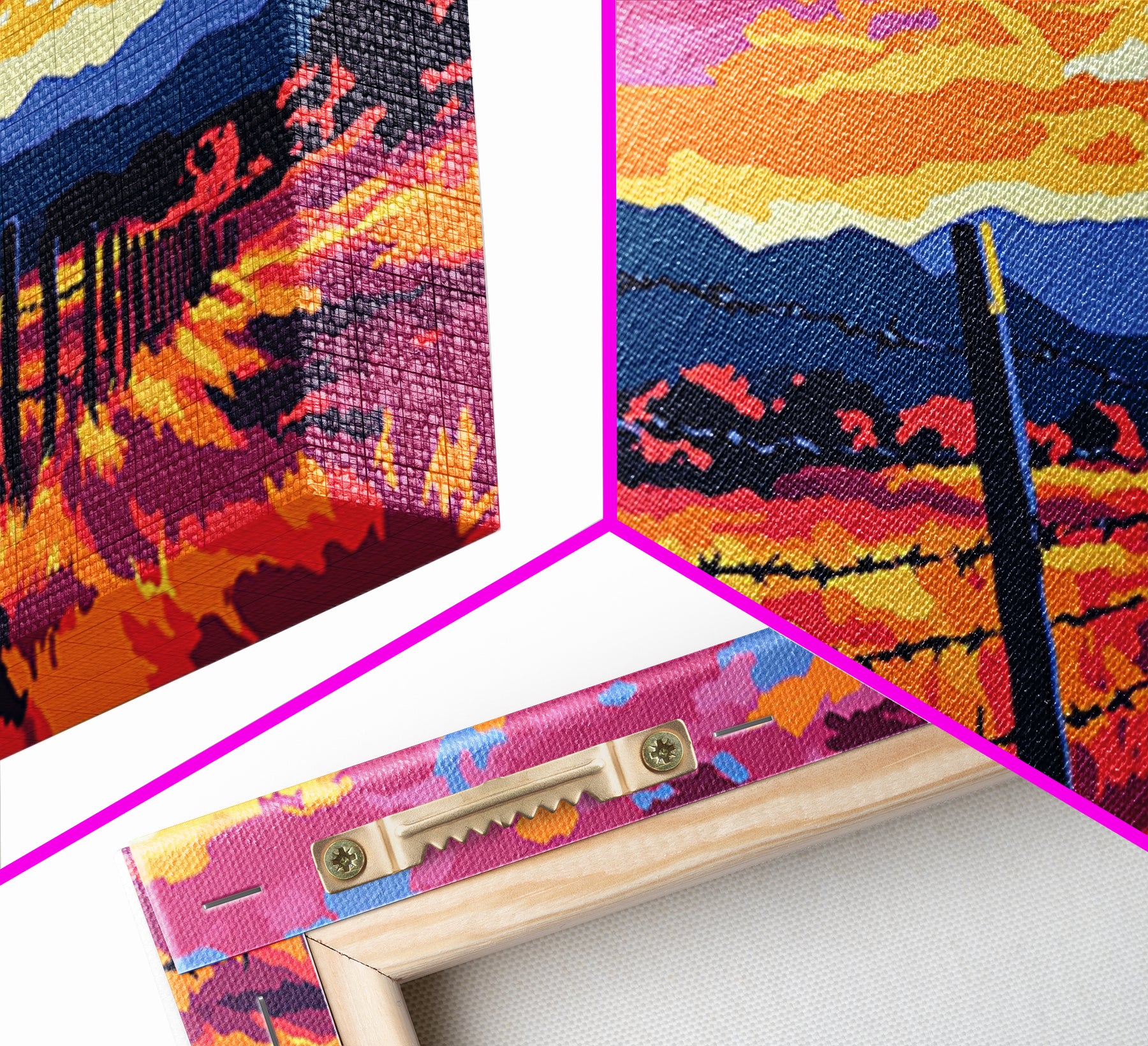 *SHIPPING: Every canvas is carefully wrapped in bubble wrap and foam corner protectors, and shipped fully assembled and ready to hang with sawtooth hangers in a flat box. All you need is a hammer!