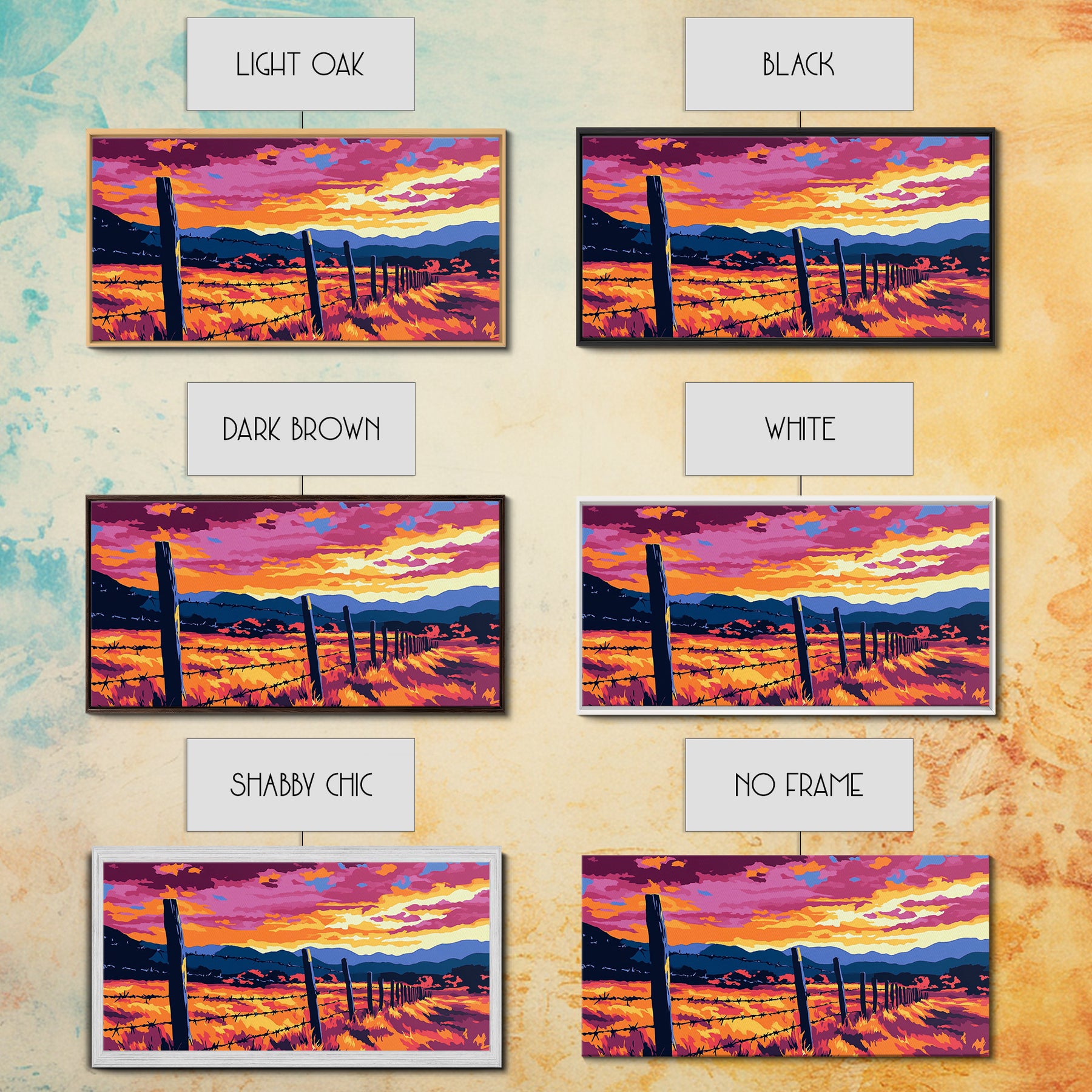 *Optional frames add a total of 1.5 inches to each dimension, for example a 10x20 canvas with a frame will be 11.5 by 21.5 inches total. All framed canvas are 1.5" total depth.