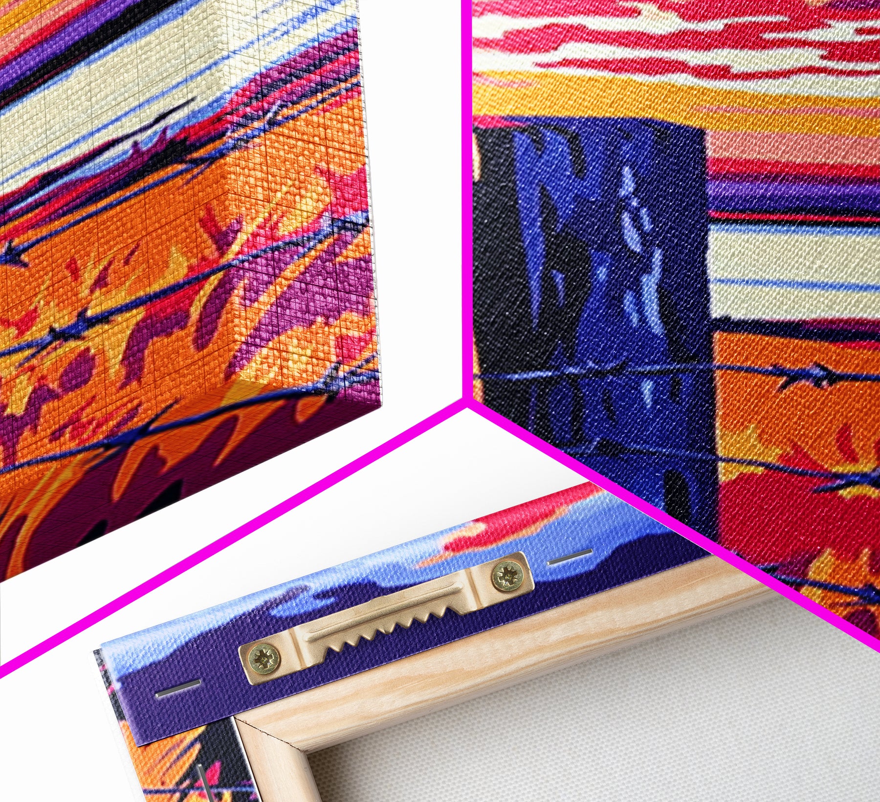 Hello and thank you for taking the time to view our modern high quality giclée artwork! We offer both posters and stretched canvas prints. Our posters are printed on Ultra Matte 60 lb / 230 GSM high quality photo paper, with a thickness of 10 mil. Our canvases are printed on museum grade 350 GSM canvas material with ECO friendly archival grade ink, then hand stretched and stapled over premium, FSC certified and shrink resistant frames. Designed and built to last a lifetime.
