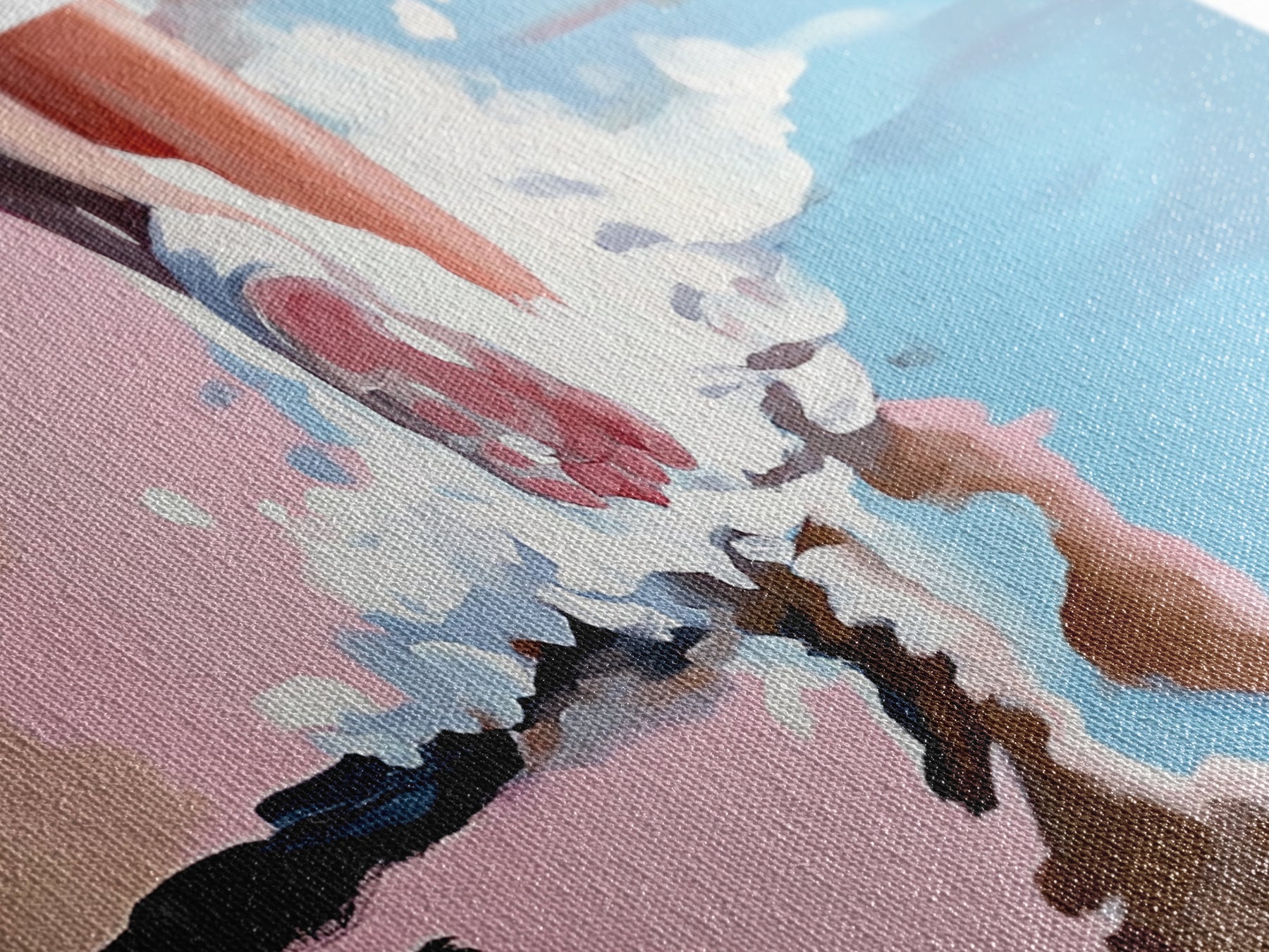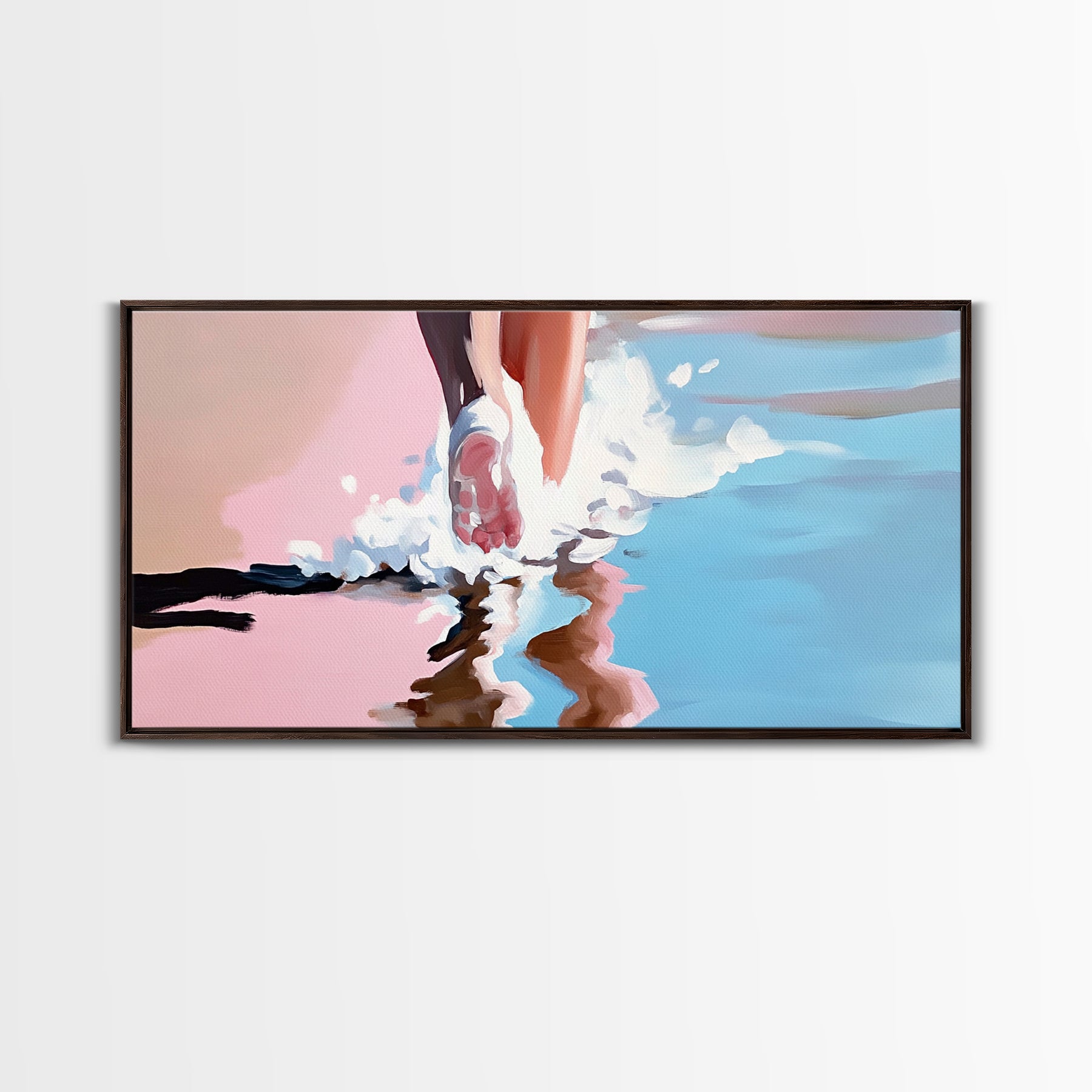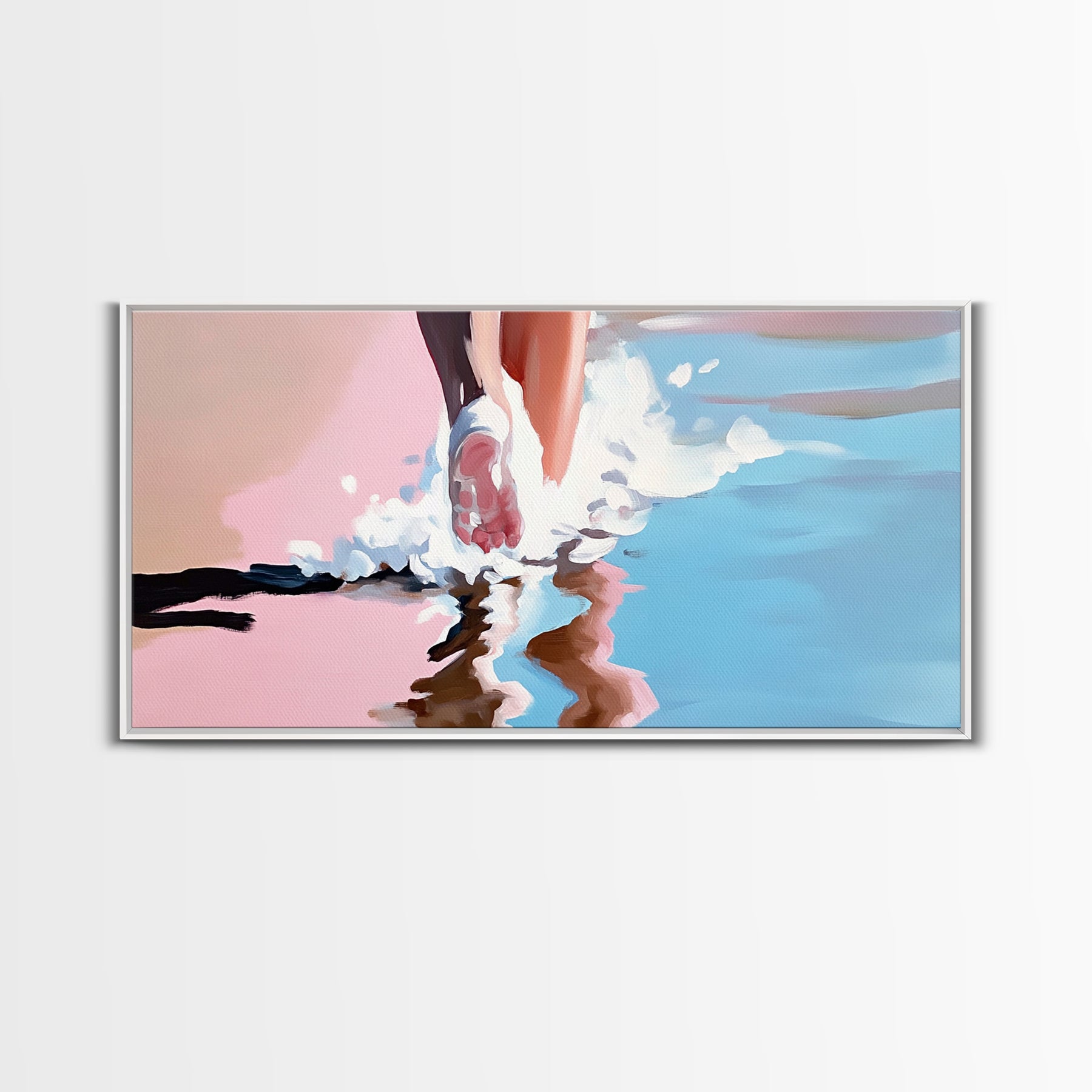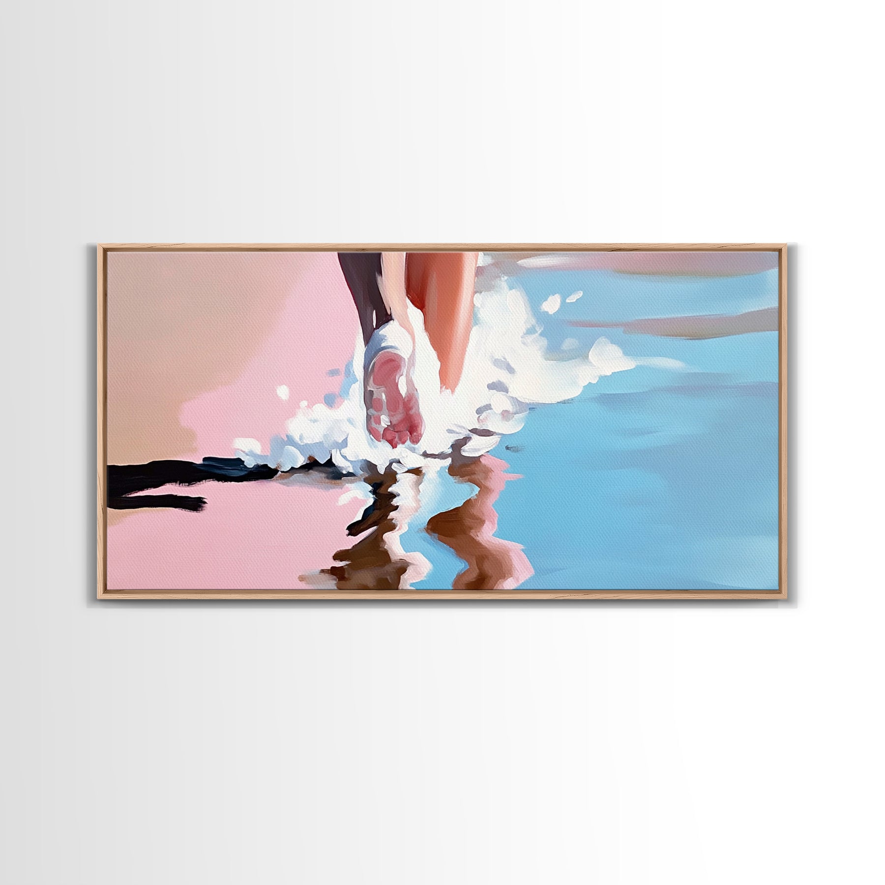 Barefoot Beach Walk, coastal decor, ocean painting, seascape painting, pink abstract art, light pink wall art, canvas print