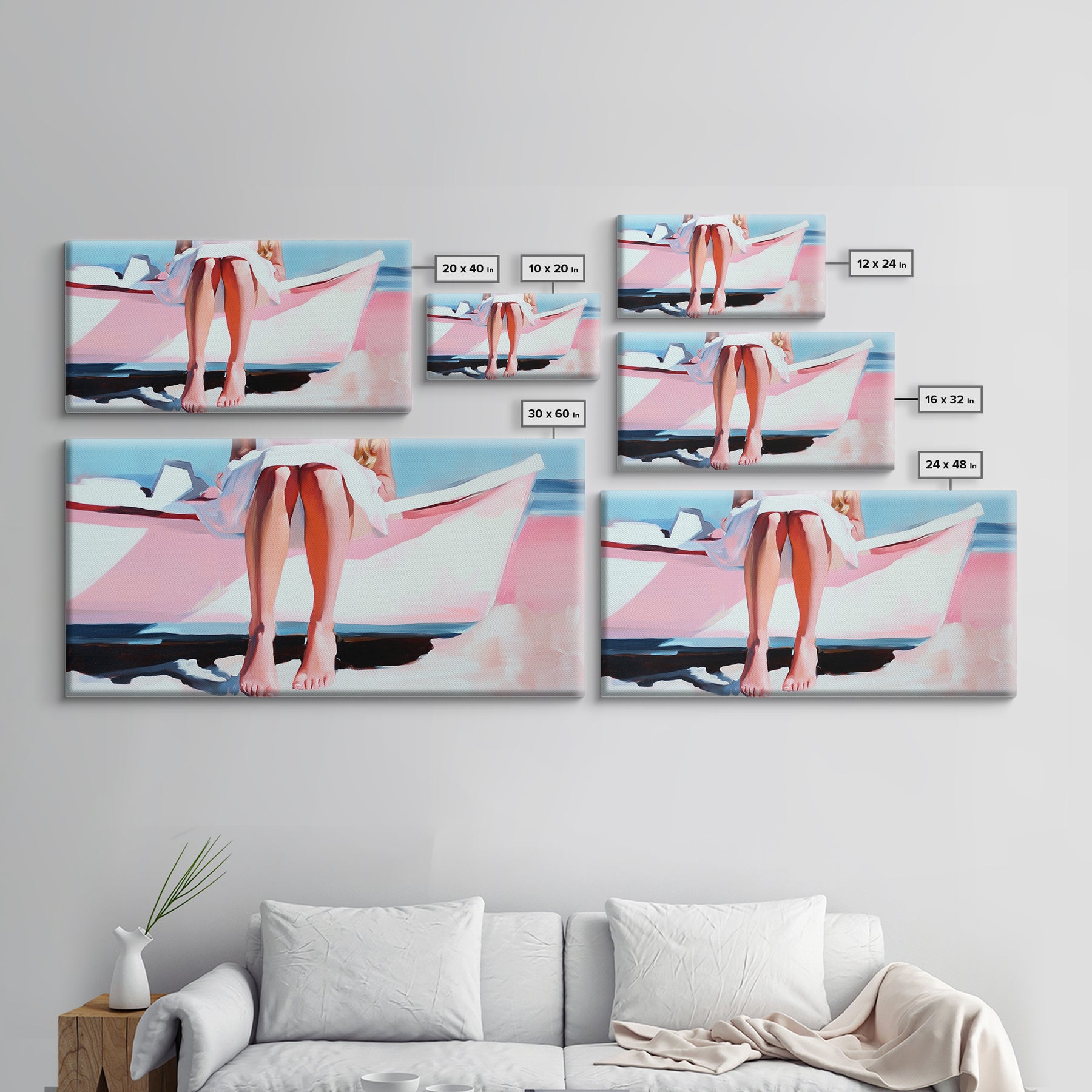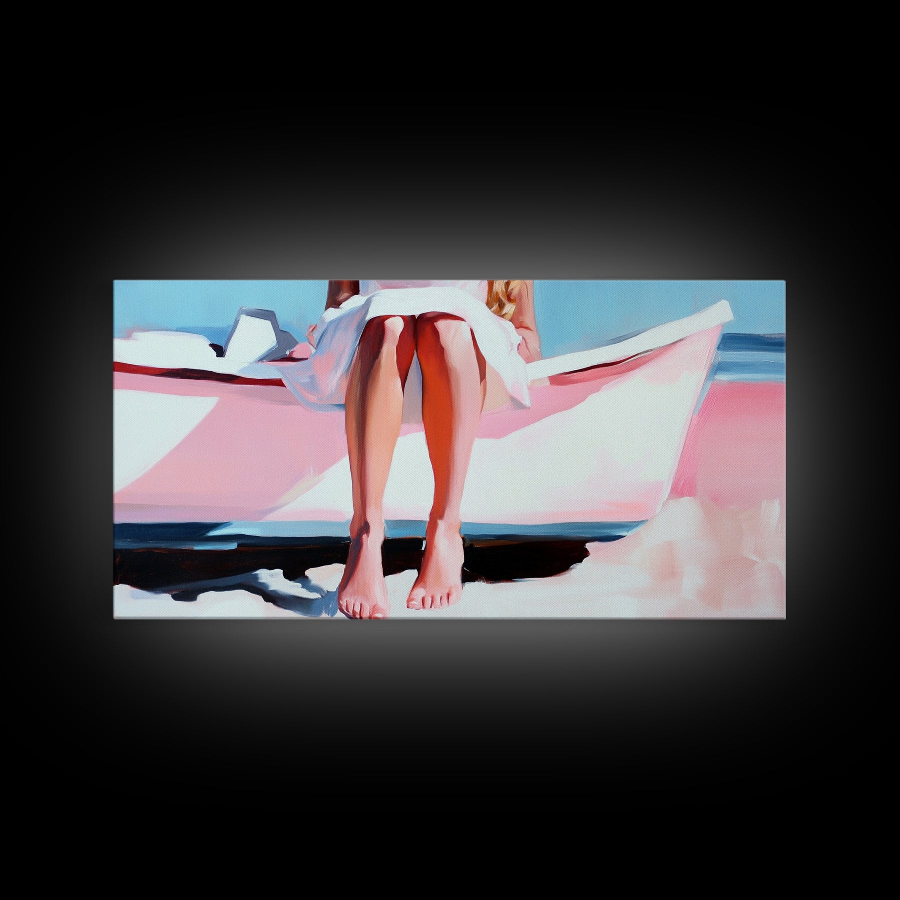 Barefoot on Boat, Coastal Lifestyle, Serene Beach Art, Nautical Aesthetic, Minimalist Wall Decor, Pastel Home Art, Canvas Print