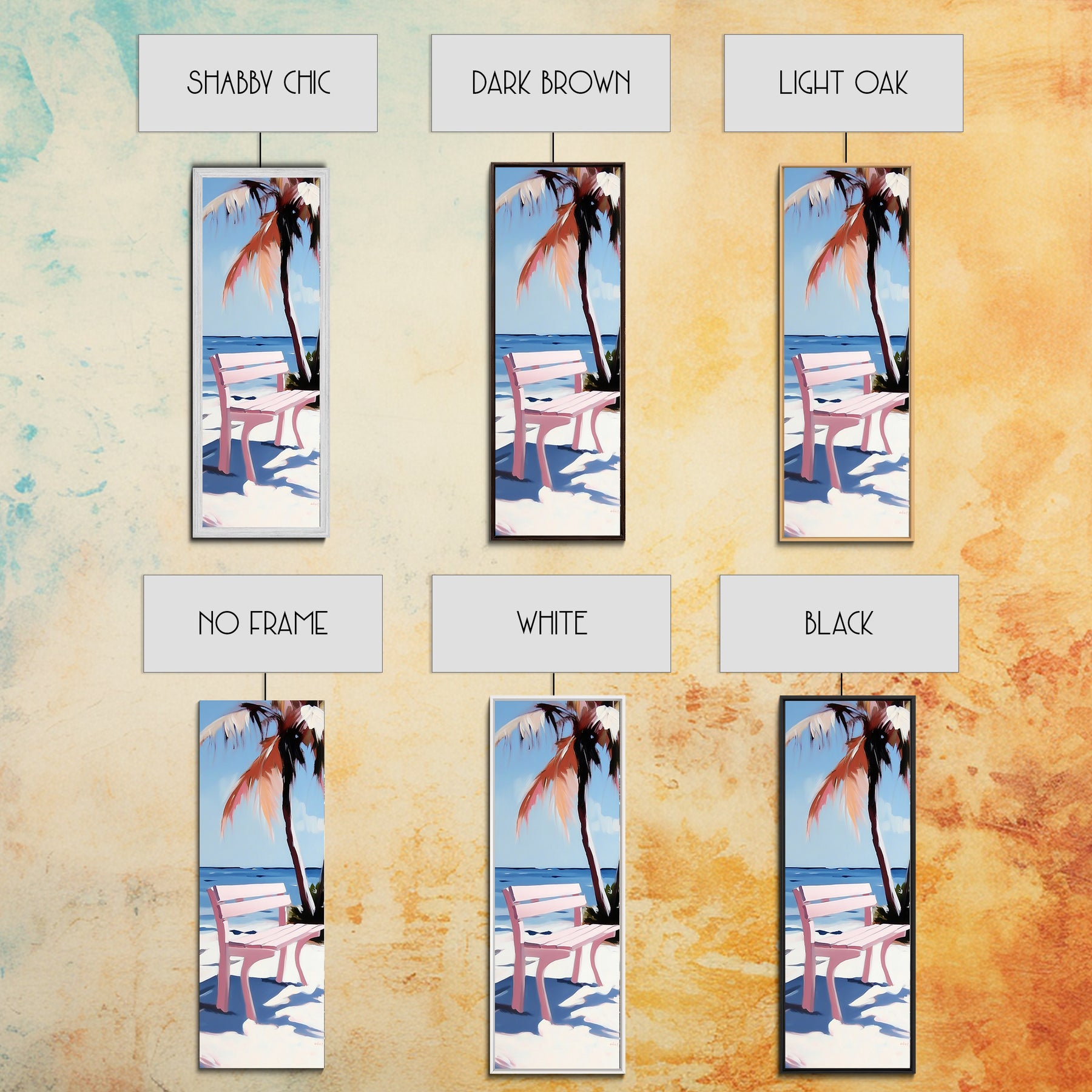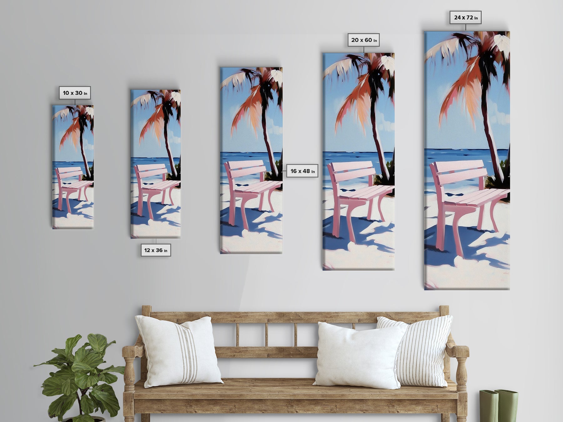Beach Bench, Palm Tree, Ocean View, Framed Canvas Print, Coastal Wall Art, Tropical Decor, Boho Beach Art, Living Room Wall Art