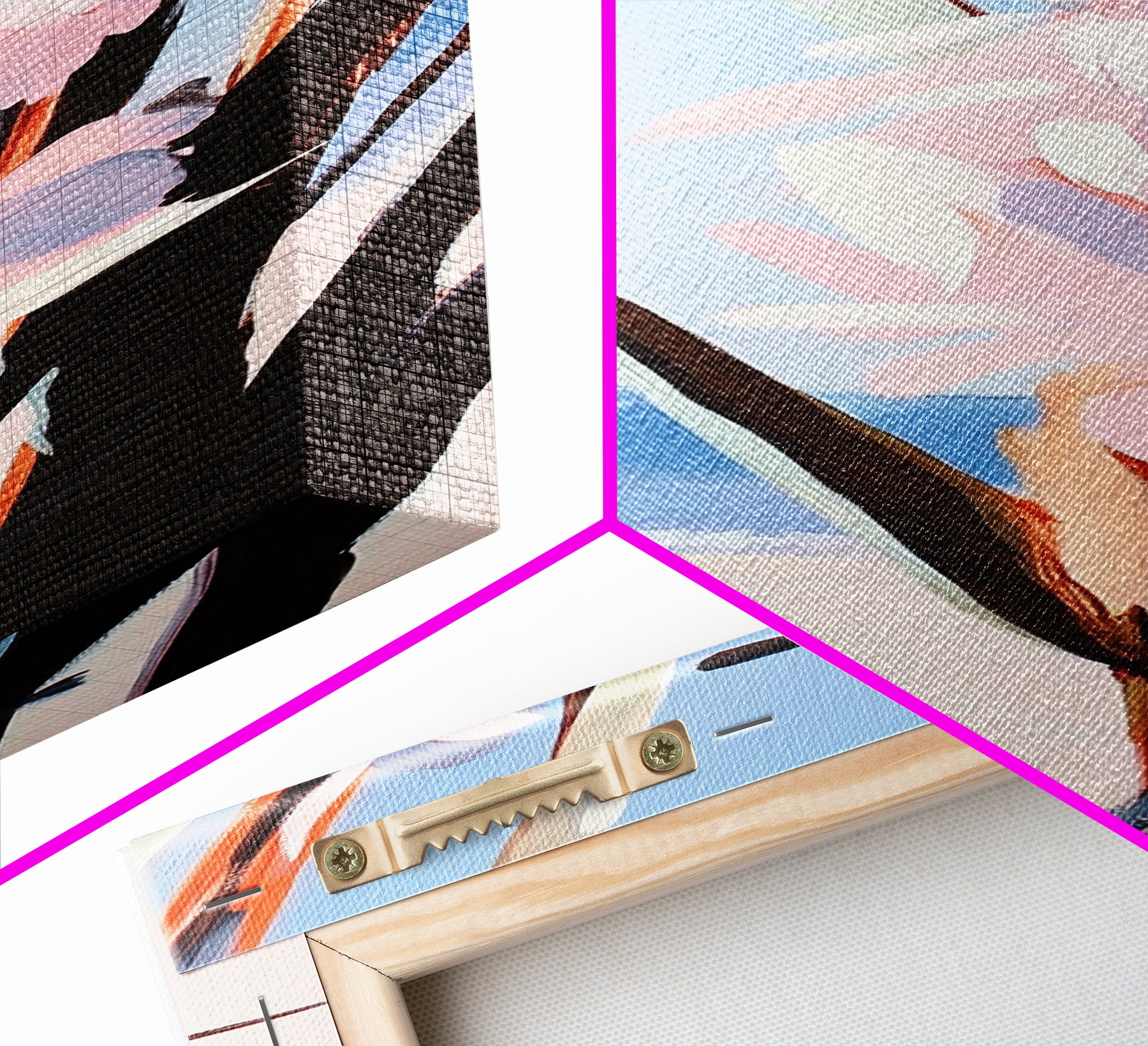 Hello and thank you for taking the time to view our modern high quality giclée artwork! We offer both posters and stretched canvas prints. Our posters are printed on Ultra Matte 60 lb / 230 GSM high quality photo paper, with a thickness of 10 mil. Our canvases are printed on museum grade 350 GSM canvas material with ECO friendly archival grade ink, then hand stretched and stapled over premium, FSC certified and shrink resistant frames. Designed and built to last a lifetime.