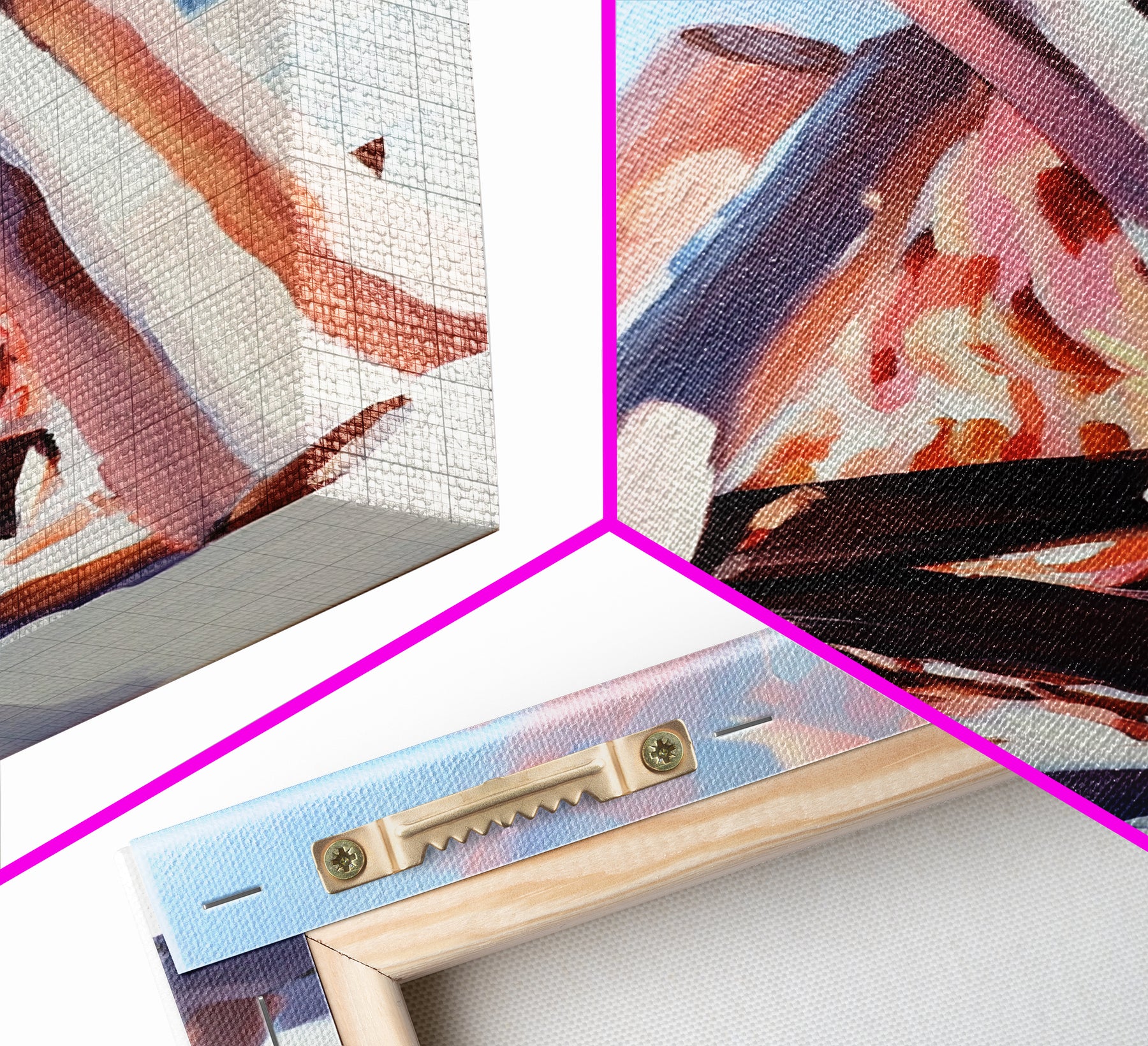 Hello and thank you for taking the time to view our modern high quality giclée artwork! We offer both posters and stretched canvas prints. Our posters are printed on Ultra Matte 60 lb / 230 GSM high quality photo paper, with a thickness of 10 mil. Our canvases are printed on museum grade 350 GSM canvas material with ECO friendly archival grade ink, then hand stretched and stapled over premium, FSC certified and shrink resistant frames. Designed and built to last a lifetime.