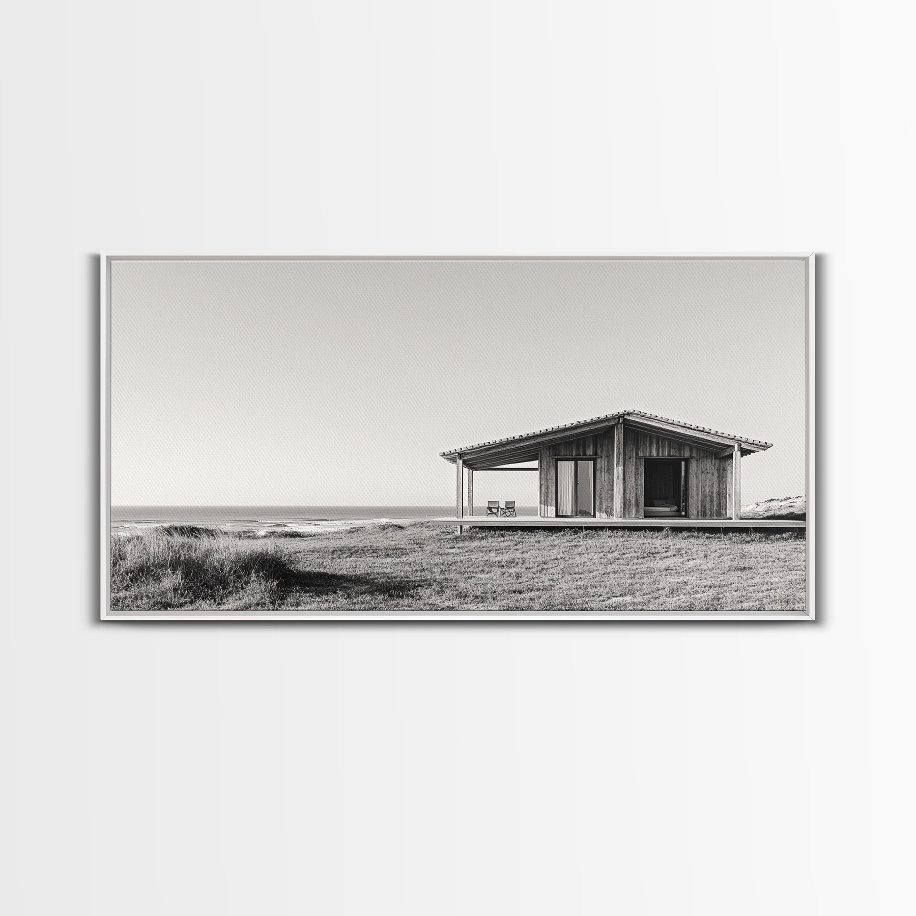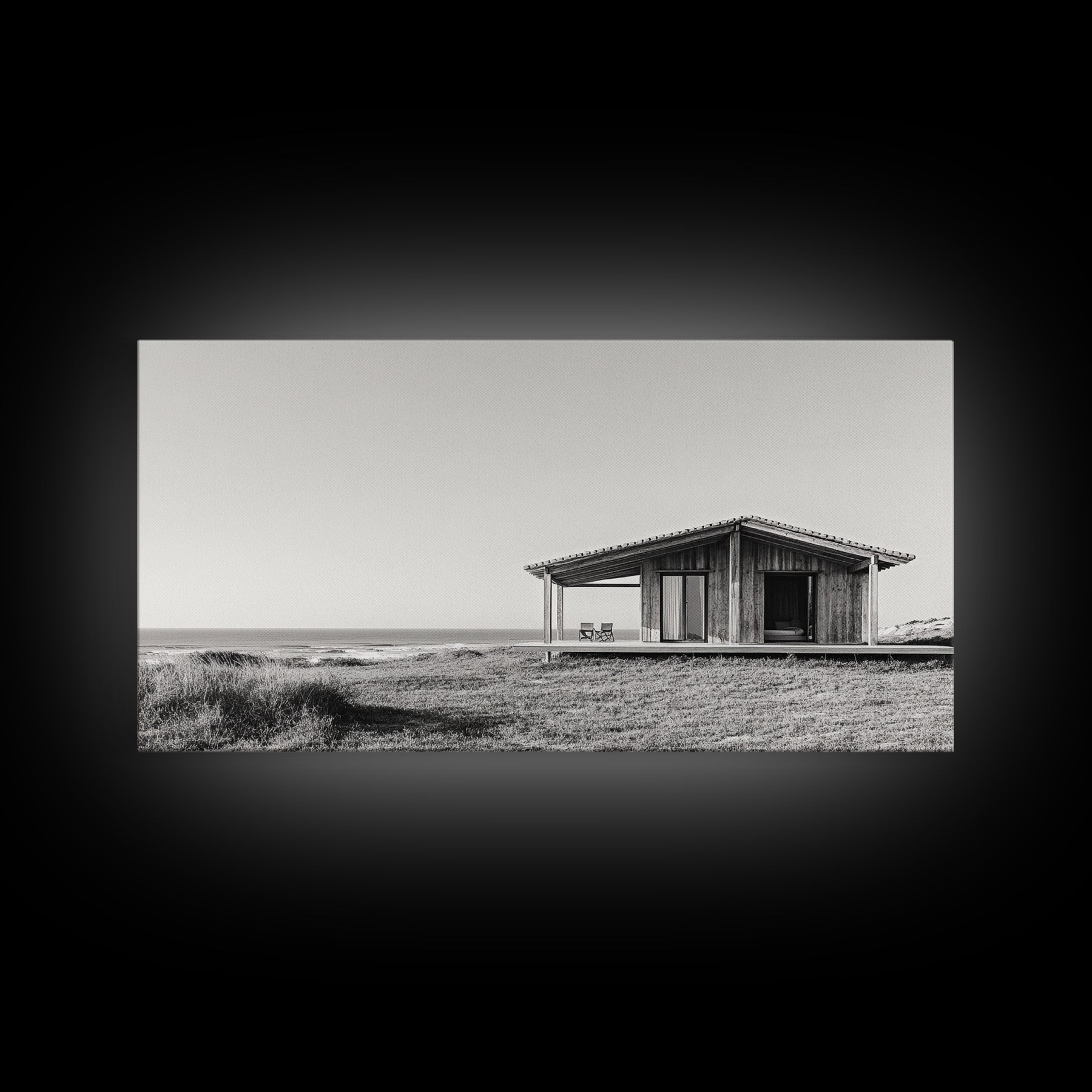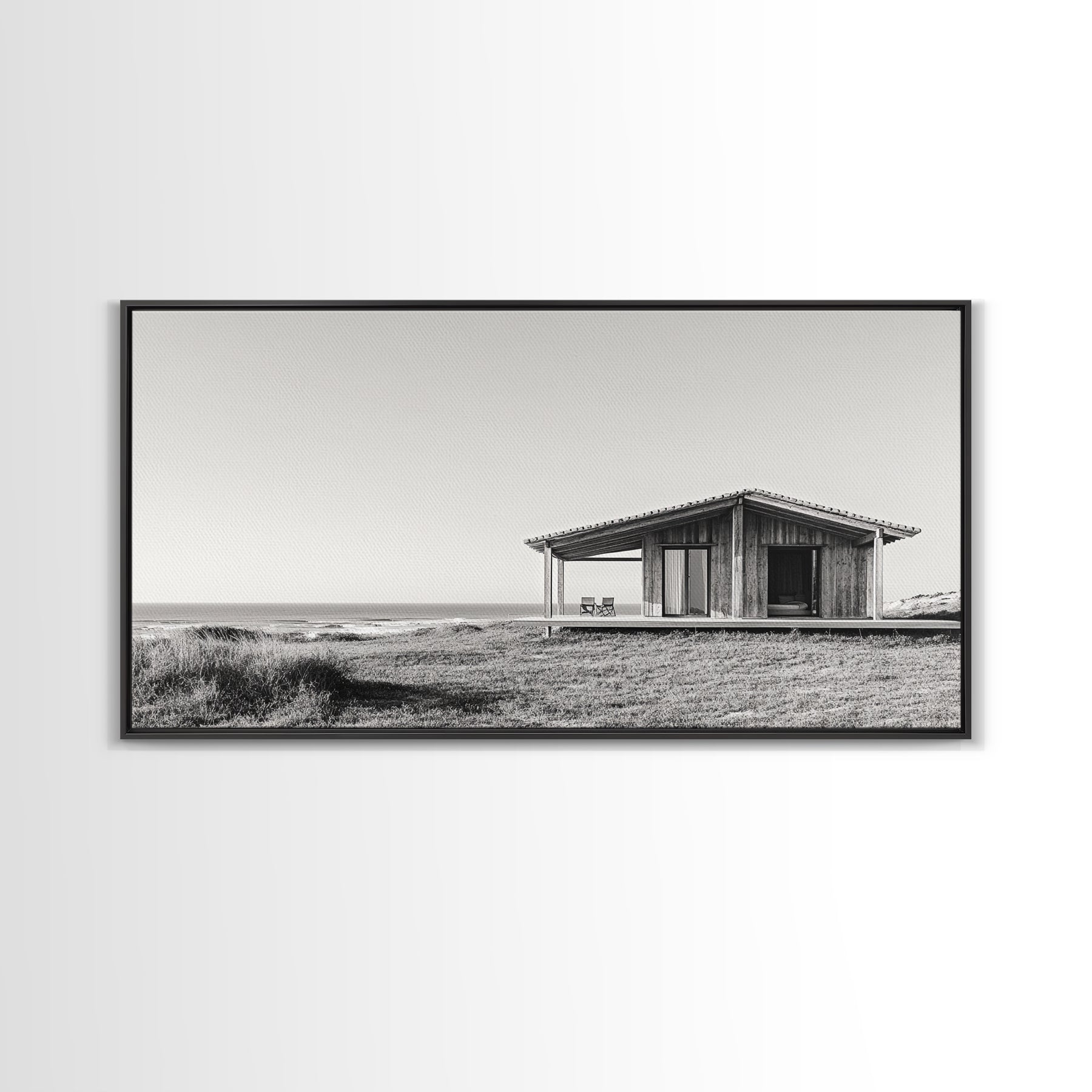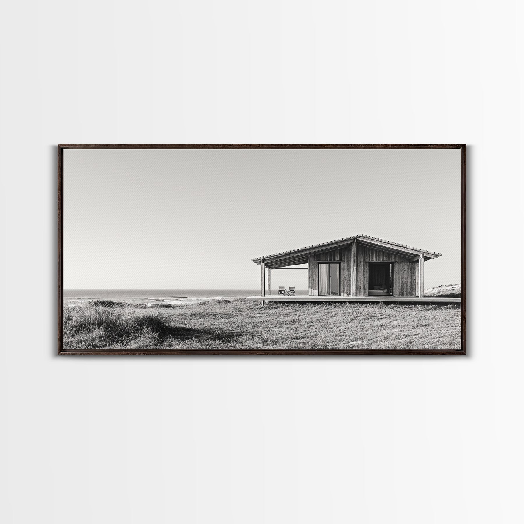 Beach Cabin, Coastal Escape, Minimalist Home, Seaside Solitude Scene, Canvas Print, Boho Beach Wall Art, Guest Room Decor