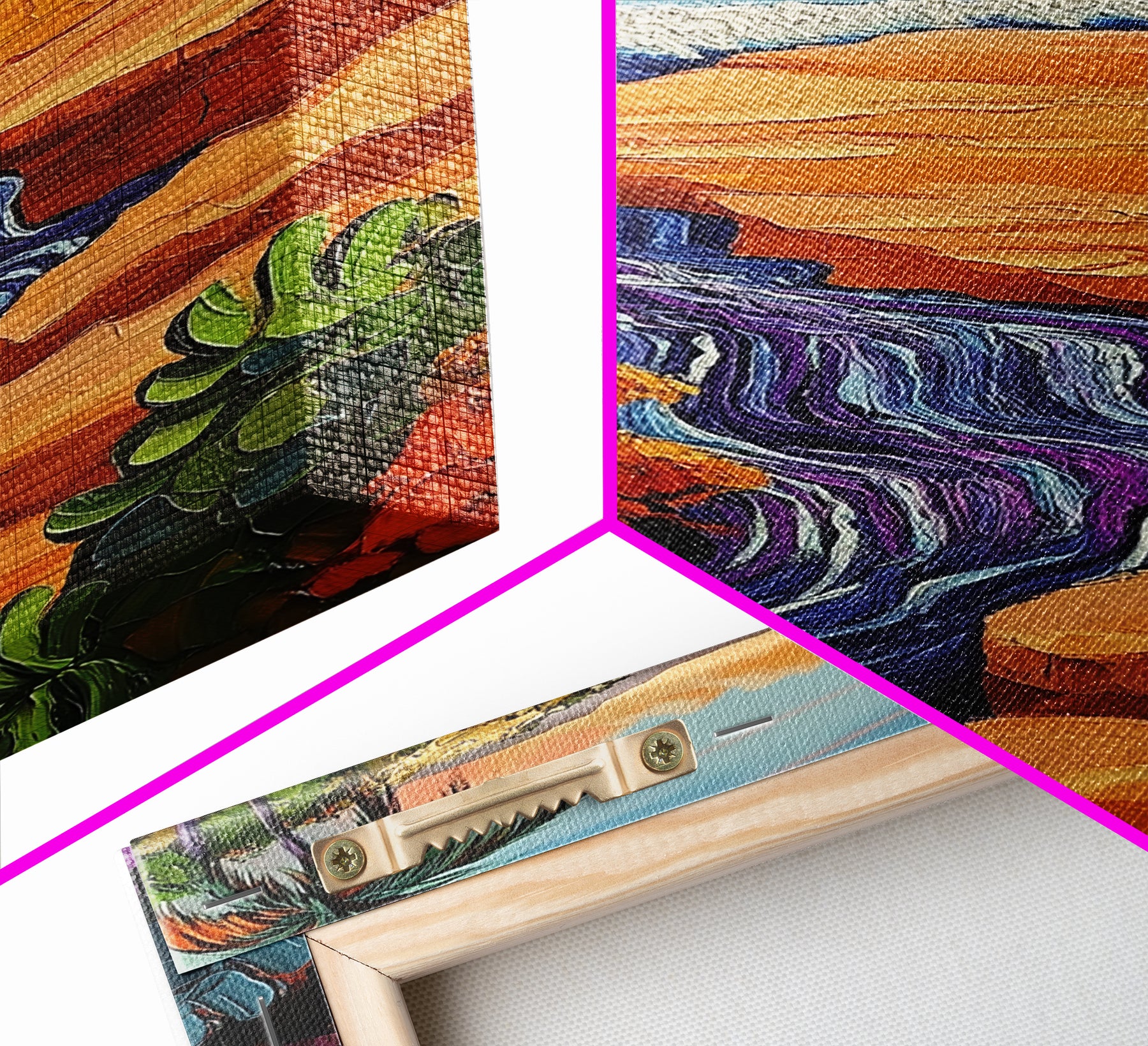 *Optional frames add a total of 1.5 inches to each dimension, for example a 10x20 canvas with a frame will be 11.5 by 21.5 inches total. All framed canvas are 1.5" total depth.
