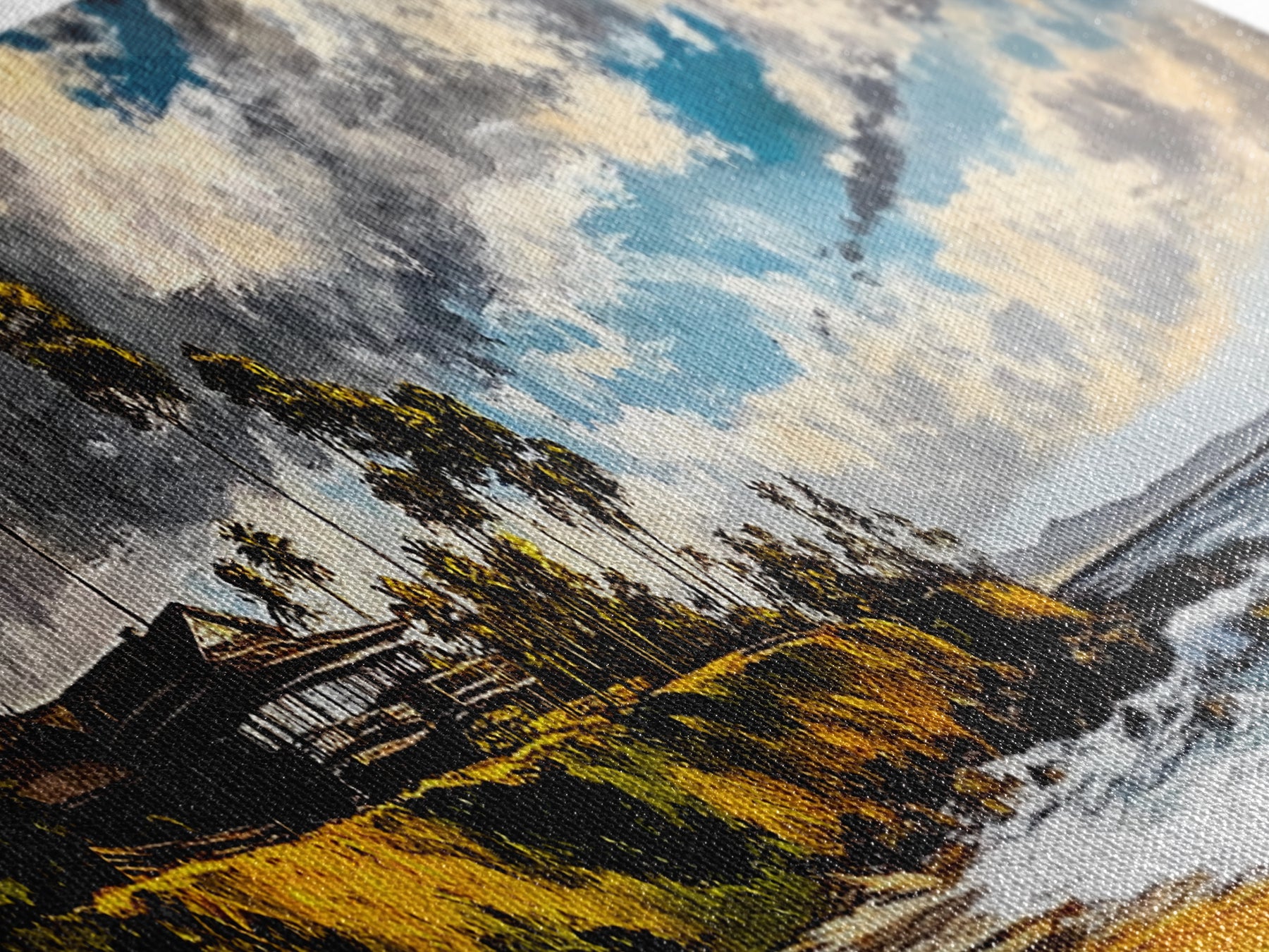 Most of our canvases are made in the USA, with the exception of canvases ordered with the light oak unstained frames, and any large canvases (24x48, 30x60, 16x48 and 20x60) ordered WITH a frame. These are temporarily made in and shipped from Europe, while we try to find a more consistent supplier in the USA.