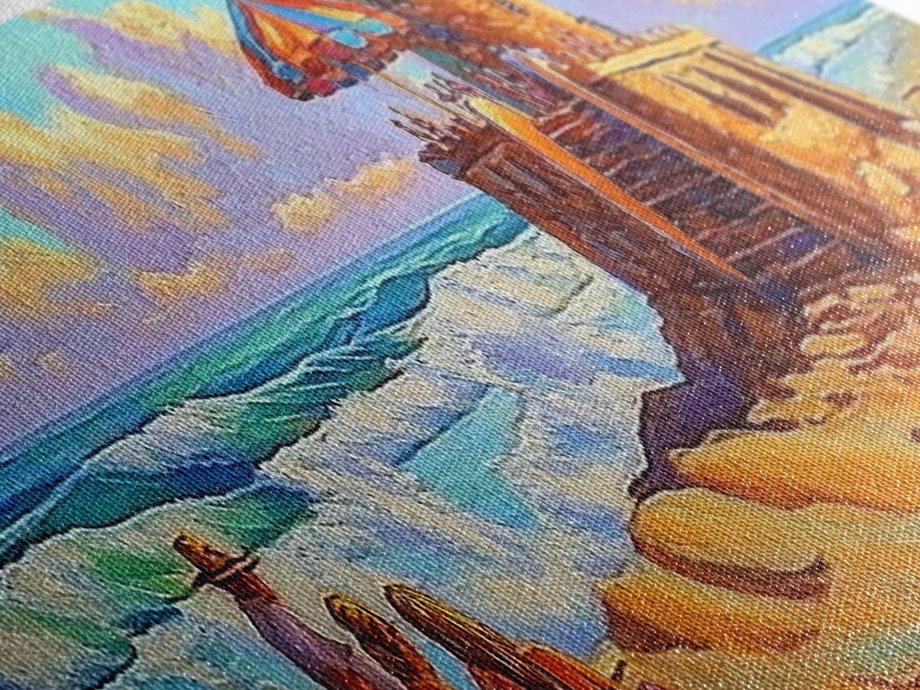 Most of our canvases are made in the USA, with the exception of canvases ordered with the light oak unstained frames, and any large canvases (24x48, 30x60, 16x48 and 20x60) ordered WITH a frame. These are temporarily made in and shipped from Europe, while we try to find a more consistent supplier in the USA.