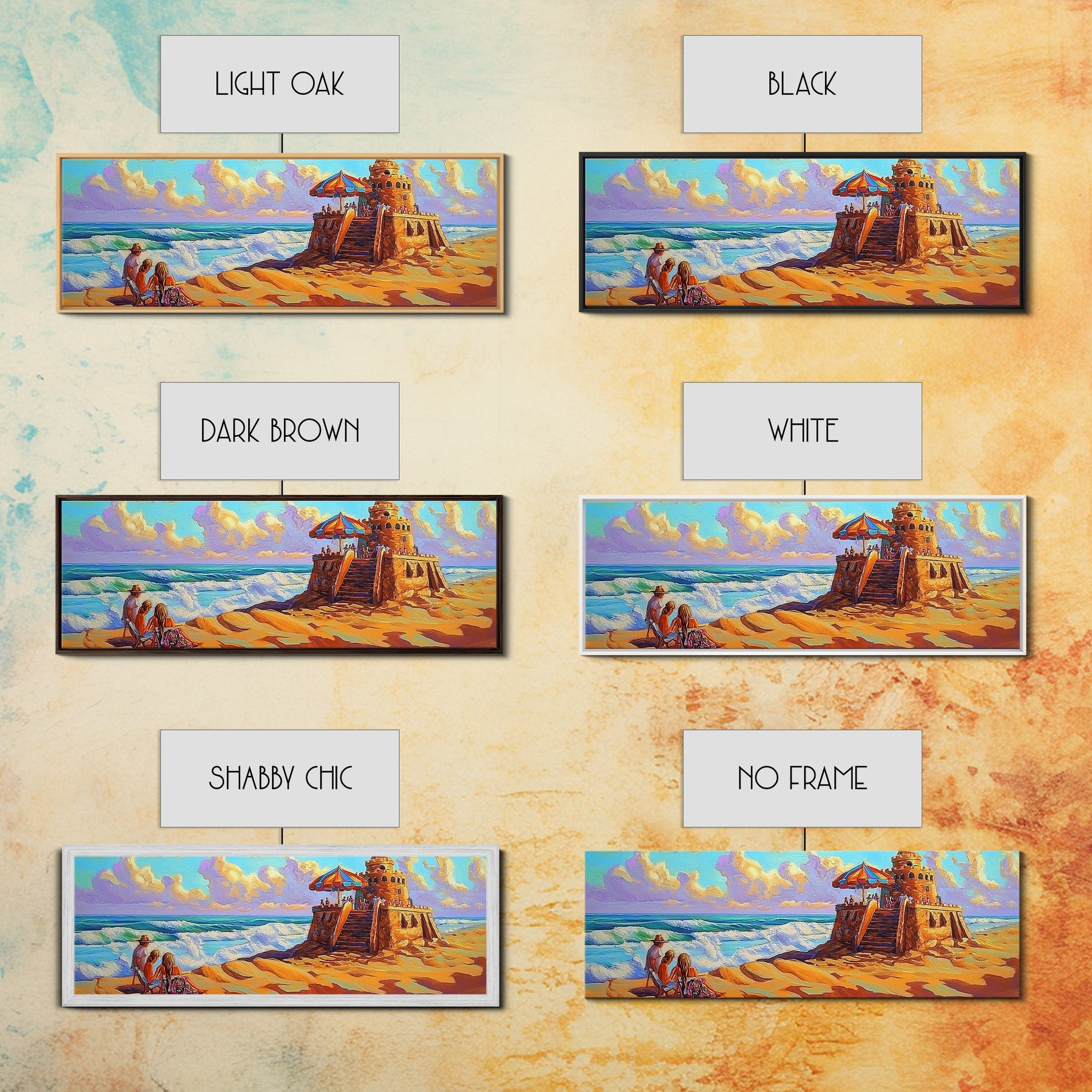 Beach Fortress, Family Fun, Ocean Adventure, Sunny Day Framed Canvas Print, Vacation Memory Wall Art, Playroom Beach Art