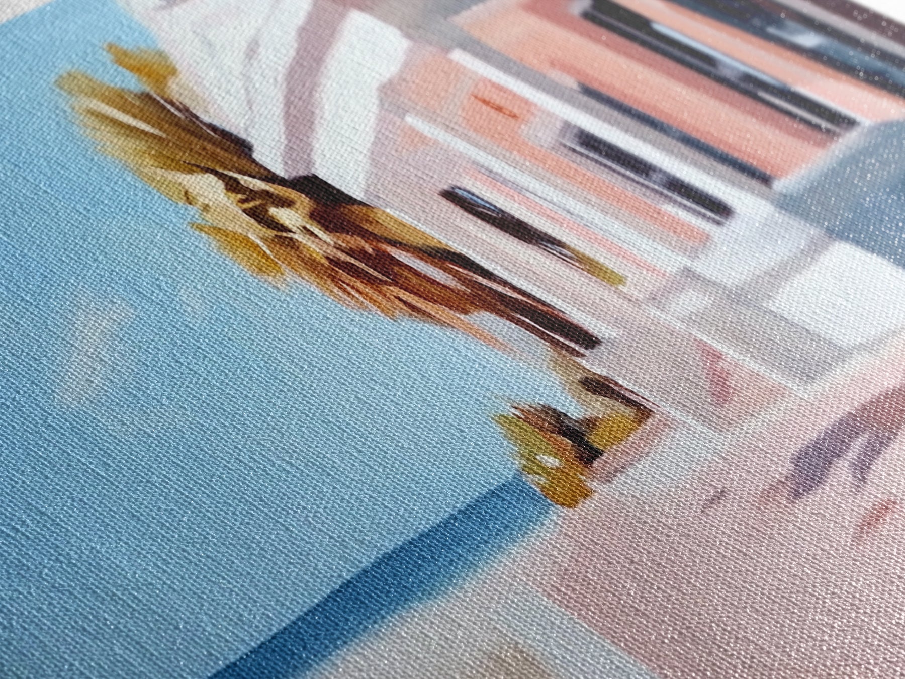 Most of our canvases are made in the USA, with the exception of canvases ordered with the light oak unstained frames, and any large canvases (24x48, 30x60, 16x48 and 20x60) ordered WITH a frame. These are temporarily made in and shipped from Europe, while we try to find a more consistent supplier in the USA.