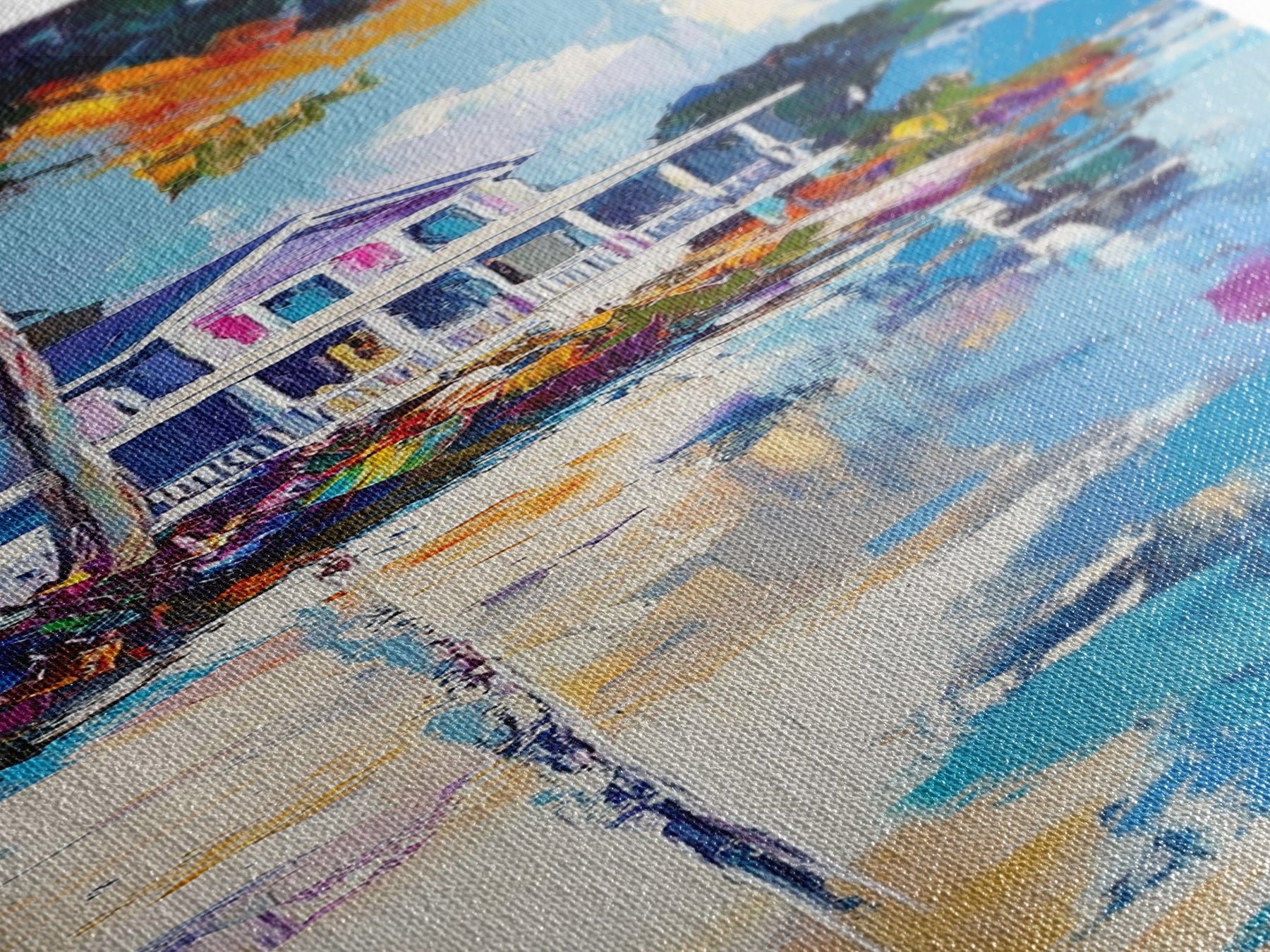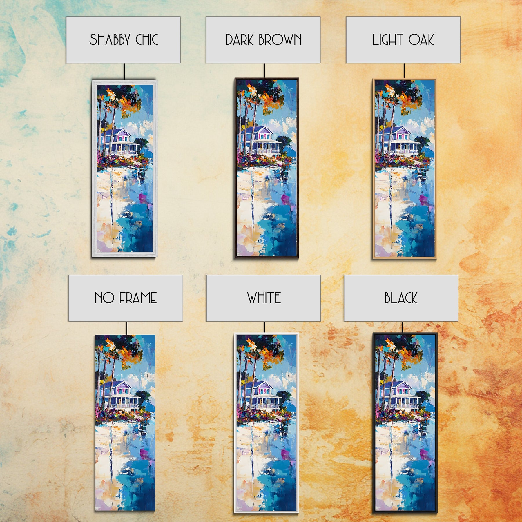 Beach House, Coastal Painting, Vibrant Landscape, Nautical Wall Art, Living Room Art, Above Bed Wall Art, Framed Canvas Print