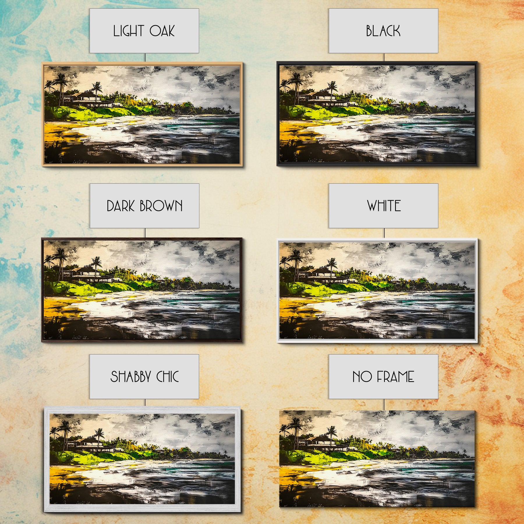 *Optional frames add a total of 1.5 inches to each dimension, for example a 10x20 canvas with a frame will be 11.5 by 21.5 inches total. All framed canvas are 1.5" total depth.