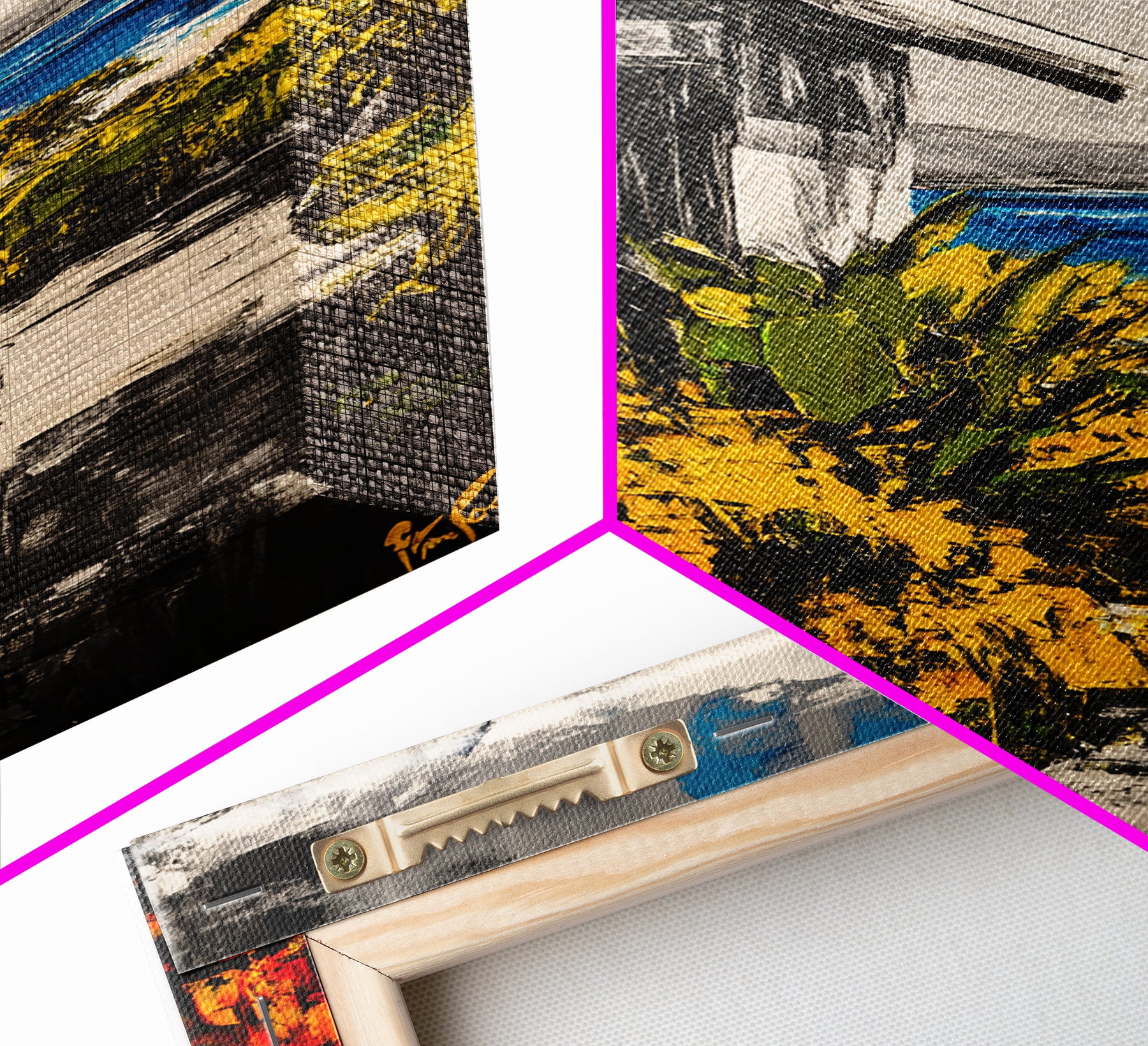 *SHIPPING: Every canvas is carefully wrapped in bubble wrap and foam corner protectors, and shipped fully assembled and ready to hang with sawtooth hangers in a flat box. All you need is a hammer!
