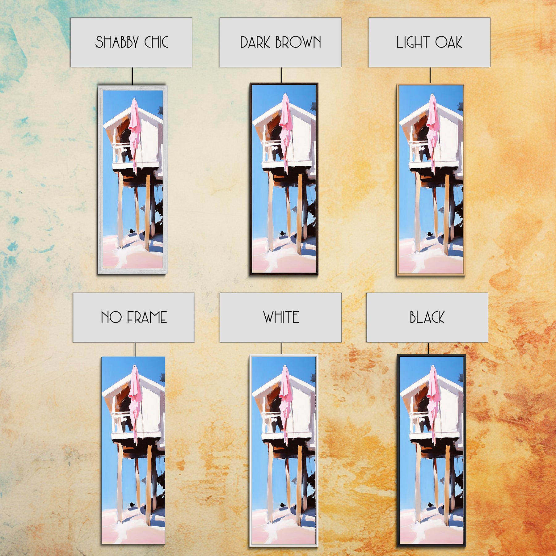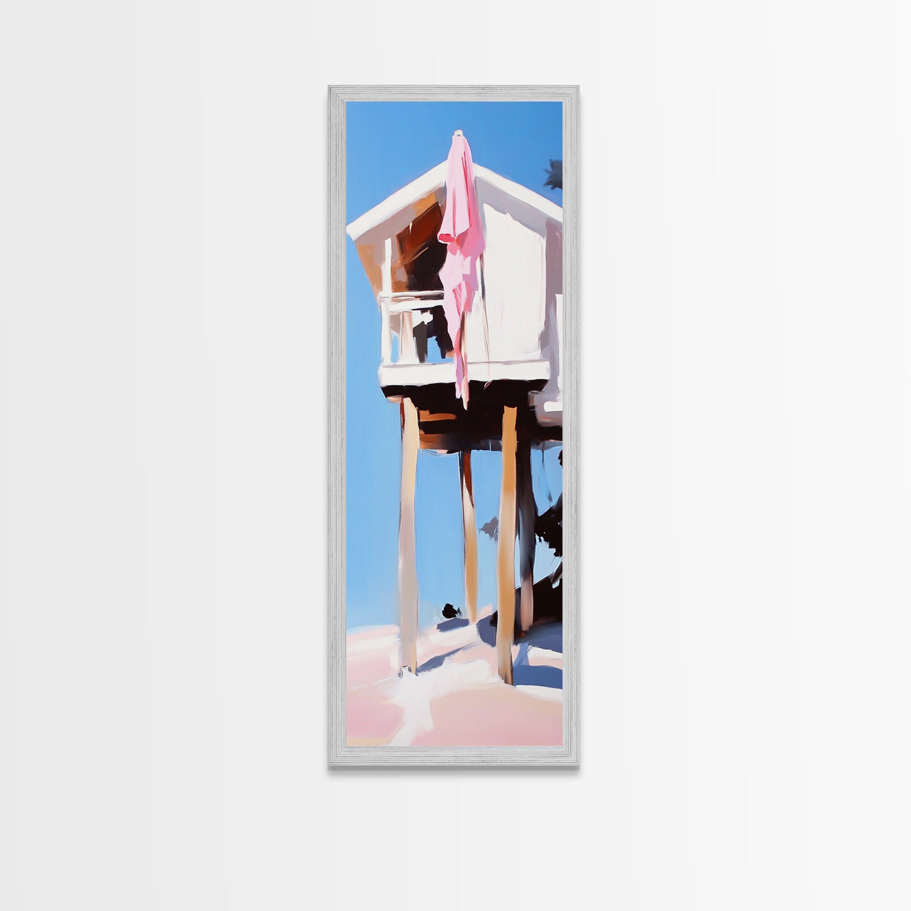 Beach Hut, Coastal Home, Seaside Escape, Nautical Decor, Ocean View, Warm Pastels, Beach House Art, Framed Canvas Print