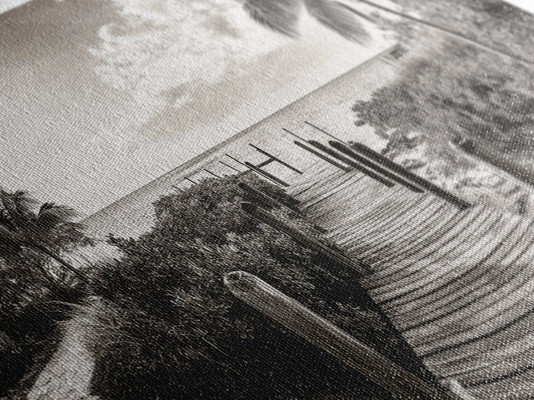 Most of our canvases are made in the USA, with the exception of canvases ordered with the light oak unstained frames, and any large canvases (24x48, 30x60, 16x48 and 20x60) ordered WITH a frame. These are temporarily made in and shipped from Europe, while we try to find a more consistent supplier in the USA.