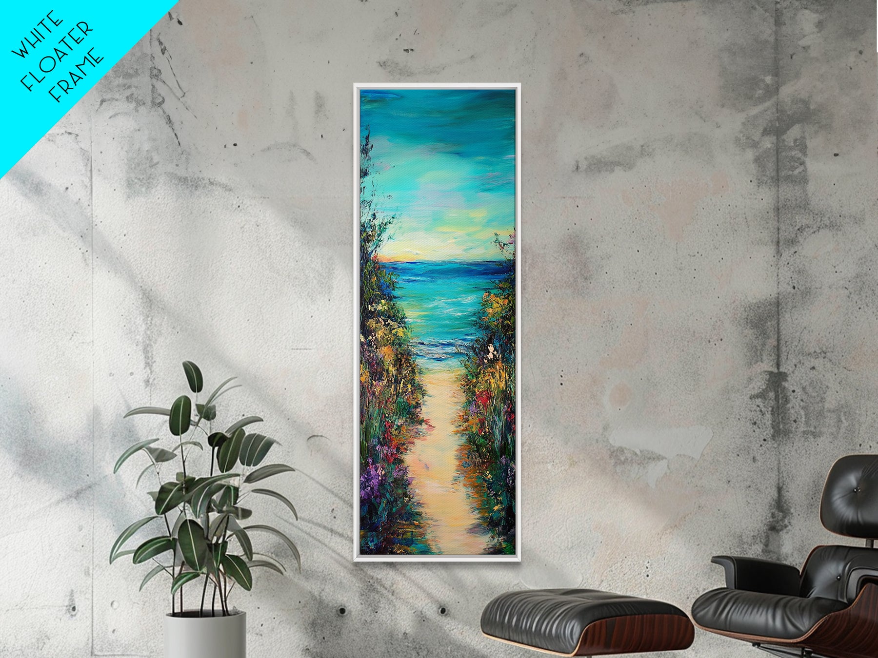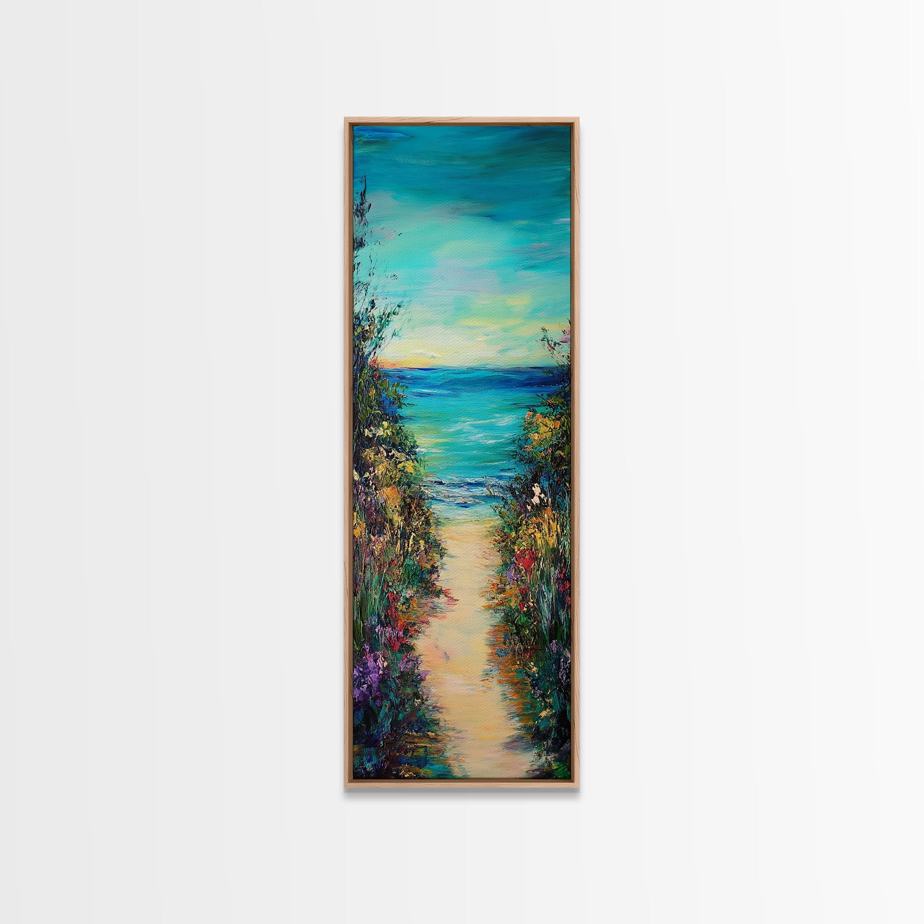 Beach Path, Coastal Landscape Art, Seascape Painting, Coastal Wall Art, Nautical Decor, Extra Wide Art, Framed Canvas Print