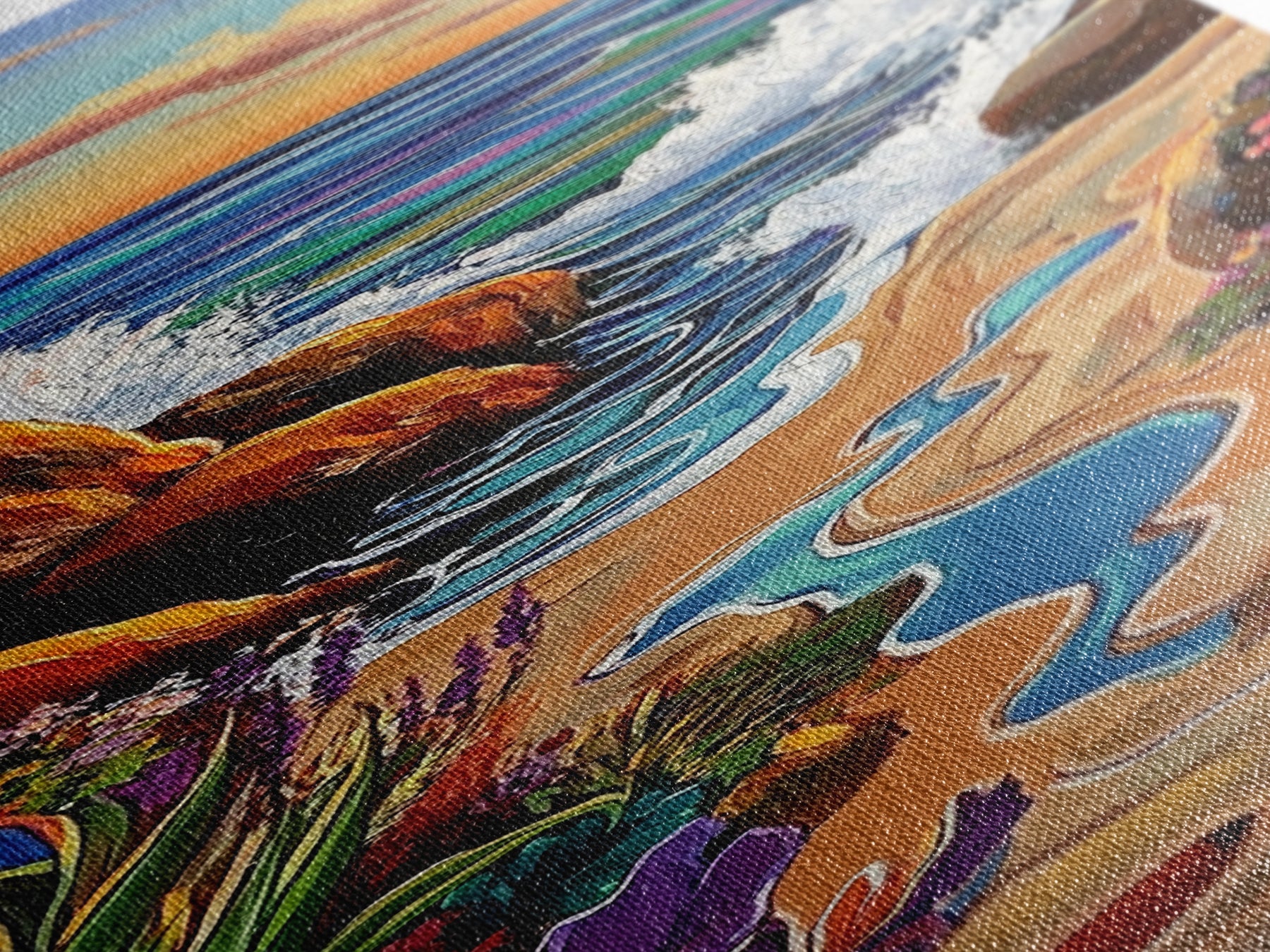 Beach Path, Rocks, Canvas Print, Coastal Wall Art, Nature Inspired Hallway Decor, Vibrant Ocean Scene, Boho Beach Aesthetic