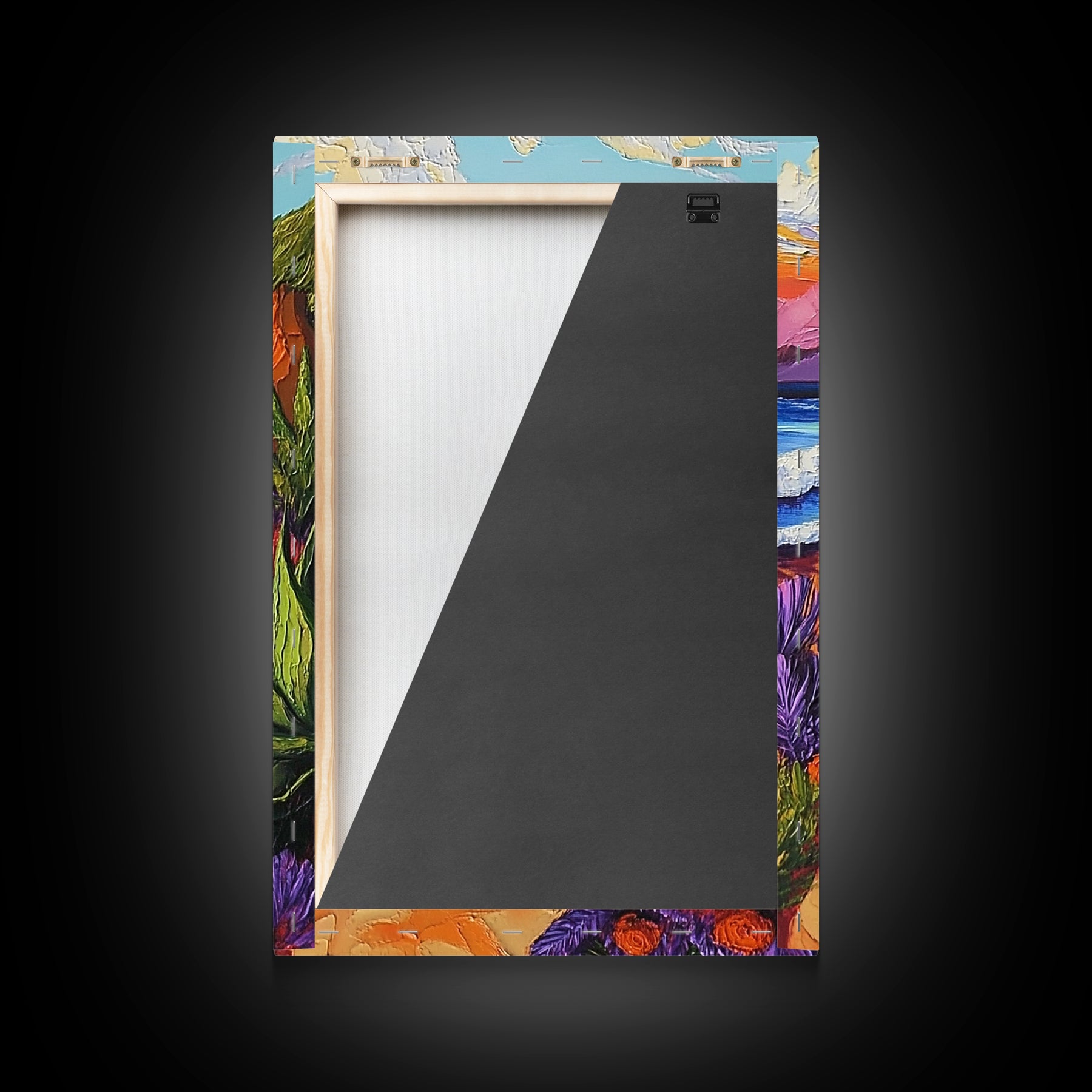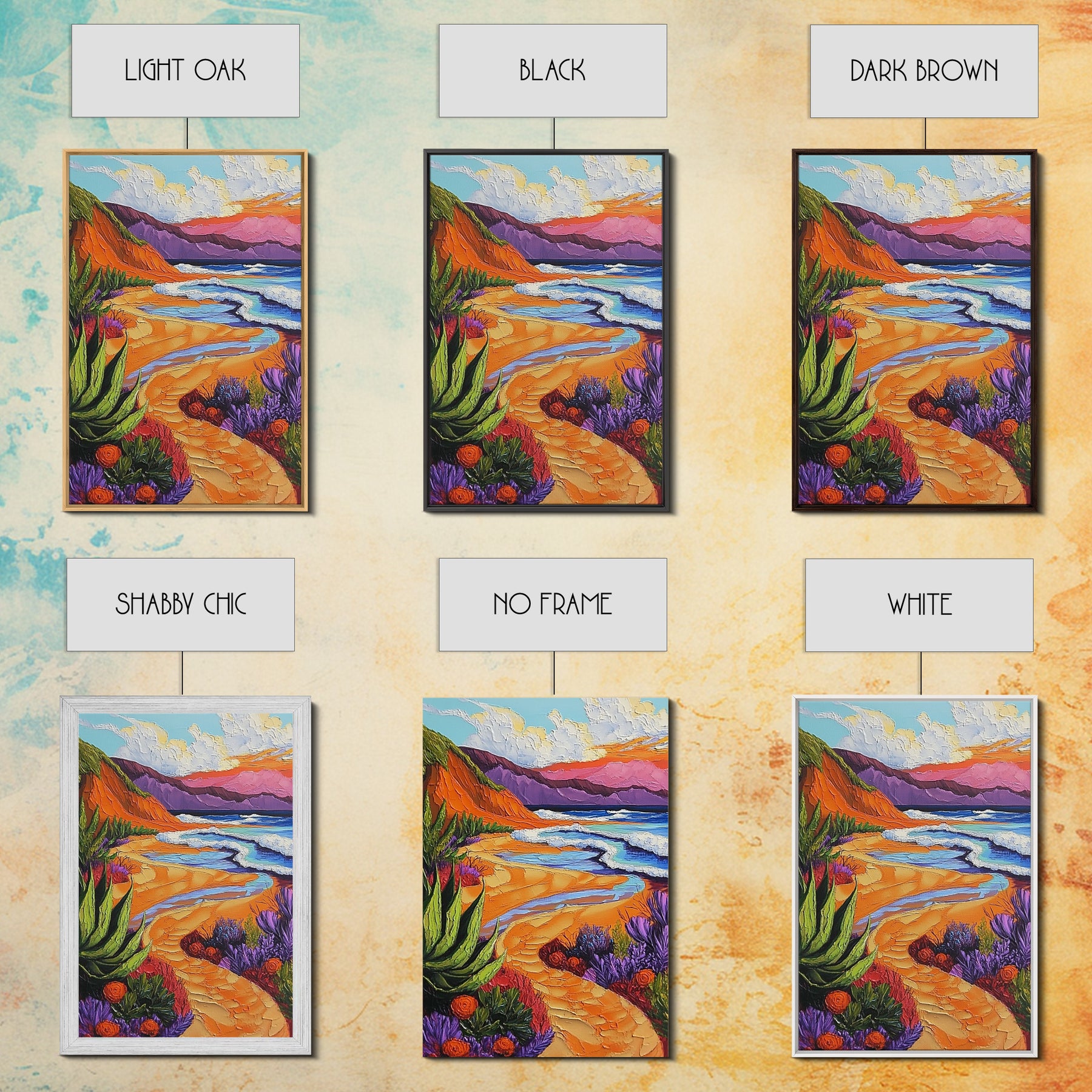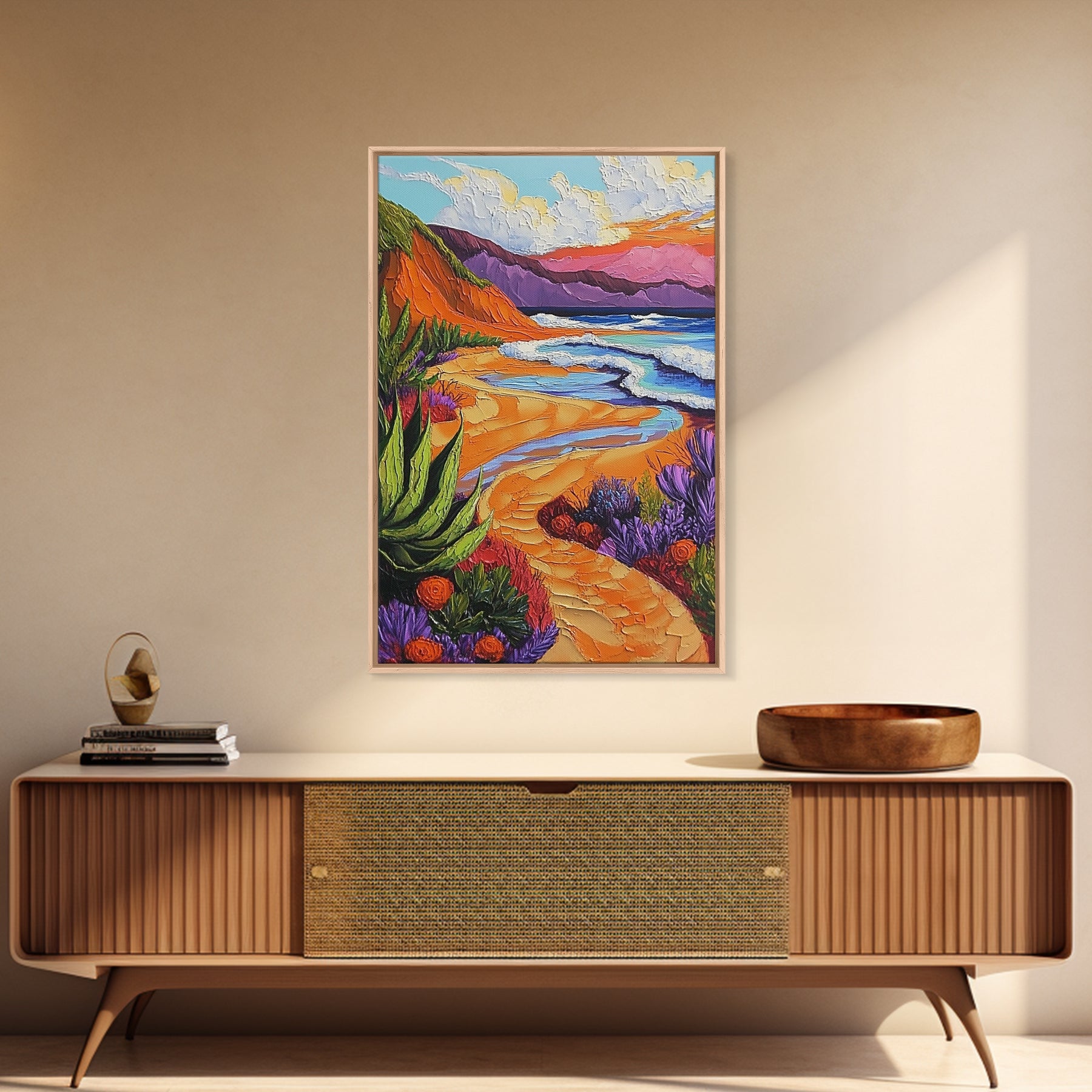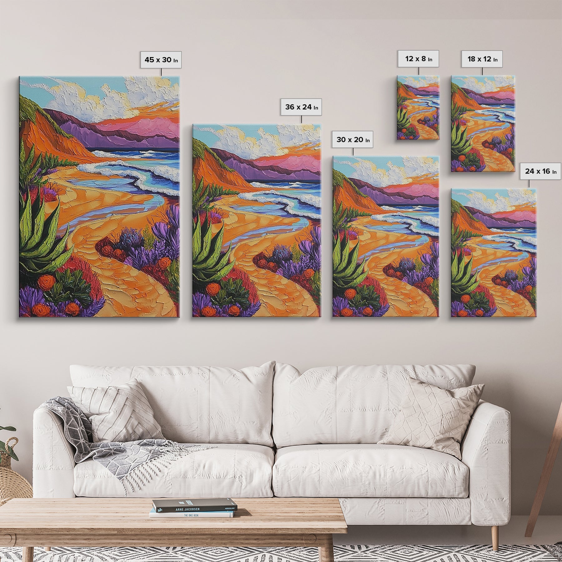 Beach Path, Sunset, Bliss, Canvas Print, tropical beach decor, bold wall art, coastal boho artwork, vibrant summer vibes, Bathroom or Hallway