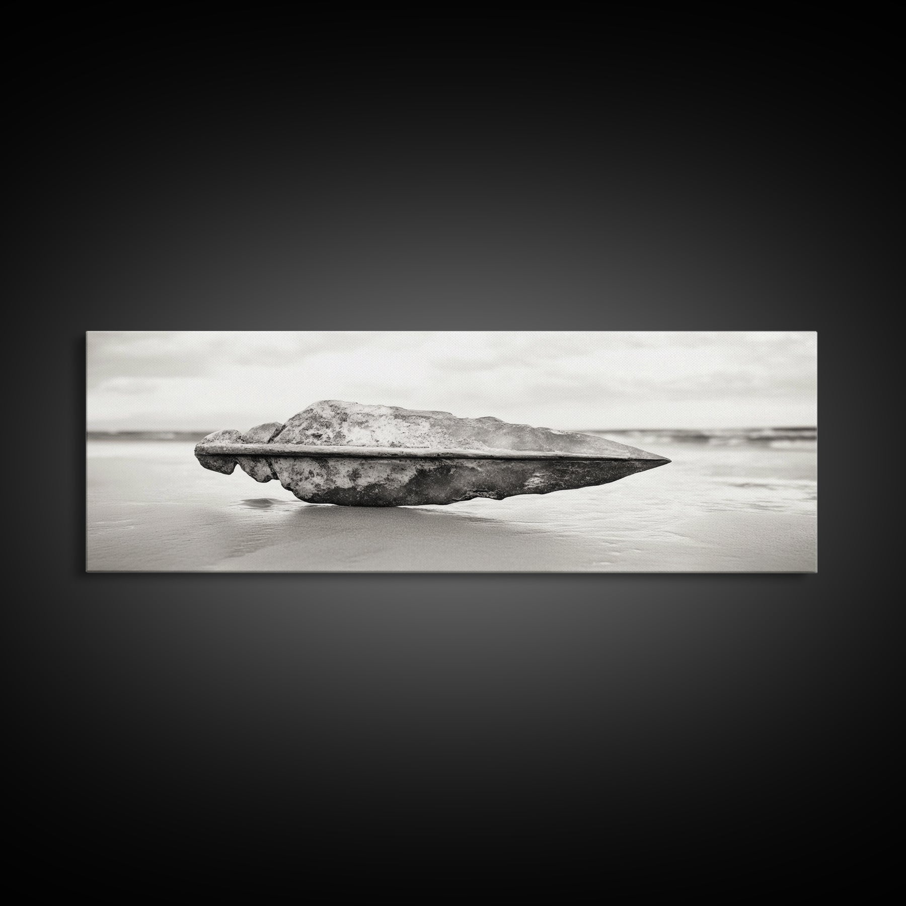 Beach Stone, Ancient Relic, Coastal Detail, Canvas Print, Minimalist art, Bathroom wall decor, Boho style, Neutral home aesthetic