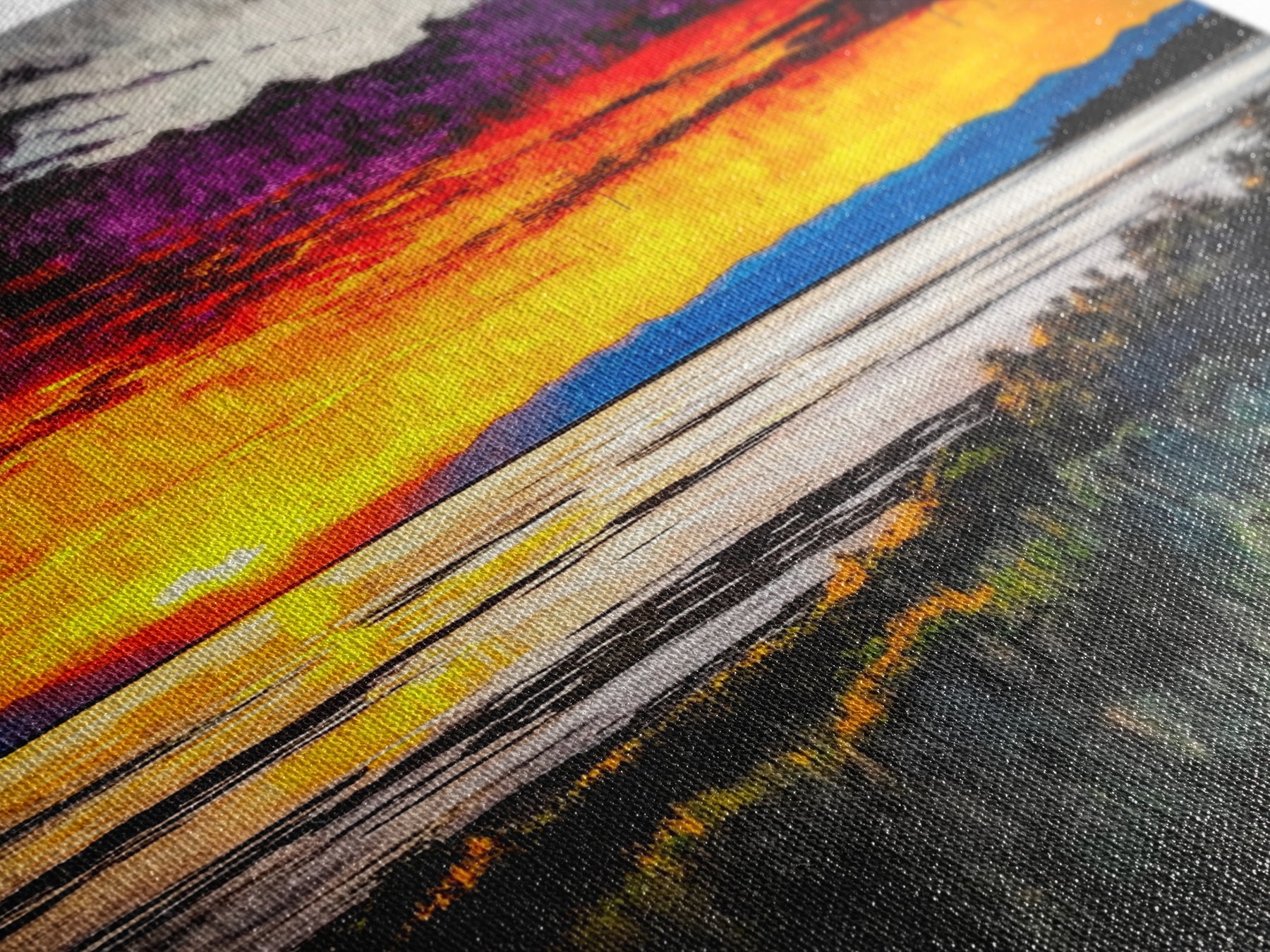 Most of our canvases are made in the USA, with the exception of canvases ordered with the light oak unstained frames, and any large canvases (24x48, 30x60, 16x48 and 20x60) ordered WITH a frame. These are temporarily made in and shipped from Europe, while we try to find a more consistent supplier in the USA.