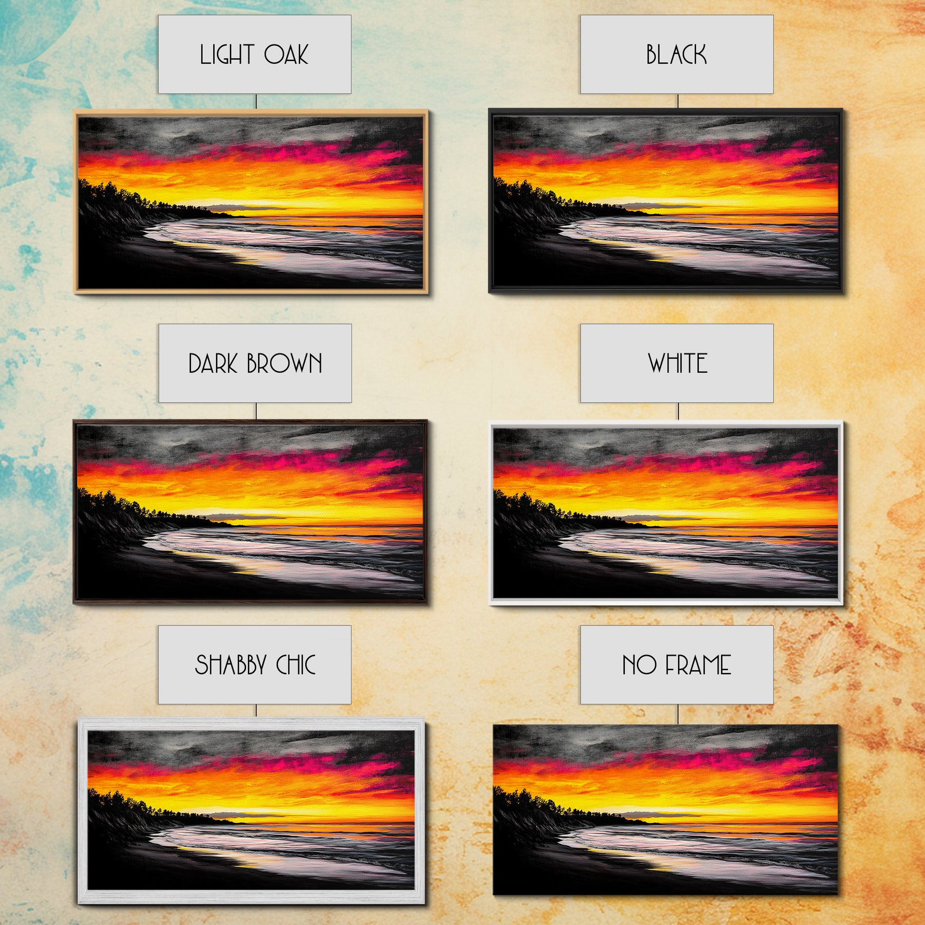 *Optional frames add a total of 1.5 inches to each dimension, for example a 10x20 canvas with a frame will be 11.5 by 21.5 inches total. All framed canvas are 1.5" total depth.