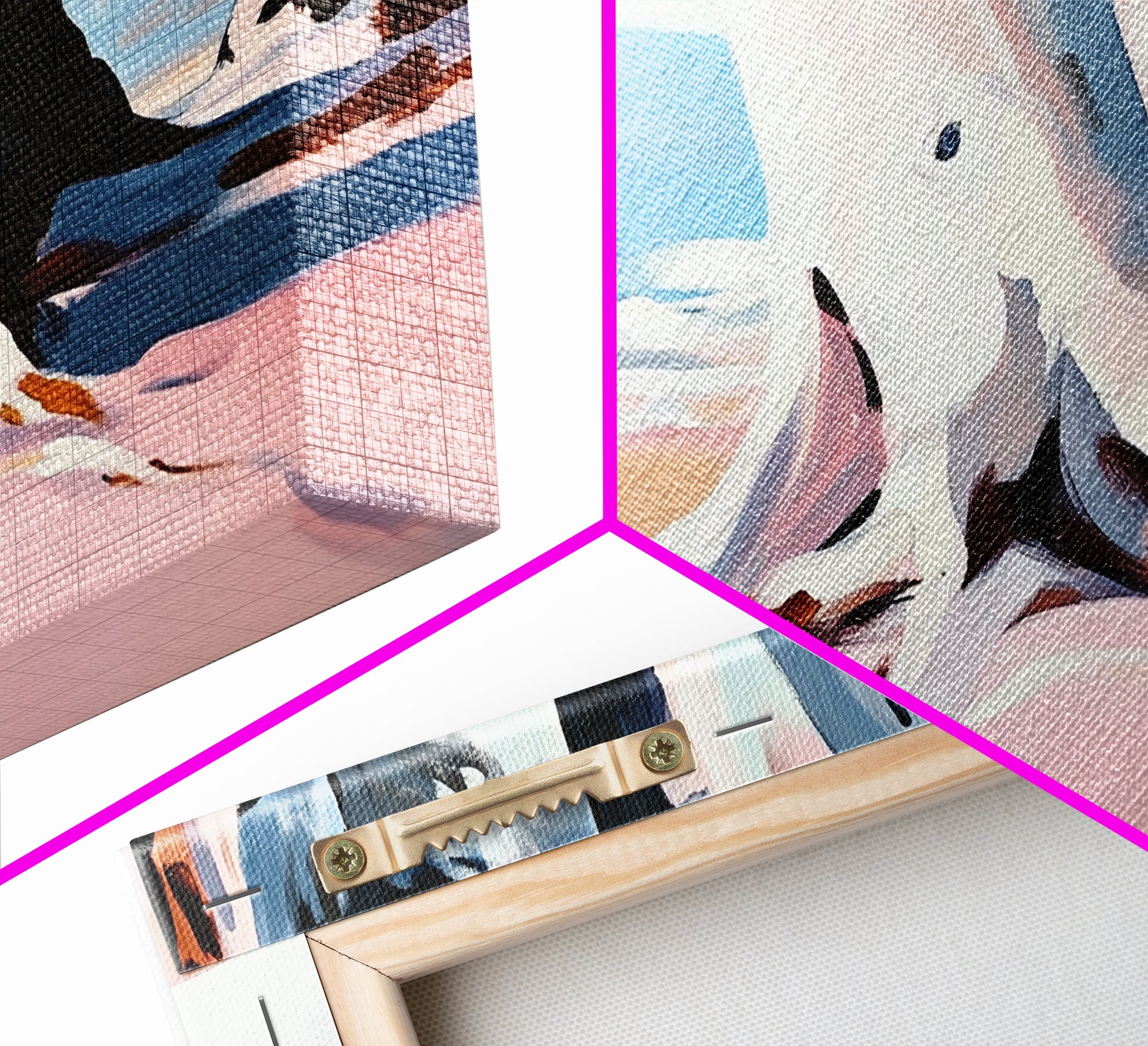 Hello and thank you for taking the time to view our modern high quality giclée artwork! We offer both posters and stretched canvas prints. Our posters are printed on Ultra Matte 60 lb / 230 GSM high quality photo paper, with a thickness of 10 mil. Our canvases are printed on museum grade 350 GSM canvas material with ECO friendly archival grade ink, then hand stretched and stapled over premium, FSC certified and shrink resistant frames. Designed and built to last a lifetime.