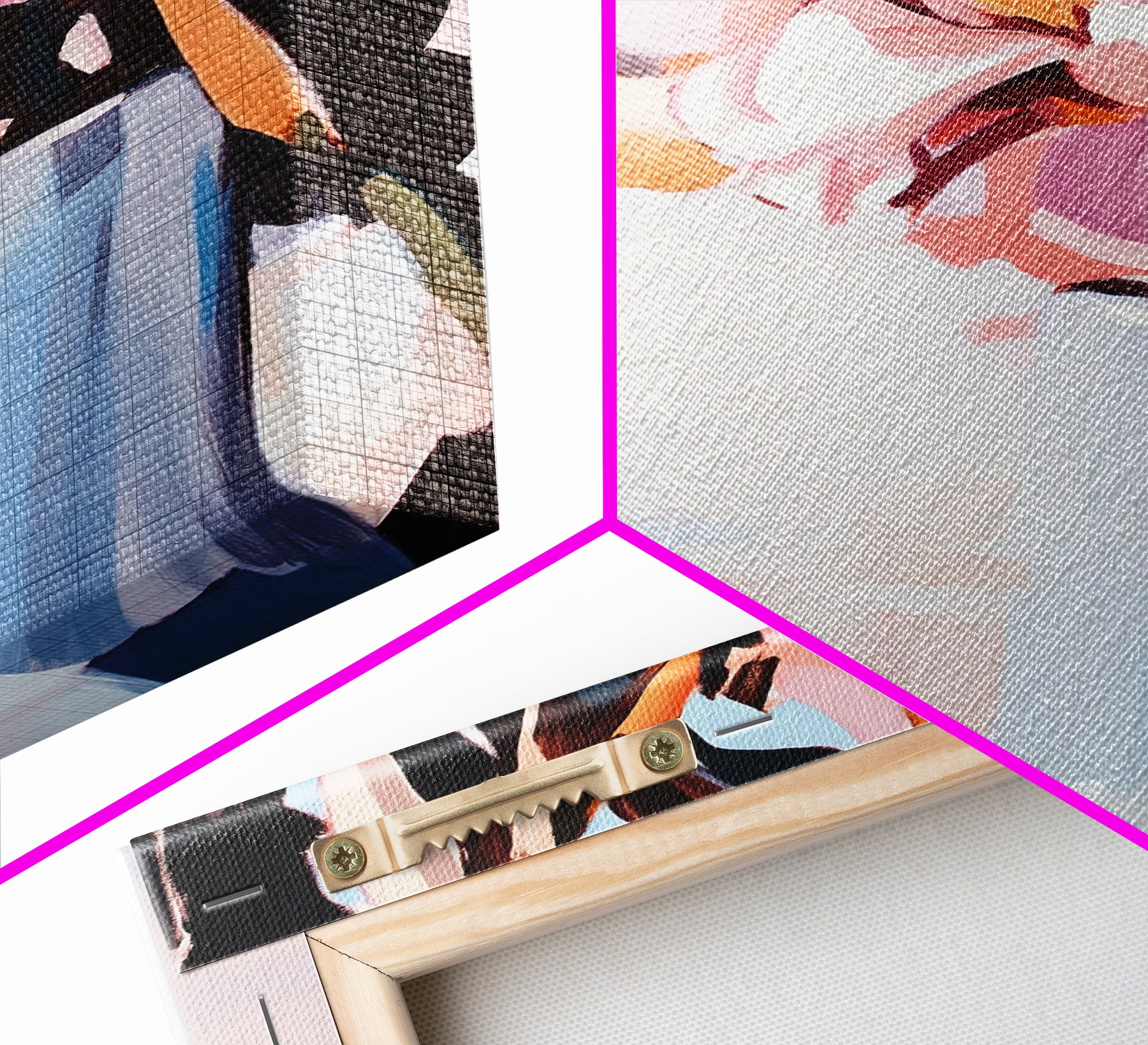 Hello and thank you for taking the time to view our modern high quality giclée artwork! We offer both posters and stretched canvas prints. Our posters are printed on Ultra Matte 60 lb / 230 GSM high quality photo paper, with a thickness of 10 mil. Our canvases are printed on museum grade 350 GSM canvas material with ECO friendly archival grade ink, then hand stretched and stapled over premium, FSC certified and shrink resistant frames. Designed and built to last a lifetime.