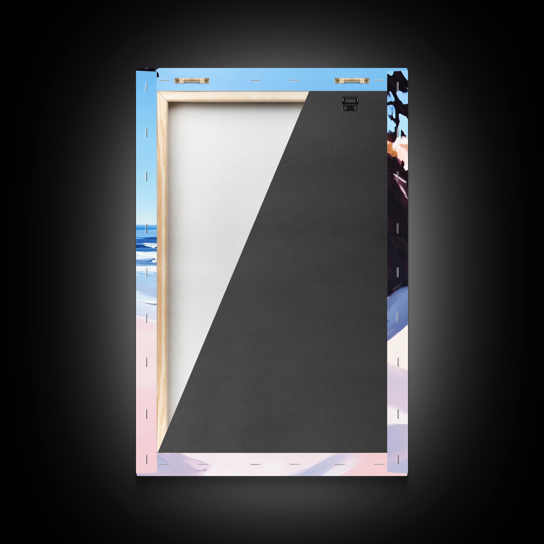 Beach View, Ocean Shore Art, Coastal Landscape Painting, Framed Canvas Print, Living Room Wall Art, Minimalist Seaside Decor